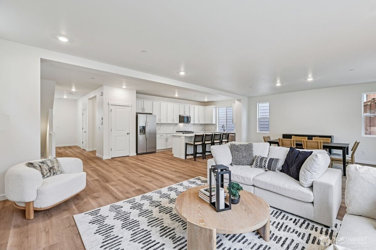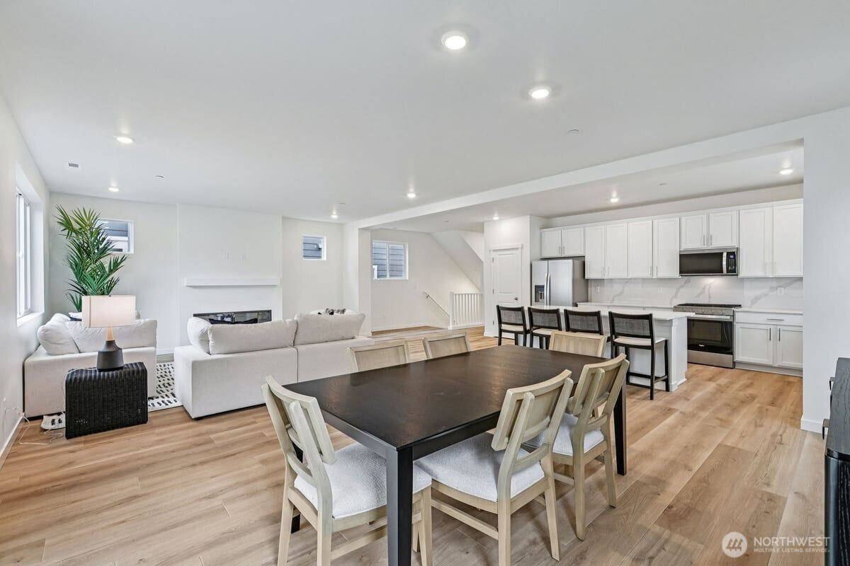 (650)533-3259Experience a rare three-story design that truly lives like a two-story. This thoughtful layout offers an expansive great room with a sleek linear fireplace, durable luxury vinyl plank flooring, and seamless indoor–outdoor flow to the fully fenced yard. A convenient main-floor bedroom with walk-in shower is perfect for guests or multigenerational living. The modern kitchen features gas cooking, 42-inch upper cabinets, stainless steel appliances, quartz countertops, a pantry, and a full-height backsplash. Upstairs, a spacious loft creates an additional living area, while the primary suite provides a relaxing retreat with a walk-in closet and a spa-inspired bath complete with dual vanities and a walk-in shower.