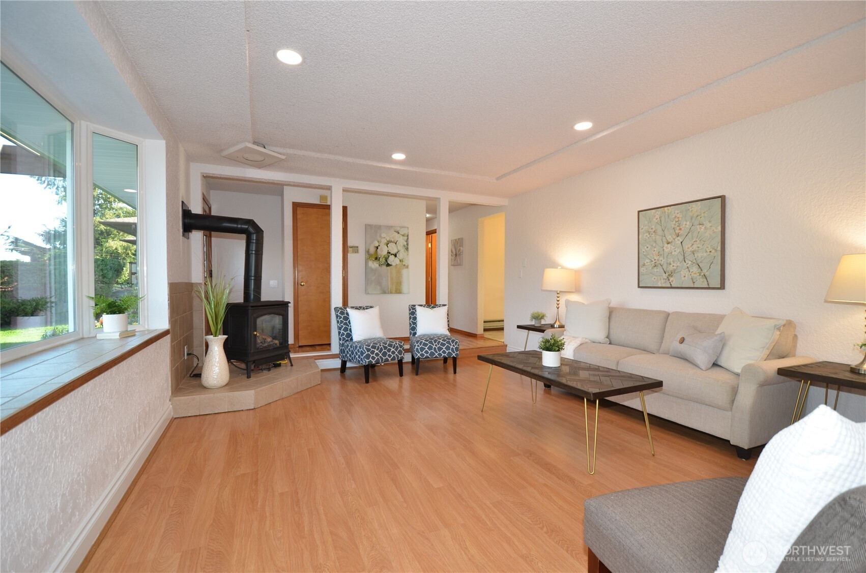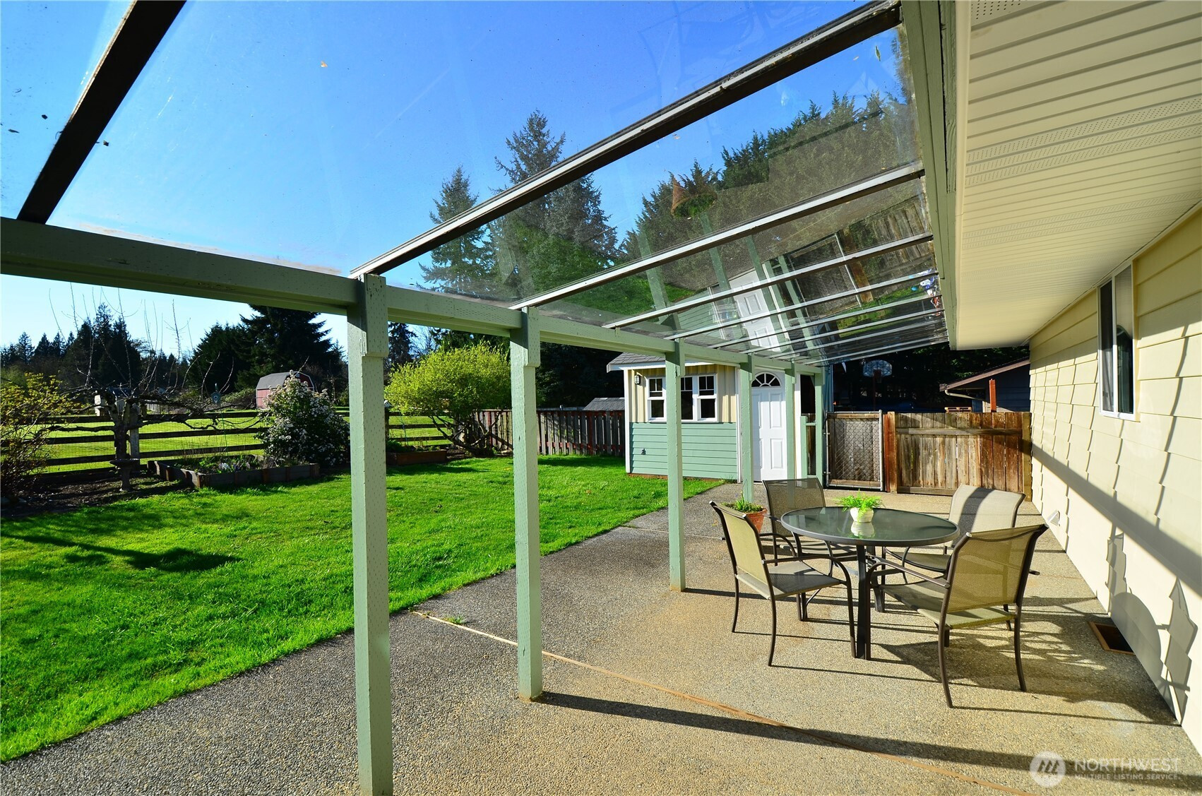 (650)533-3259Beautiful remodeled 3 BR + office 2 bath rambler with Cascade mountain & sunrise views. Large 1/4 acre lot with stunning backyard. You're going to love the private long glass covered back patio, great for entertaining, BBQing year 'round, and enjoying morning coffee while bird watching and relaxing. Delight in the flowers, gardening beds, fruit trees, flat lush grass backyard, front porch trellis & sitting area. The brand new kitchen awaits your daily enjoyment, featuring new cabinets, handles, quartz countertops, sink & faucet, lighting & flooring. This lovely well maintained home has many features including updated bathrooms, brand new carpet, fresh interior & exterior paint, large bay window and comfortable gas stove in living room, updated vinyl double pane windows and slider, cute & functional shed, multiple exterior tool/storage closets, new soffits, 1.5 year old H2O tank, 8 year old 30 year roof, and RV/boat parking on side of house. Great location and easy access to cute downtown Snohomish shops, bakeries, farms, restaurants, walking trails and more.
