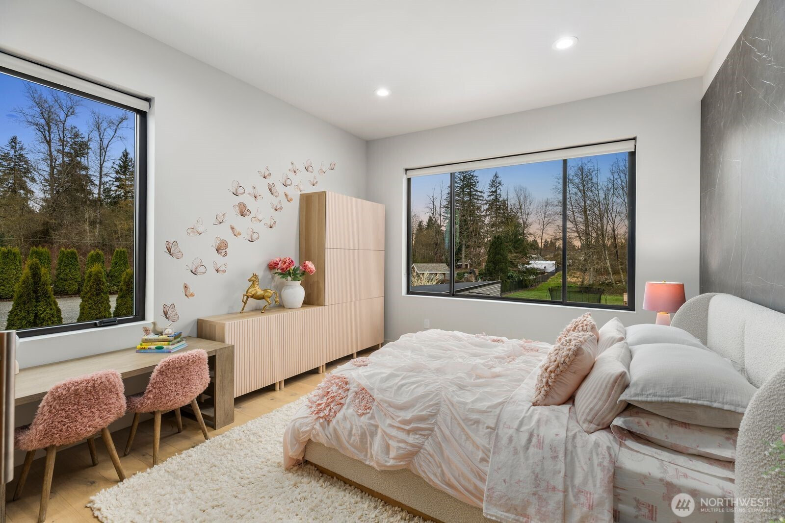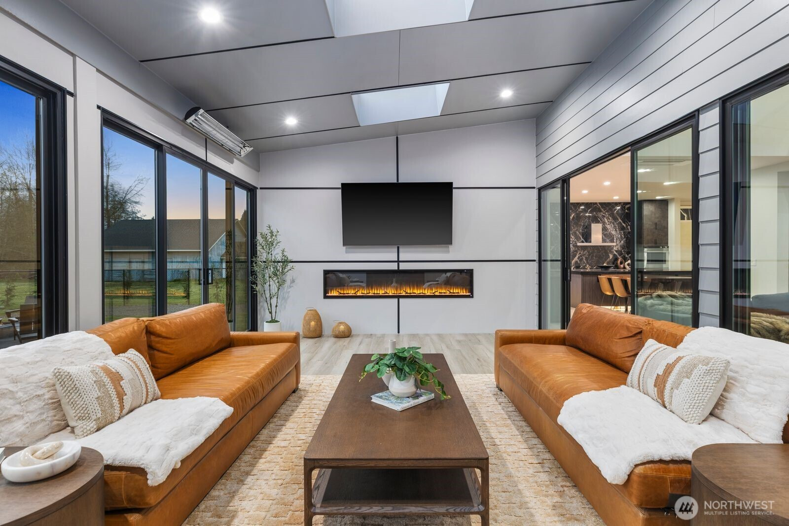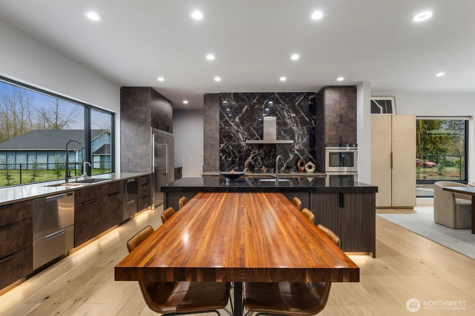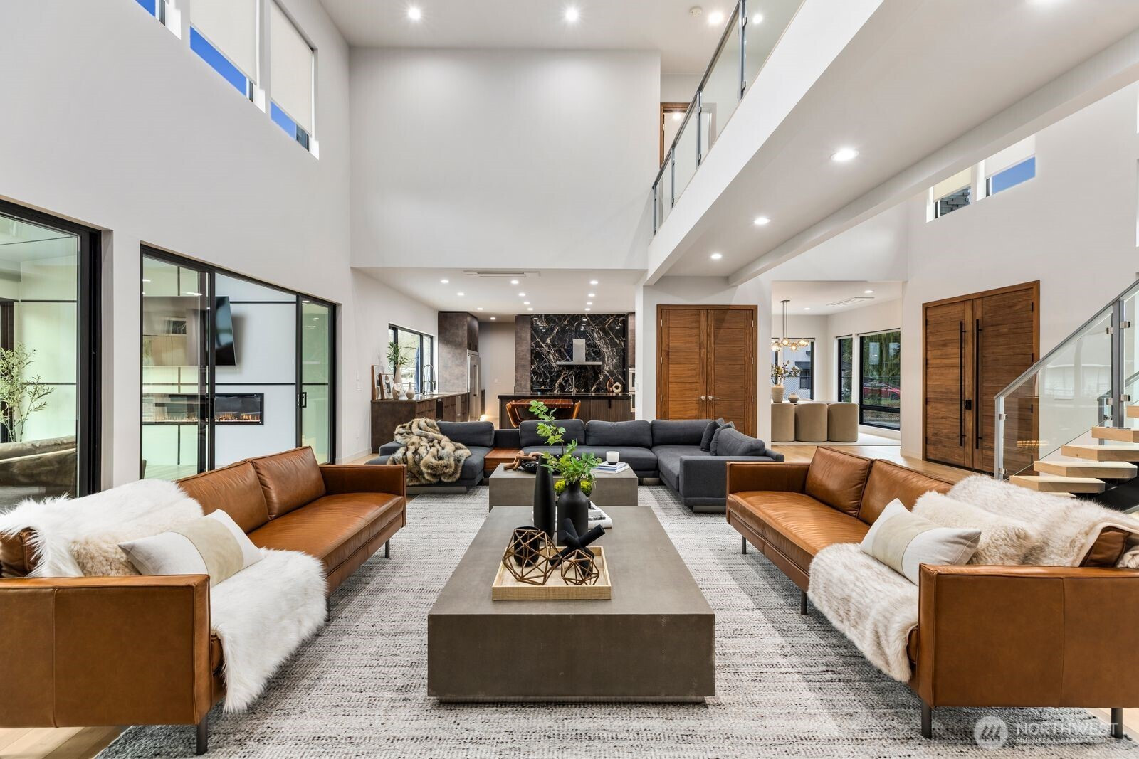 (650)533-3259Introducing a once-in-a-lifetime gated private estate set on 1.87 fully fenced acres offering privacy, craftsmanship, and modern luxury. The main residence spans 5,285 sqft with a detached 800 sqft ADU. This custom-built 4-bedroom, 4.25-bath home features imported Italian tile, European engineered oak hardwood flooring, and high-end finishes throughout. A grand entry welcomes you with 10+ ft ceilings, a floating staircase with glass railings, and large windows bringing in natural light, with an open catwalk overlooking the main living area. The chef’s kitchen features Pental quartz, bespoke cabinetry, a statement island with butcher block accents, and three sinks, with a Thermador induction cooktop, double ovens and dishwashers by Fisher & Paykel, oversized Electrolux fridge/freezer, and a butler’s pantry. The primary suite offers heated tile floors and a spa-caliber 5-piece bath with soaking tub, dual-head shower, dual vanities, fireplace, and floor-to-ceiling tile panels. The detached ADU includes a bedroom, bath, sink with cabinetry, heated tile floors, and a 15-person Swedish sauna. An 18x35 shop and 1,092 sqft 3-car garage add flexibility. Outdoor features include a fire pit, enclosed heated deck with entertainment area, a playground, RV parking, EV charging, wired for generator, a second-floor deck with mountain views, and a creek along the back. A rare opportunity to own a custom estate blending luxury, functionality, and modern Northwest living. Schedule a tour today.