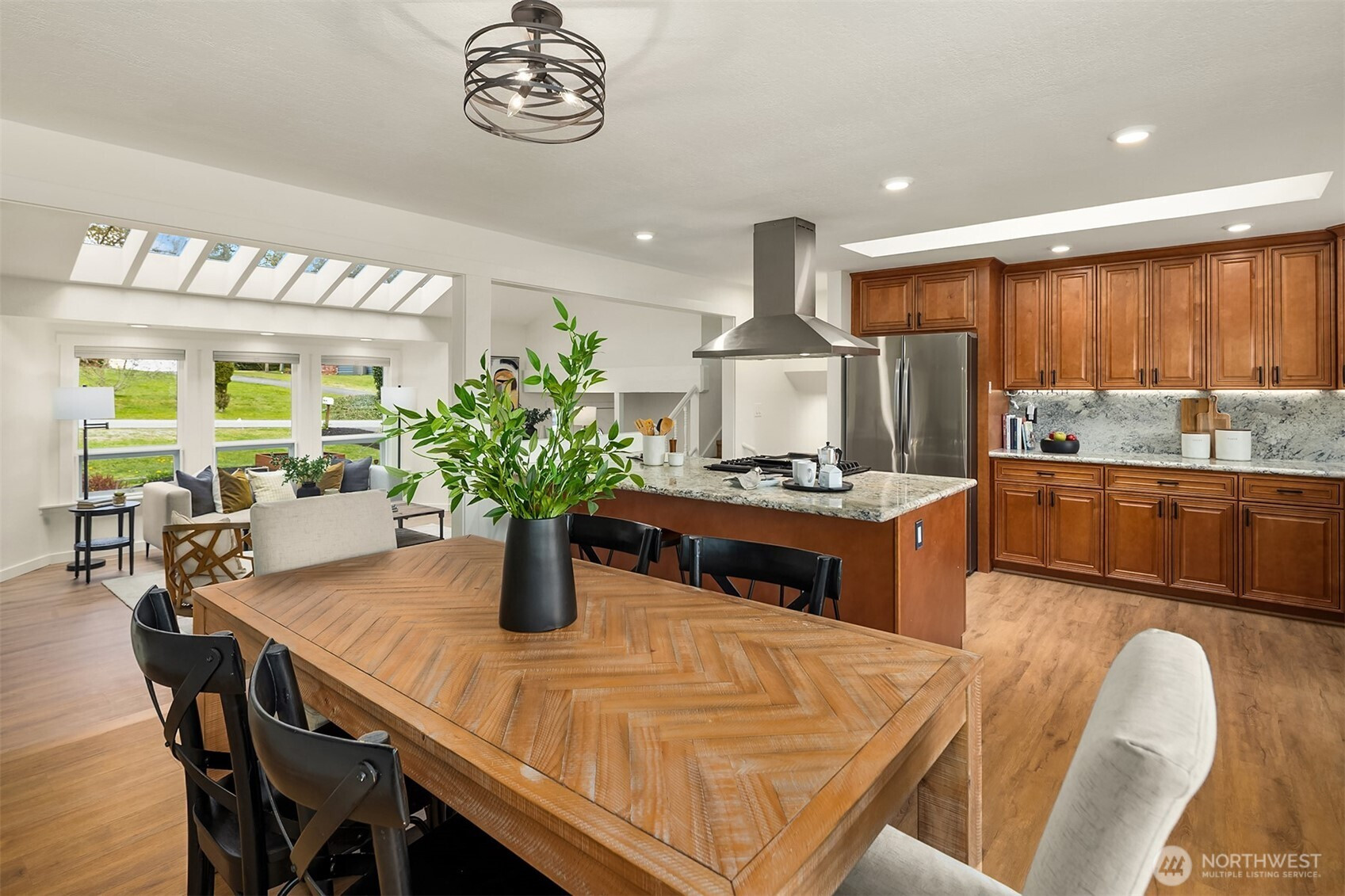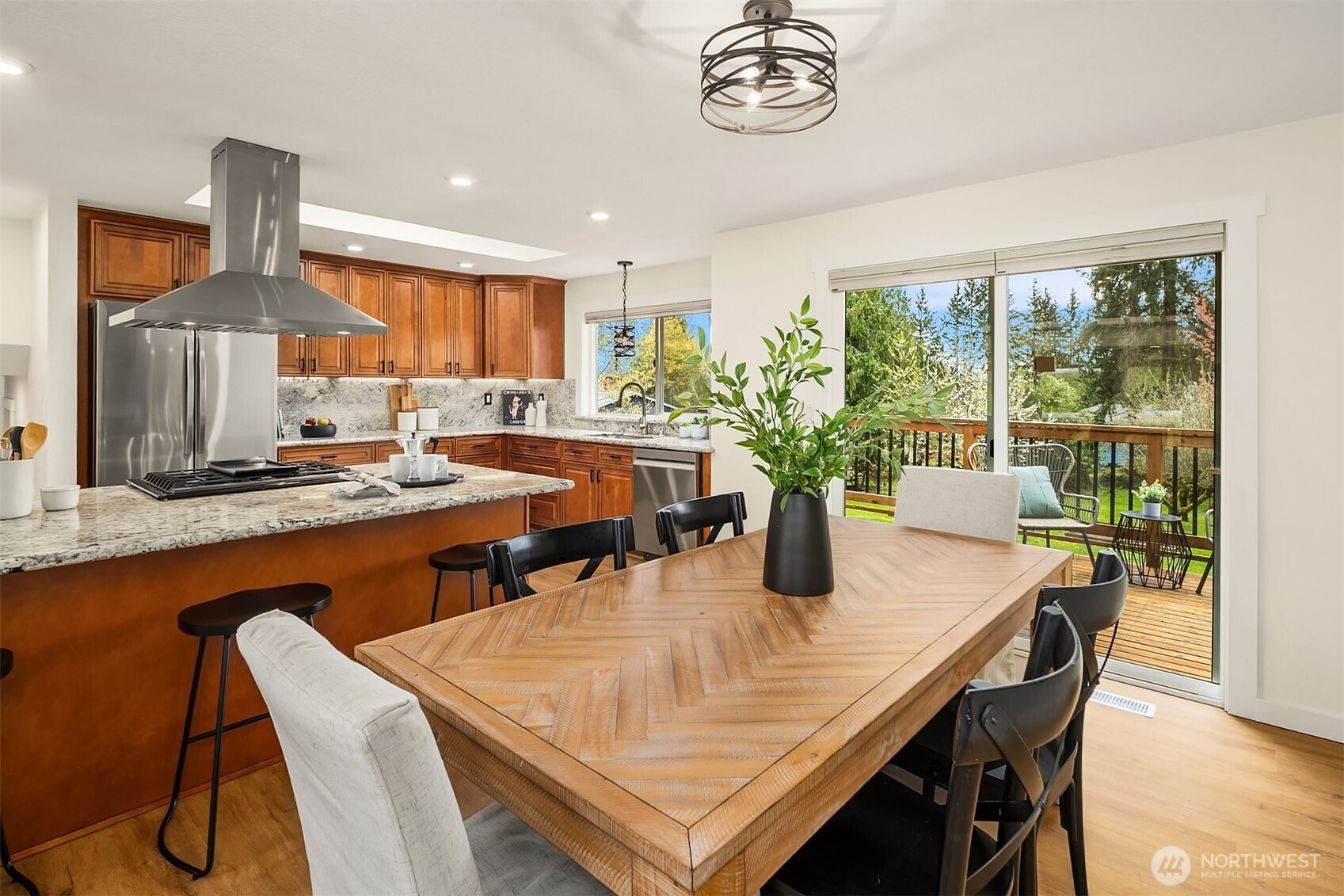 (650)533-3259Nothing to do but move in — welcome to desirable Robinhood. This beautifully updated home checks every box: every major system upgraded, every surface refreshed, all sitting on nearly half an acre with the outdoor space to match.Step inside to soaring vaulted ceilings, skylights flooding the living room with natural light, and brand-new laminate flooring, carpet, and interior paint — all completed in 2026. The open kitchen is built for real cooking and easy entertaining, anchored by a 5-burner gas range, new refrigerator and dishwasher, and stainless steel appliances throughout. A slider off the dining area opens to a massive wraparound deck with a hot tub–reinforced section — the ideal backdrop for summer evenings.The fully fenced backyard feels like a private retreat: fruit trees, raised garden beds, and a charming 2-story barn-style shed ready for storage, hobbies, or play. Flexible main-level space works as an office or bedroom, with three bedrooms upstairs including a primary suite with attached ¾ bath.The big stuff? All done. Roof, gutters, and deck (2022). Central A/C and many new windows (2021). New water heater (2025). New electrical panel (2019). Furnace (2018). New insulation in the crawl space and attic (2026). Attached 2-car garage, ample driveway parking, and room for an RV or boat.Conveniently located between Snohomish and Monroe — the best of both.