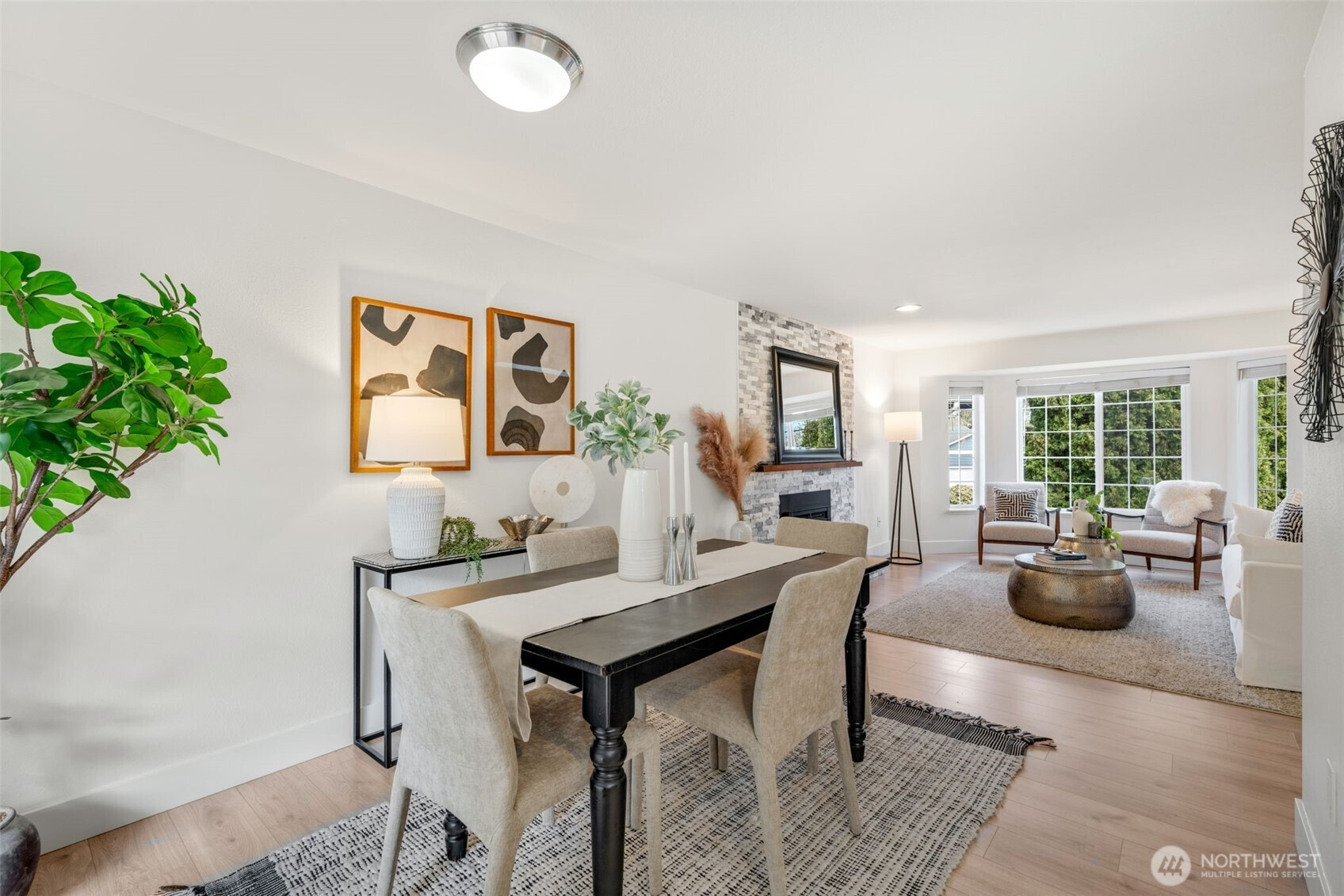 (650)533-3259Beautifully positioned, end of cul-de-sac lot, nestled in a quiet neighborhood w/low maintenance PNW vegetation surrounding the fully fenced, level yard. This picturesque setting includes an array of updates inside and out along with many lifestyle conveniences to include new flooring, fresh paint, A/C, gas fireplace, kitchen pantry, recessed lighting and cabling for TV mount, stainless appliances to include a large capacity double door fridge, double shower heads within remodeled Primary bath, walk-in Primary closet, dedicated laundry room with sink, sliding door off kitchen/dining spaces to fenced backyard with expansive outdoor entertainment patio, firepit and large garden shed. Located close to all major conveniences, coveted schools, public transit options, parks & Silver Lake. Professional pre-inspection and sewer scope completed.