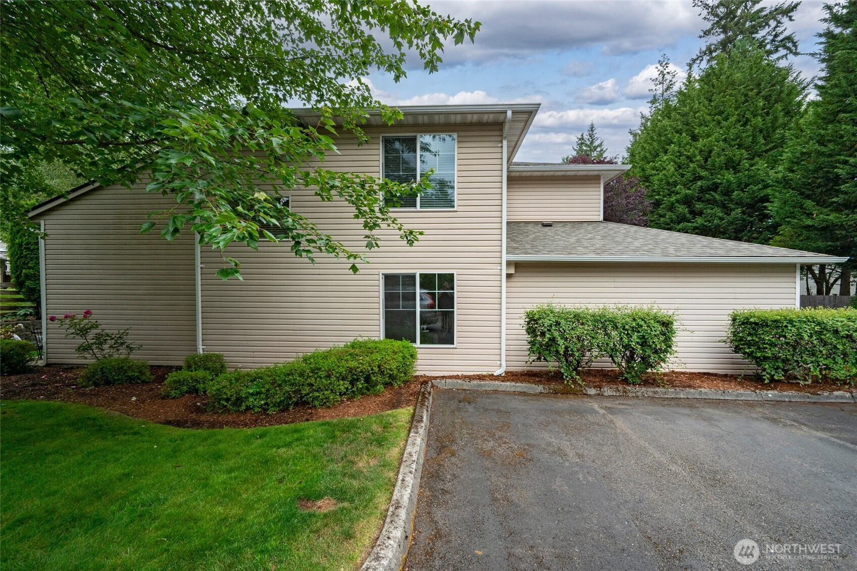 (650)533-3259Life by the Lake! Welcome to this MUST-SEE quiet end-unit only 1 block from Silver Lake! This 3 bedroom, 2.5 bath home offers over 1,500 sq ft of light-filled living with vaulted ceilings, skylights, a cozy gas fireplace, and an open main floor with a bonus flex room. Enjoy new SS appliances, new flooring, fresh paint, an eat-in kitchen bar, dining area, and bonus den/office perfect for work, play, or guest space. Upstairs is a roomy primary w/ensuite, updated guest bath, laundry area w/brand new W/D plus 2 additional bedrooms. Private patio and large RARE 2-car garage with storage & 2 extra spots (4 total!). Close to parks, trails, Mill Creek T.C., transit, and easy I-5 access. MOVE-IN ready for the holidays!