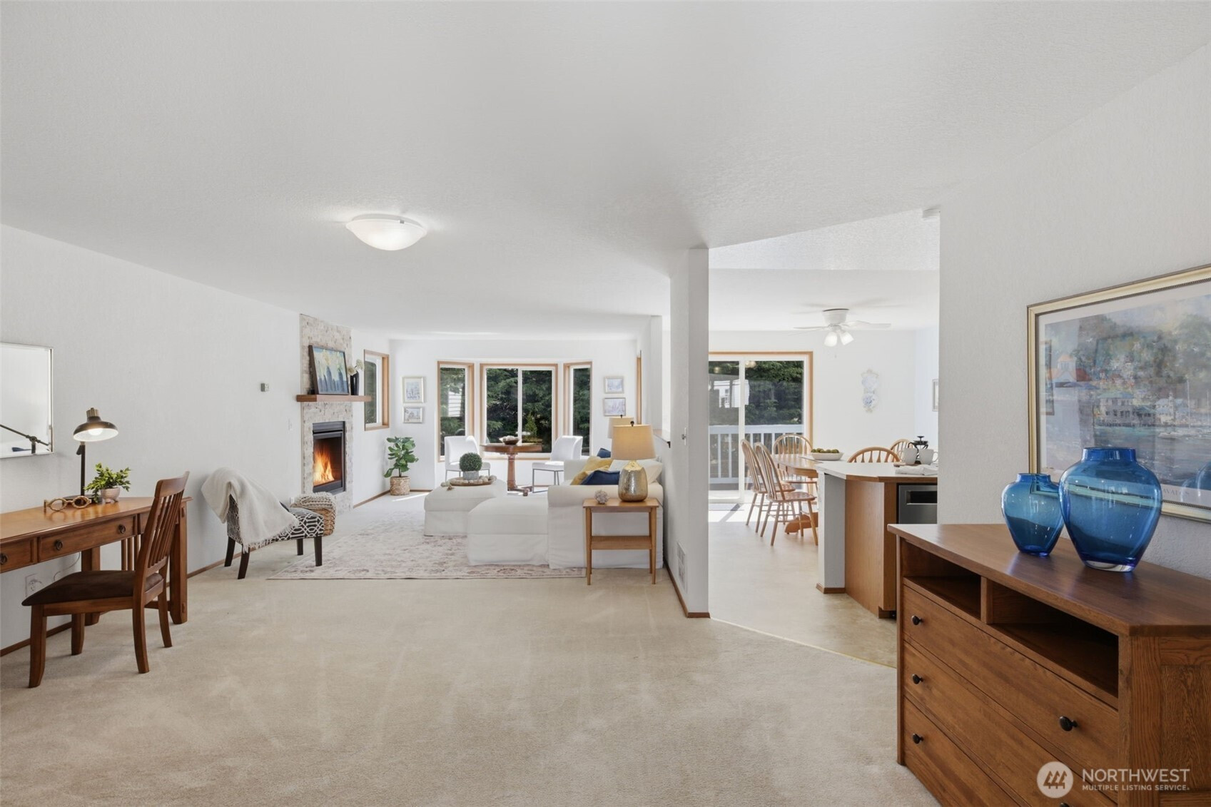 (650)533-3259Rare opportunity to own a spacious 3-bedroom, 2-bath condo in a desirable 55+ community offering comfort, convenience, and low-maintenance living. This 1,520 sq ft home is thoughtfully designed with a generous great room featuring a gas fireplace and a large window framing a peaceful wall of lush greenery, creating a private and serene outlook.The kitchen offers abundant cabinetry and opens to a flexible dining or sitting area, ideal for both everyday living and entertaining. The primary suite includes dual closets and a full bath, while two additional bedrooms provide versatile space for guests, hobbies, or a home office.Enjoy year-round outdoor living on the private deck with gas hookup. Additional features include wood-wrapped double-pane windows, full-size stackable washer and dryer with utility sink, and pull-down attic access for excellent storage. A private two-bay garage adds convenience and secure parking.Community amenities include a clubhouse, hobby shop, RV/boat storage, and beautifully maintained grounds. Conveniently located near shopping, dining, and medical facilities, this home offers easy access to daily essentials. LOW HOA dues and strong reserves contribute to an affordable, worry-free lifestyle in a welcoming community.