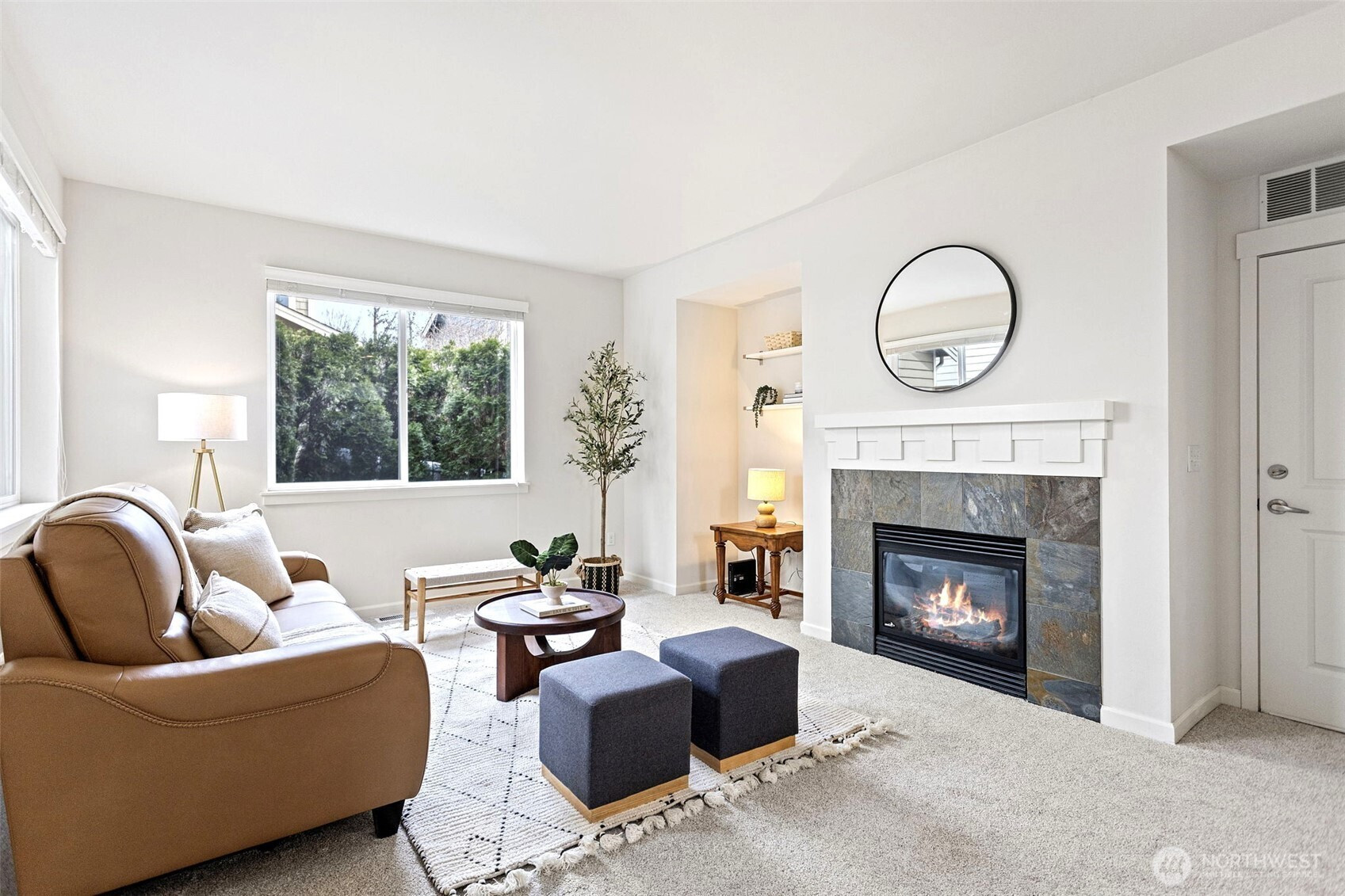 (650)533-3259Welcome to this move-in ready, well-maintained home in the desirable Kimura Gardens community of Bothell, located within the highly sought-after Northshore School District. Brand-new carpet throughout adds a fresh touch, while the home offers a bright and comfortable layout filled with abundant natural light and a thoughtfully designed floor plan for everyday living.The main floor features a spacious living and dining area with a cozy gas fireplace, creating a welcoming space for relaxing or entertaining. The kitchen includes stainless steel appliances, a gas range, and ample cabinet storage, with convenient access to the private patio and yard.Upstairs, the spacious primary suite offers a 5-piece bath and walk-in closet. Two additional bedrooms—each with their own walk-in closet—provide great storage and flexibility. A full bathroom and convenient upstairs laundry area complete the upper level. Washer, dryer, and refrigerator are all less than one year old, adding extra value and convenience.Additional highlights include A/C, a 2-car garage, and a desirable corner lot location. The Kimura Gardens community features parks, walking trails, and play areas, and is conveniently located near Canyon Park shopping, I-405, and vibrant downtown Bothell.