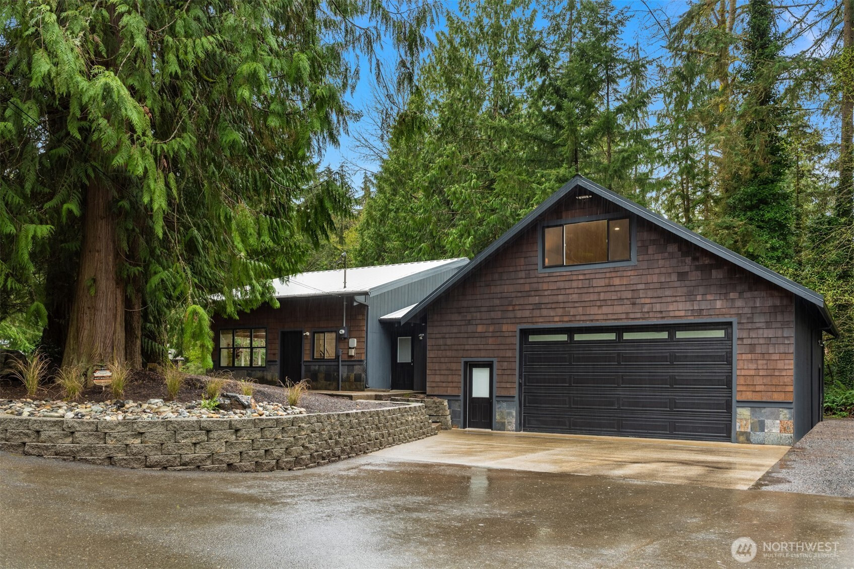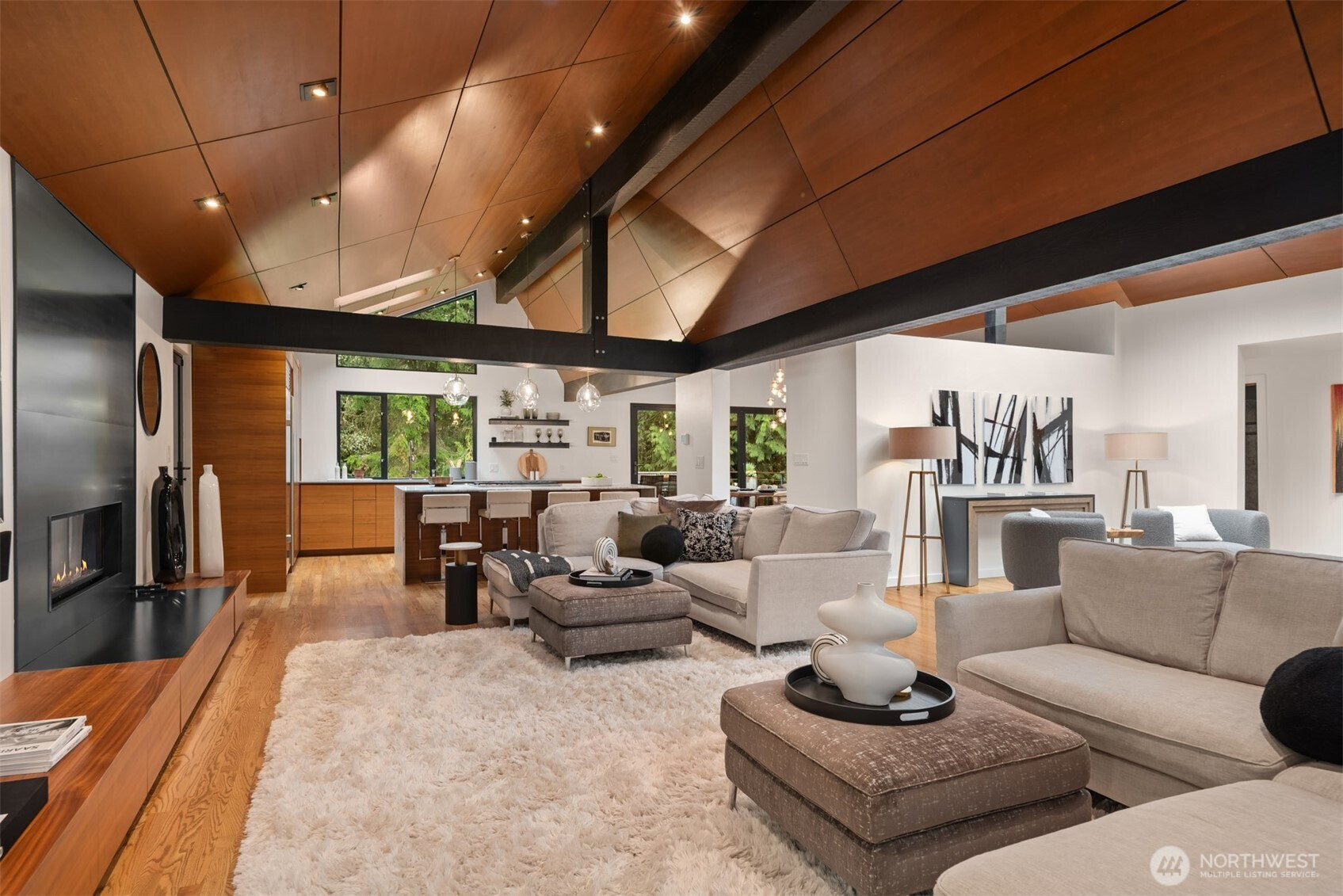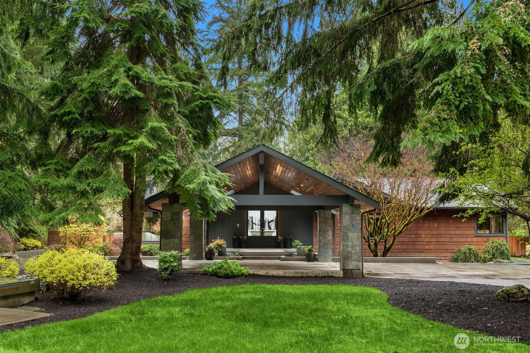 (650)533-3259An extraordinary expression of Pacific Northwest modernism, this reimagined Woodinville estate blends architectural presence with refined livability on a level acre enveloped in evergreens. A sweeping circular drive arrives at a covered porte cochère upon arrival. Inside, nearly 3,600 sqft unfolds with a striking, design forward aesthetic. Vaulted ceilings with walnut stained detail, beams, & rich wood flooring create a warm yet sophisticated atmosphere. The main level offers seamless living with 3 beds, office, & thoughtfully curated spaces that balance openness with intimacy. At the heart of the home, a chef’s kitchen makes a bold statement with walnut cabinetry, a marble waterfall island, & Sub Zero & Wolf appliances. A NanaWall system dissolves the boundary between indoors and out, opening to an expansive deck designed for elevated entertaining & year round enjoyment. The primary suite is a serene sanctuary, featuring soaring wood lined ceilings, a custom dressing room with crafted fir built ins, and spacious en-suite bath filled with natural light. Versatility defines the estate, with a substantial 32 by 40 detached garage complete with workshop and a refined flex space above, plus an additional 24 by 36 finished structure ideal for a luxury gym, office or hobbies. Surrounded by curated landscaping, the grounds offer privacy, RV parking, & a generator, all just moments from Woodinville’s acclaimed wineries, dining, and convenient access to the Eastside tech corridor.