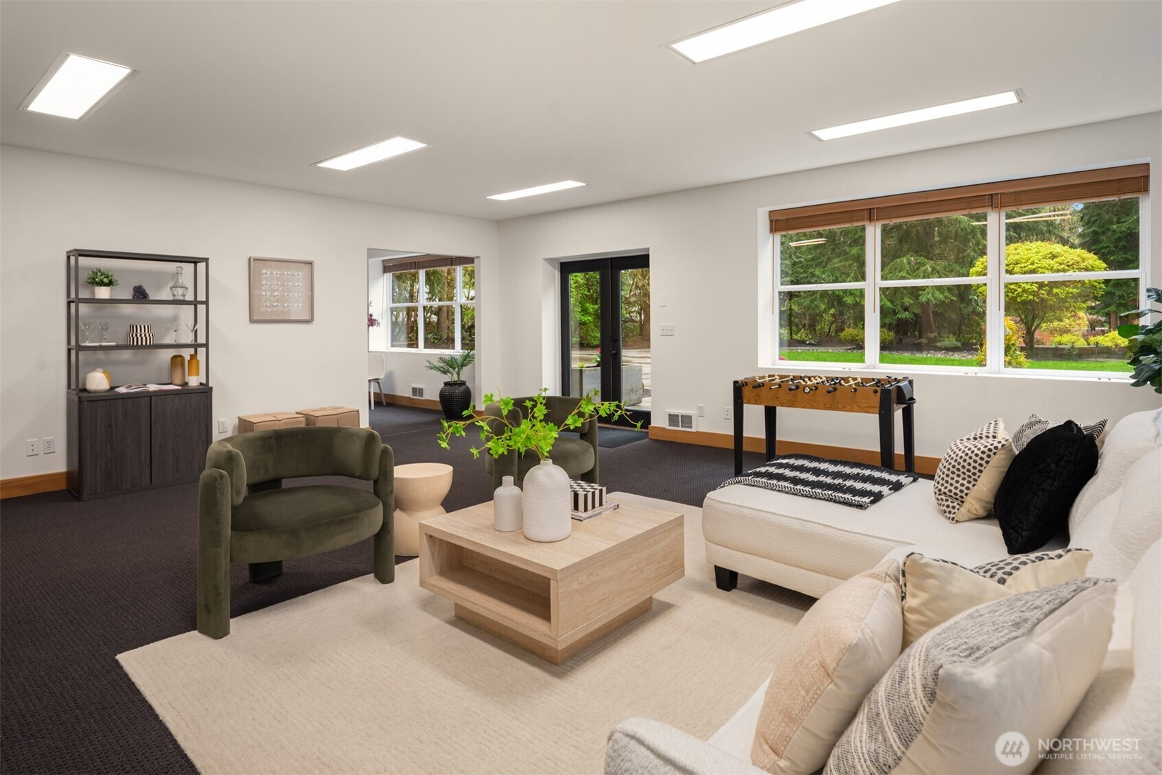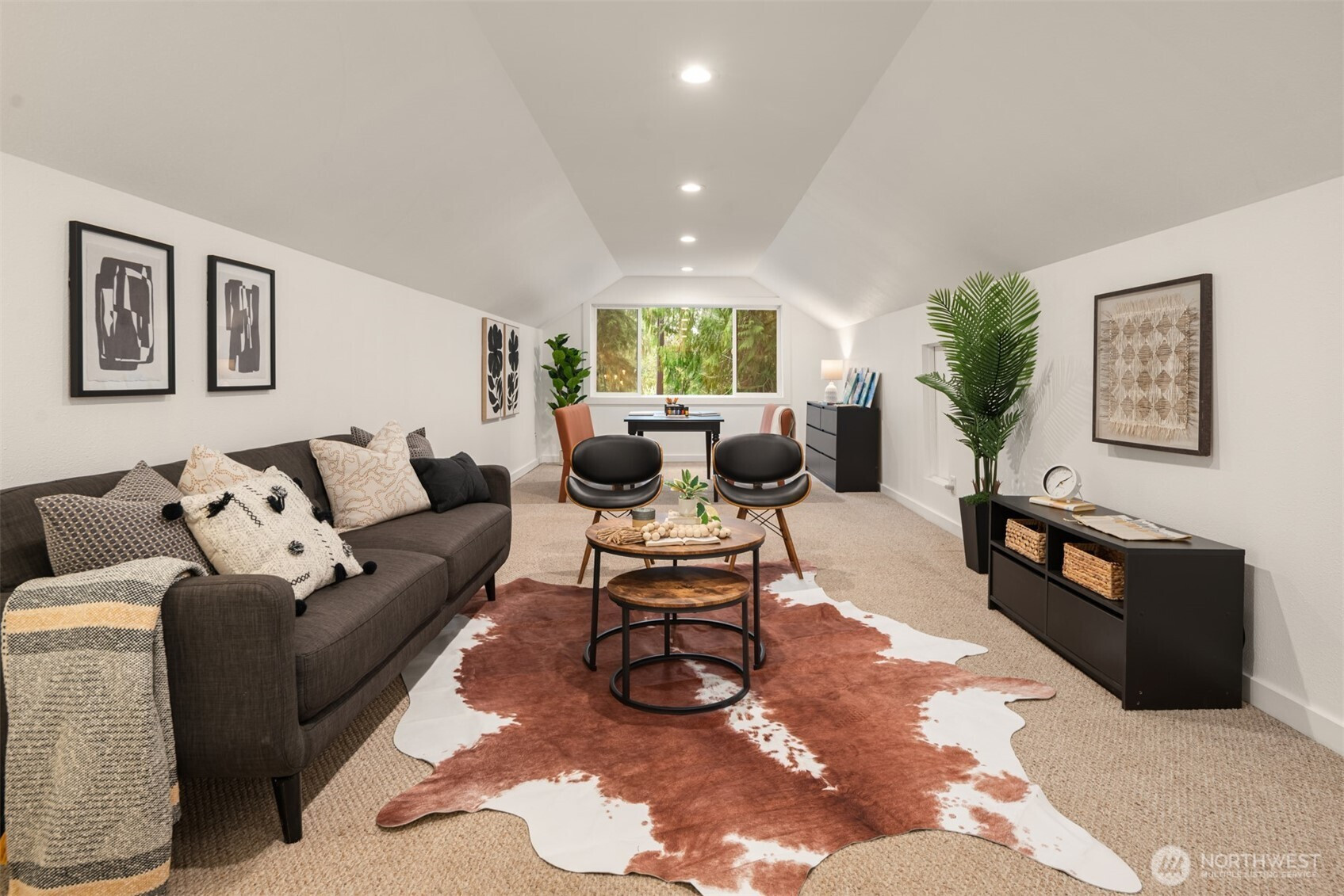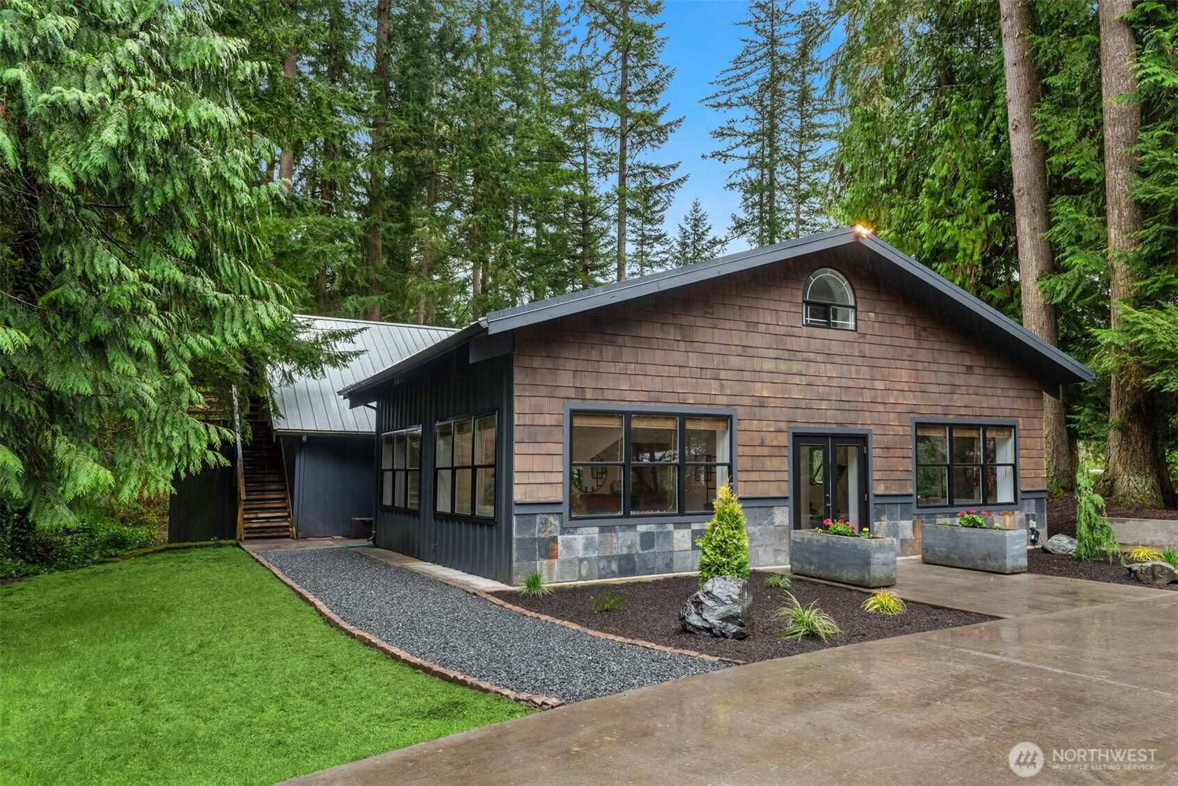 (650)533-3259An extraordinary expression of Pacific Northwest modernism, this reimagined Woodinville estate blends architectural presence with refined livability on a level acre enveloped in evergreens. A sweeping circular drive arrives at a covered porte cochère upon arrival. Inside, nearly 3,600 sqft unfolds with a striking, design forward aesthetic. Vaulted ceilings with walnut stained detail, beams, & rich wood flooring create a warm yet sophisticated atmosphere. The main level offers seamless living with 3 beds, office, & thoughtfully curated spaces that balance openness with intimacy. At the heart of the home, a chef’s kitchen makes a bold statement with walnut cabinetry, a marble waterfall island, & Sub Zero & Wolf appliances. A NanaWall system dissolves the boundary between indoors and out, opening to an expansive deck designed for elevated entertaining & year round enjoyment. The primary suite is a serene sanctuary, featuring soaring wood lined ceilings, a custom dressing room with crafted fir built ins, and spacious en-suite bath filled with natural light. Versatility defines the estate, with a substantial 32 by 40 detached garage complete with workshop and a refined flex space above, plus an additional 24 by 36 finished structure ideal for a luxury gym, office or hobbies. Surrounded by curated landscaping, the grounds offer privacy, RV parking, & a generator, all just moments from Woodinville’s acclaimed wineries, dining, and convenient access to the Eastside tech corridor.