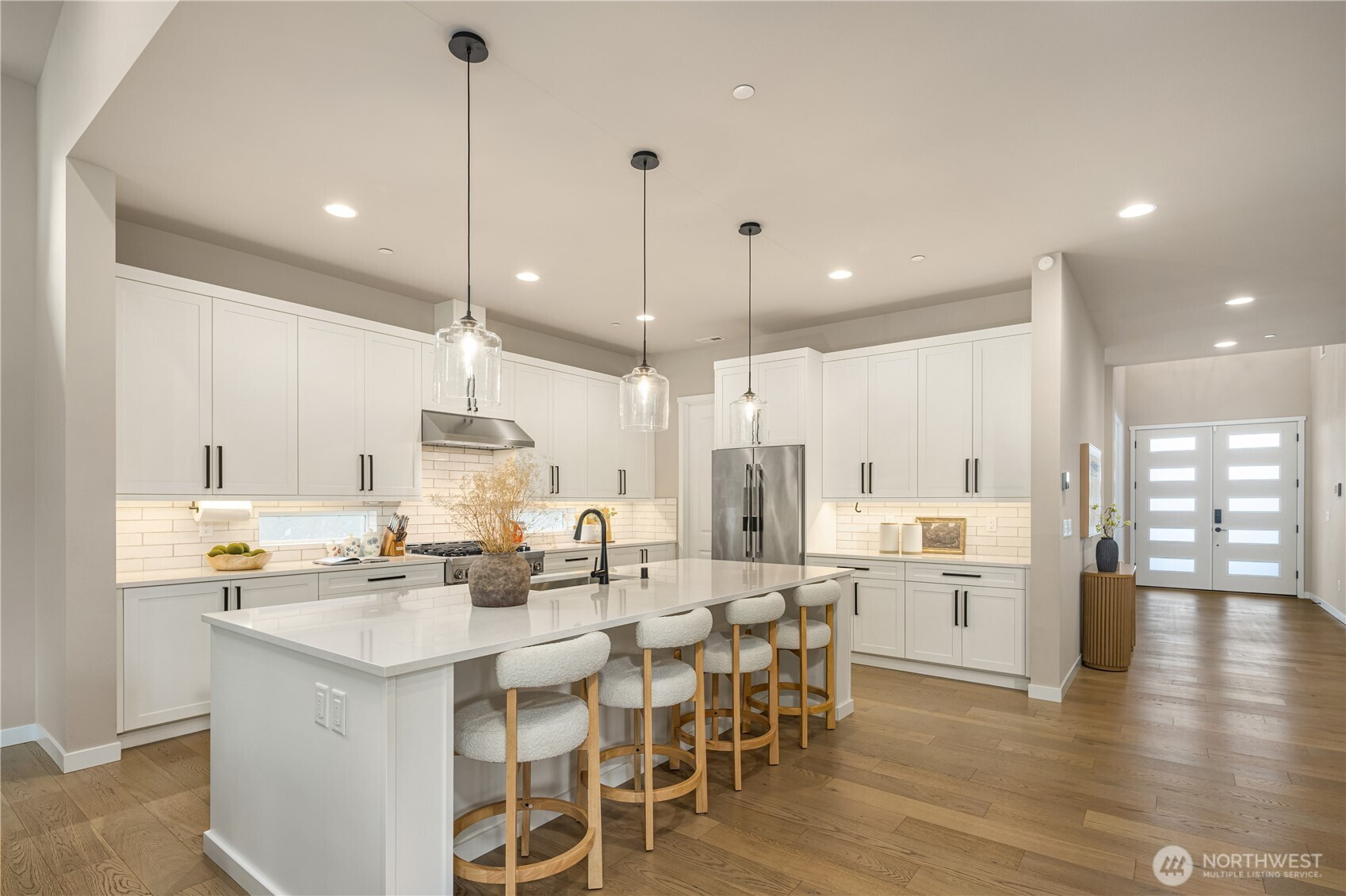 (650)533-3259Welcome to this beautifully maintained 2024-built resale, ideally situated on the best corner lot in sought-after Canyon Park with no HOA—offering a peaceful, quiet setting despite its prime, convenient location. This rare 5-bedroom, 3.25-bath home features an exceptional layout, including a main-level bedroom with its own en-suite bath and direct patio access, creating a private entrance—perfect for guests, multi-generational living, or added flexibility. Enjoy a light-filled interior with high ceilings and a thoughtfully designed layout, featuring a spacious kitchen with a huge walk-in pantry, flowing seamlessly to a covered patio with a two-sided fireplace and an additional built-in storage beneath the deck, along with a spacious, level, fully fenced backyard—ideal for entertaining or everyday living. The T-shaped driveway and 3-car garage provide ample parking and flexibility, complete with Tesla and Rivian EV chargers. Set on the largest lot in the community and pre-inspected for your peace of mind, this home offers the perfect balance of comfort, functionality, and everyday convenience—dining, shopping, and major commuter routes—while still feeling tucked away and private, and within walking distance of top-rated Canyon Park Junior High in the Northshore School District. Homes like this rarely come available where space, layout, and location align so seamlessly. Come experience it in person, you won’t want to miss this one.
