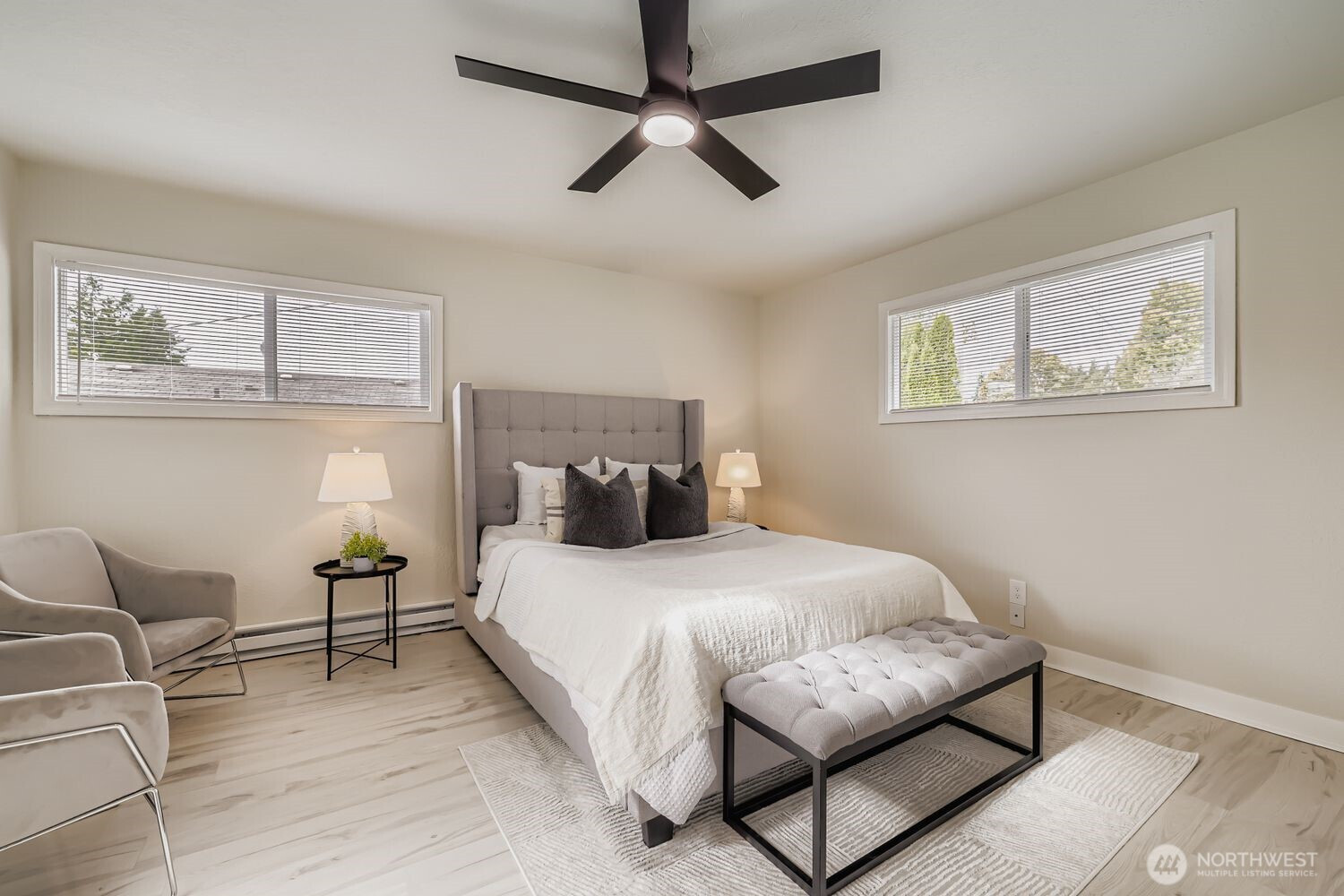 (650)533-3259Step into this beautifully renovated rambler nestled in a quiet, charming North Everett neighborhood. This home perfectly blends timeless character with modern design. Bright, open interiors showcase new flooring, stylish finishes, and abundant natural light throughout. The designer kitchen impresses with quartz counters, stainless steel appliances, and a custom tile backsplash, flowing seamlessly into a vaulted great room ideal for entertaining. The spacious primary suite features a refreshed bath, and the fully fenced yard with a private deck offers the perfect outdoor retreat within walking distance of multiple parks, restaurants, shopping, and schools. Easy access to Broadway, I-5 and other commuter routes.