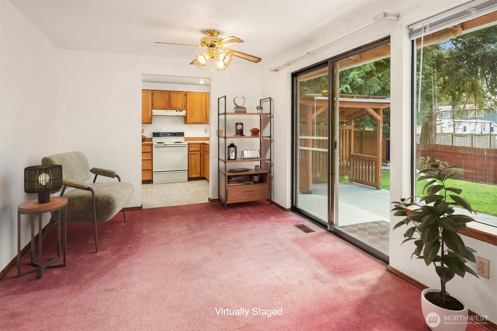 (650)533-3259Experience effortless living in this single-level home, designed with comfort and flexibility in mind. Whether you’re a first-time homebuyer, savvy investor, or searching for the perfect place to downsize, this home checks the boxes! The open-concept floor plan provides seamless flow from the kitchen and dining area with custom built-ins to a welcoming living room anchored by a cozy wood-burning fireplace—perfect for relaxing evenings. Step outside through a convenient slider to a patio with a fenced backyard. An ideal spot for morning coffee or weekend entertaining. Retreat to your spacious primary suite, complete with double closets, a dual-sink vanity, and a full bath for your own tranquil escape. Two additional bedrooms and a full bath offer just the right amount of space. An attached two-car garage provides plenty of storage and convenience. Nestled in a sought-after neighborhood, you’ll be just moments from top shopping like Alderwood Mall, Whole Foods, and Costco. Commuters will appreciate nearby transit options including Light Rail and easy access to major highways. With just a few personal touches, this home will truly shine. This home combines comfort, convenience, and an unbeatable location—don’t miss your chance!