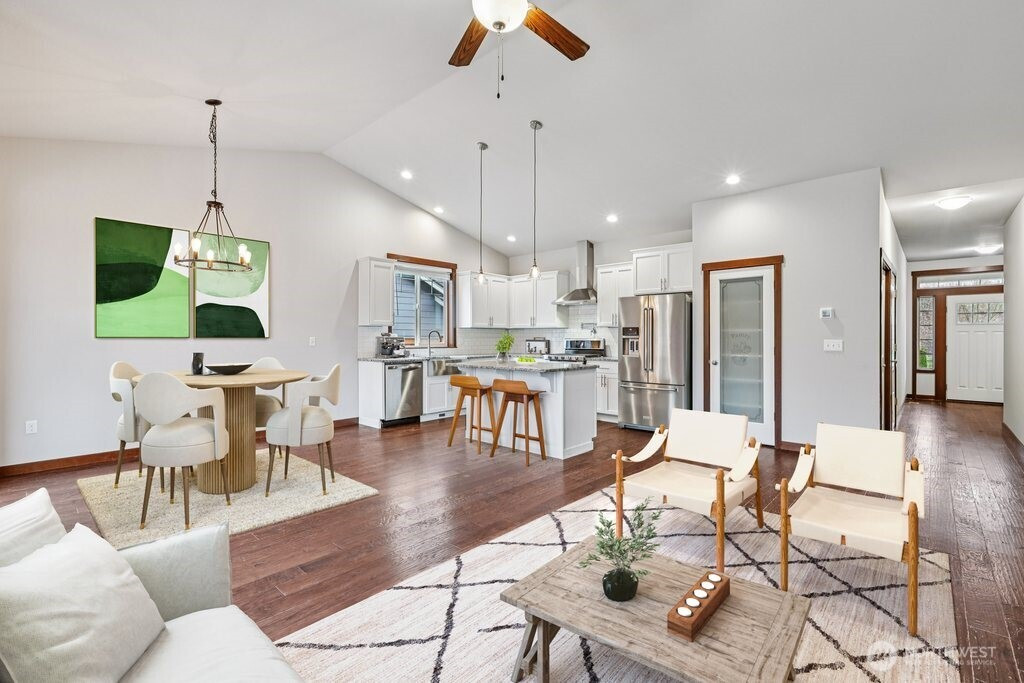 (650)533-3259Experience like-new living in the highly desirable Mineral Point neighborhood! This beautifully designed single-level rambler offers a modern open-concept layout with 1,477 square feet, 3 bedrooms, and 2 bathrooms. The home feels spacious and bright thanks to vaulted ceilings and wide openings throughout. The stylish kitchen features sleek countertops, stainless steel appliances, and a generous pantry, making it perfect for both everyday living and entertaining. The light-filled primary suite offers a peaceful retreat, complete with a private ensuite bathroom for added comfort. Step outside to enjoy the beautifully landscaped backyard, highlighted by a stunning deck, dedicated garden space, dog run, and fully fenced yard. Situated on a quiet dead-end street and backing to greenbelt space, the property offers privacy and a natural buffer. Conveniently located near shopping, restaurants, and entertainment, this move-in-ready home truly has it all.