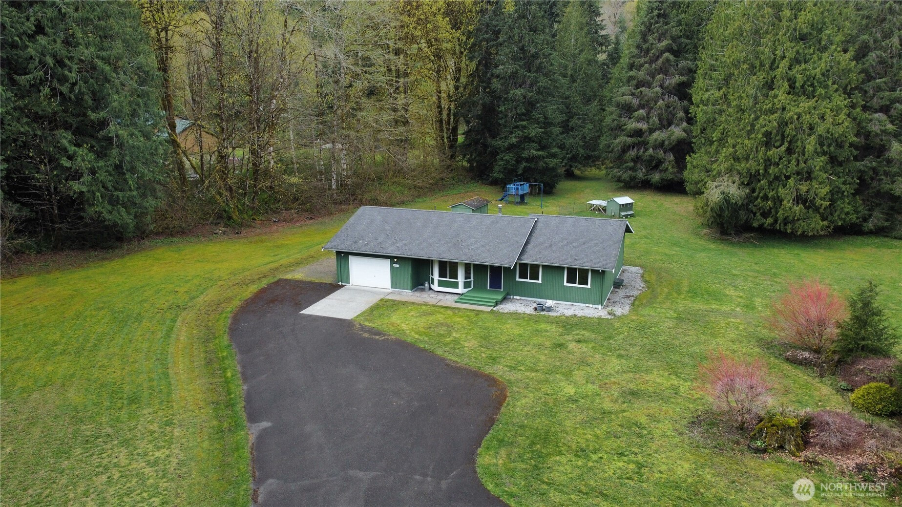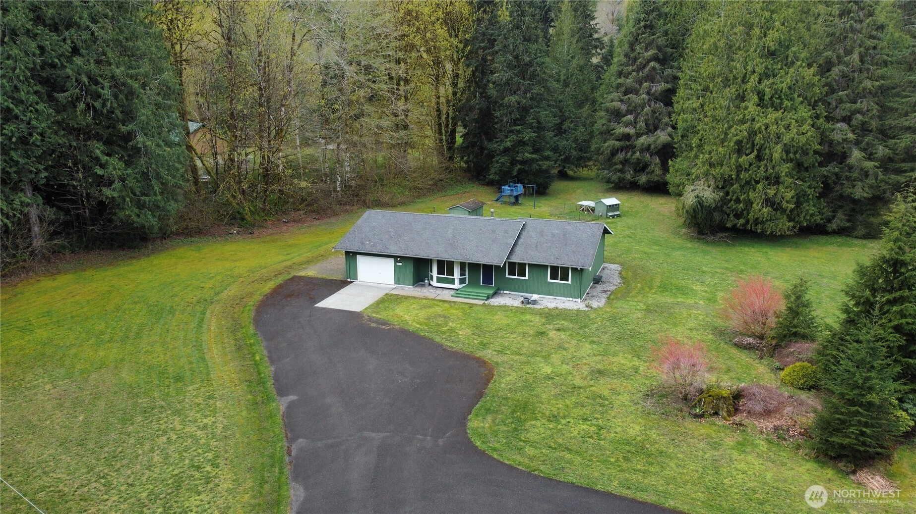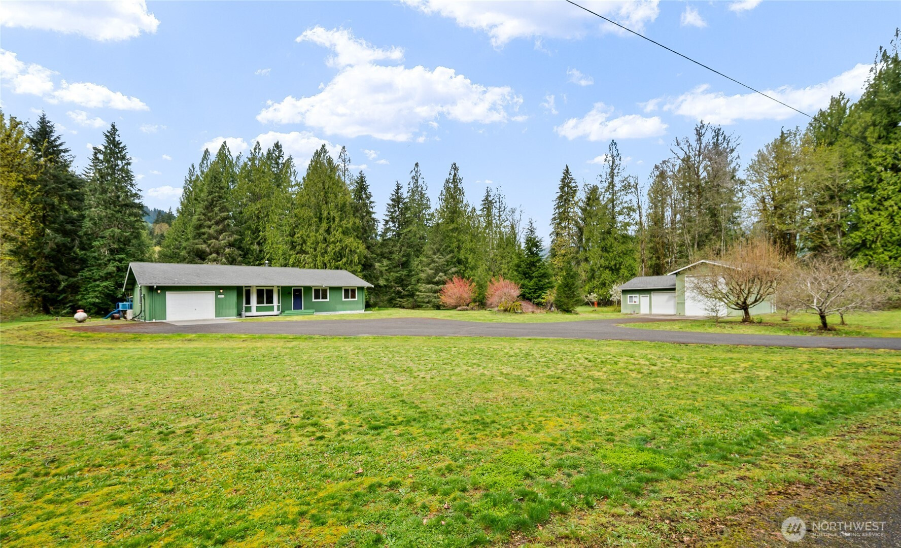 (650)533-3259Exceptional rambler set on 5 acres in a serene setting just outside Arlington on the scenic route toward Darrington. The home sits at the front of the property, welcoming you in with a spacious layout and a truly tranquil atmosphere, while a massive shop off to the side offers incredible versatility for hobbies, storage, or workspace. The land stretches beautifully behind the home with mature trees creating a private, meadow-like retreat. Enjoy established outbuildings including garden sheds, a chicken coop, and a play set—perfect for embracing a rural lifestyle with room to grow, relax, and explore. Inside, the well-maintained rambler features 3 bedrooms and 2 baths with a comfortable, open-concept design ideal for everyday living and entertaining. The living room with stove flows seamlessly into the dining area and kitchen, with easy access to a back patio—perfect for enjoying the peaceful surroundings. Clean, move-in ready, and offering a rare blend of privacy and accessibility, this property delivers the best of both worlds—quiet seclusion with convenient access to amenities in Arlington and quick connectivity to Darrington. A truly special opportunity!