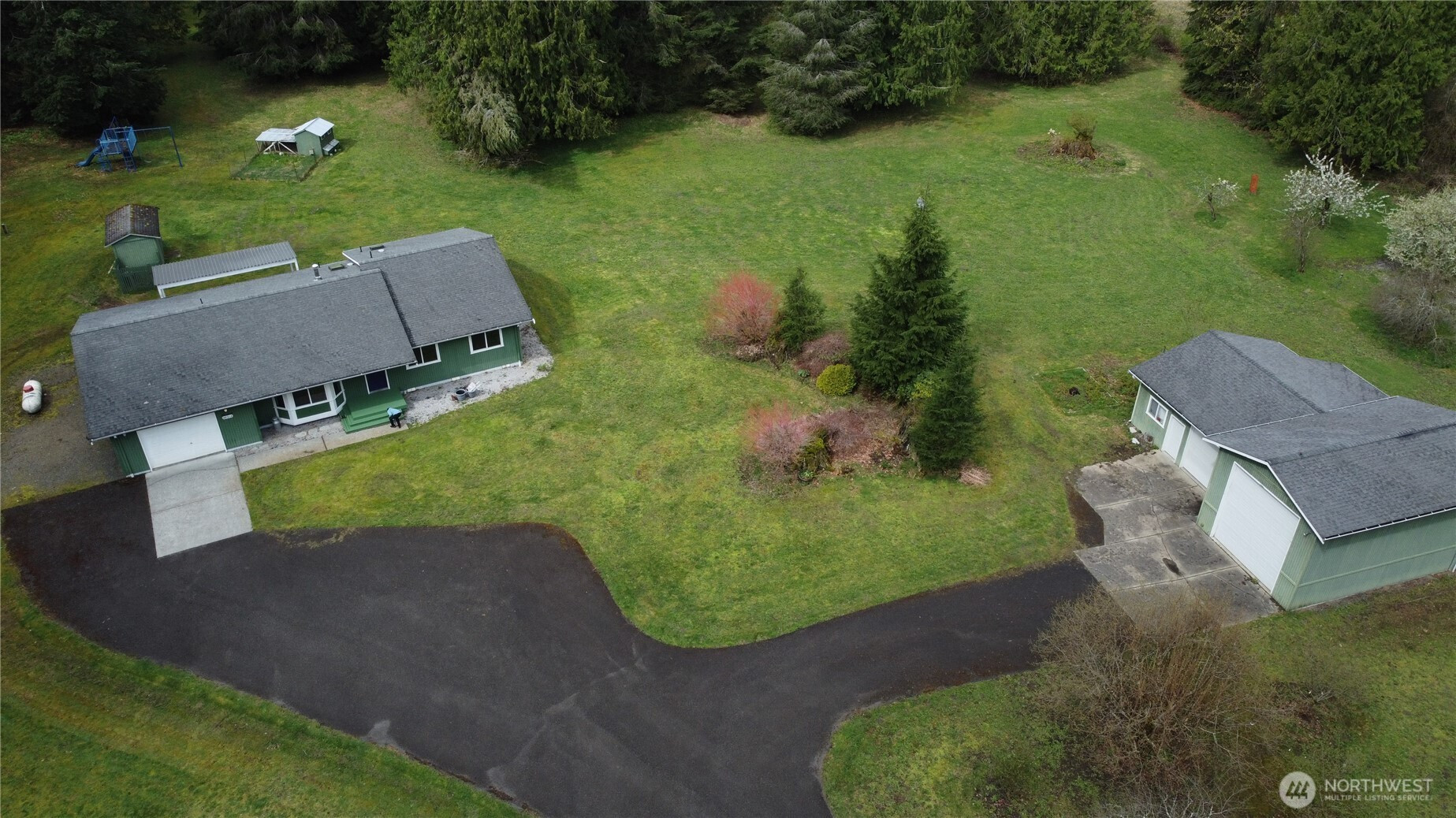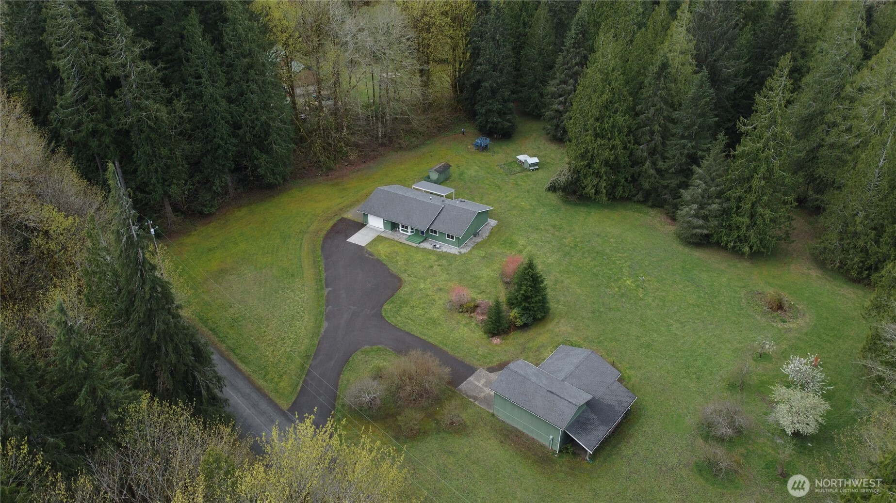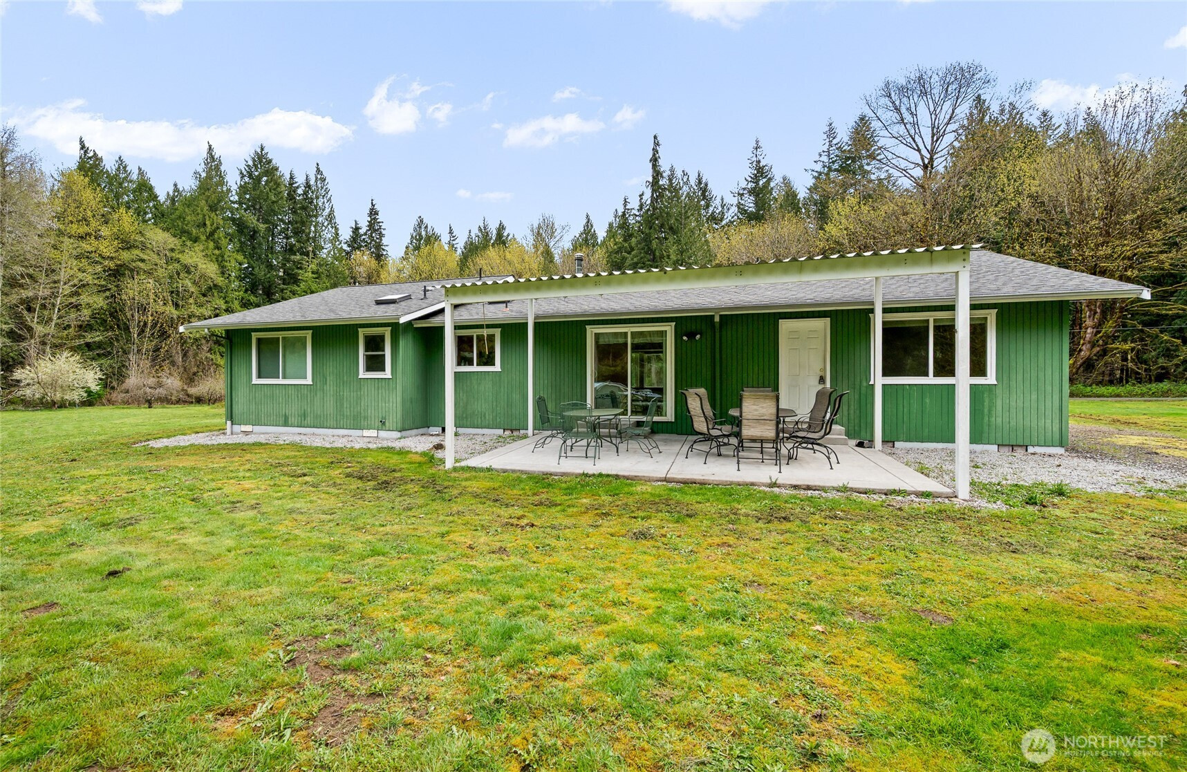 (650)533-3259Exceptional rambler set on 5 acres in a serene setting just outside Arlington on the scenic route toward Darrington. The home sits at the front of the property, welcoming you in with a spacious layout and a truly tranquil atmosphere, while a massive shop off to the side offers incredible versatility for hobbies, storage, or workspace. The land stretches beautifully behind the home with mature trees creating a private, meadow-like retreat. Enjoy established outbuildings including garden sheds, a chicken coop, and a play set—perfect for embracing a rural lifestyle with room to grow, relax, and explore. Inside, the well-maintained rambler features 3 bedrooms and 2 baths with a comfortable, open-concept design ideal for everyday living and entertaining. The living room with stove flows seamlessly into the dining area and kitchen, with easy access to a back patio—perfect for enjoying the peaceful surroundings. Clean, move-in ready, and offering a rare blend of privacy and accessibility, this property delivers the best of both worlds—quiet seclusion with convenient access to amenities in Arlington and quick connectivity to Darrington. A truly special opportunity!