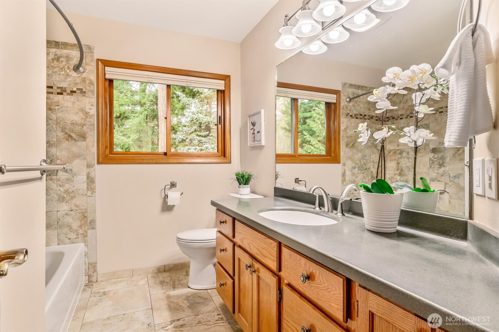 (650)533-3259Most Desirable Reinstedt Farms neighborhood stunner, tucked privately on a serene cul-de-sac commanding over half an acre of lush, fenced grounds & exceptional curb appeal. Thoughtfully curated 4 Rooms residence offering 2.75 baths, where formal elegance meets effortless everyday living. Soaring vaulted ceilings & walls of luminous windows frame breathtaking natural surroundings, filling every space with light throughout. A commanding grand foyer unveils rich hardwood sweeping through a distinguished home office, voluminous formal living & an elegantly proportioned dining room — anchored by walls of oversized windows & absolute privacy beyond. Chef's kitchen captivates — rich granite surfaces, SS appliances & custom cabinetry opening to a sprawling entertainer's deck overlooking your private sanctuary. Rare main-floor room with ¾ bath — a rare luxury at this price point. Upstairs, the opulent primary retreat indulges a spa-inspired 5-piece upgraded bath, joined by two generously proportioned bedrooms & a full bath. Zoned for Northshore SD with award-winning North Creek High. Upgrades list includes Newer windows, Fresh Paint, Newer carpets & appliances & more. Outdoor Sprinkler system. Crowned 50-year Presidential roof. Painted 3-car garage & abundant cul-de-sac parking — ideal for grand entertaining, your events & parties. Not a cookie-cutter address | Not a compromise | Architecturally distinctive | Impeccably maintained | Pre-inspected | Move-in ready. Welcome Home!