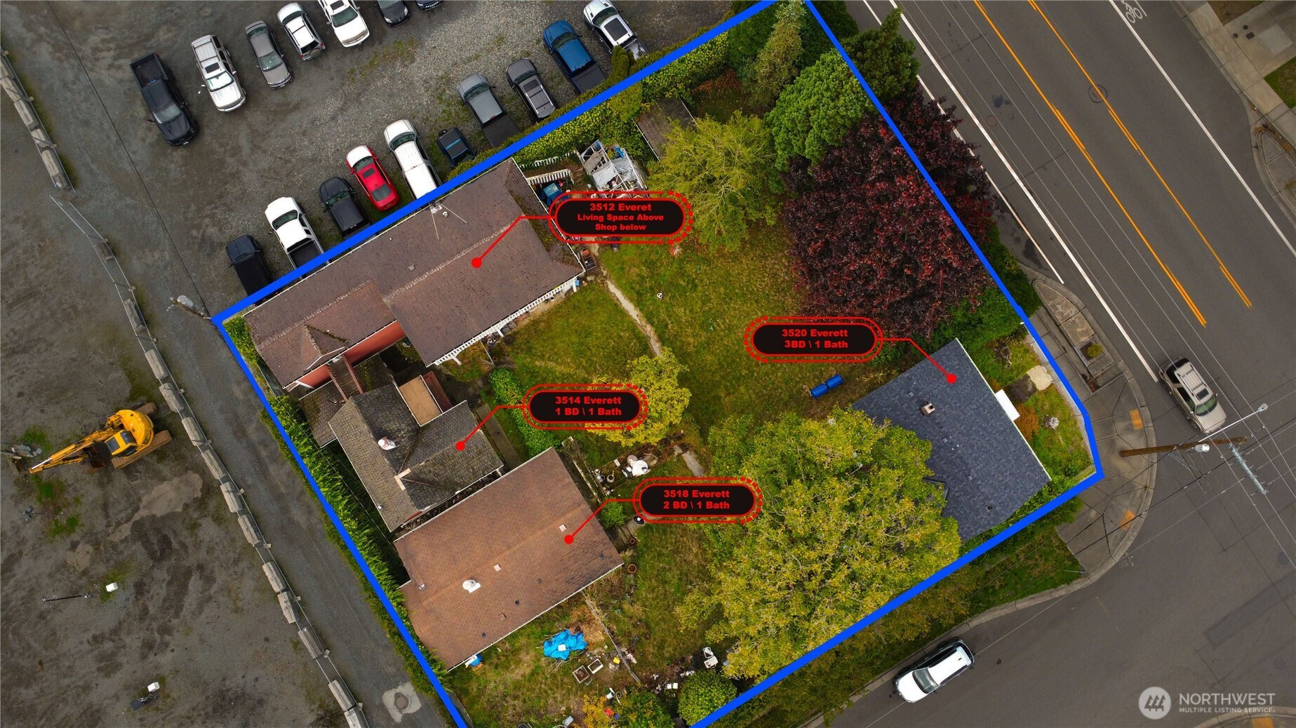 (650)533-3259Unique investment opportunity in Everett featuring three parcels with residential and commercial use. Property includes three rental homes plus a large shop with potential for additional living or work space (buyer to verify). Ideal for investors, business owners, or developers seeking flexible use. Excellent location with easy access to I-5, transit, and downtown Everett. Zoned for possible further development or live/work configurations (buyer to verify with city). Utilities on site. Don’t miss this versatile property with development potential.