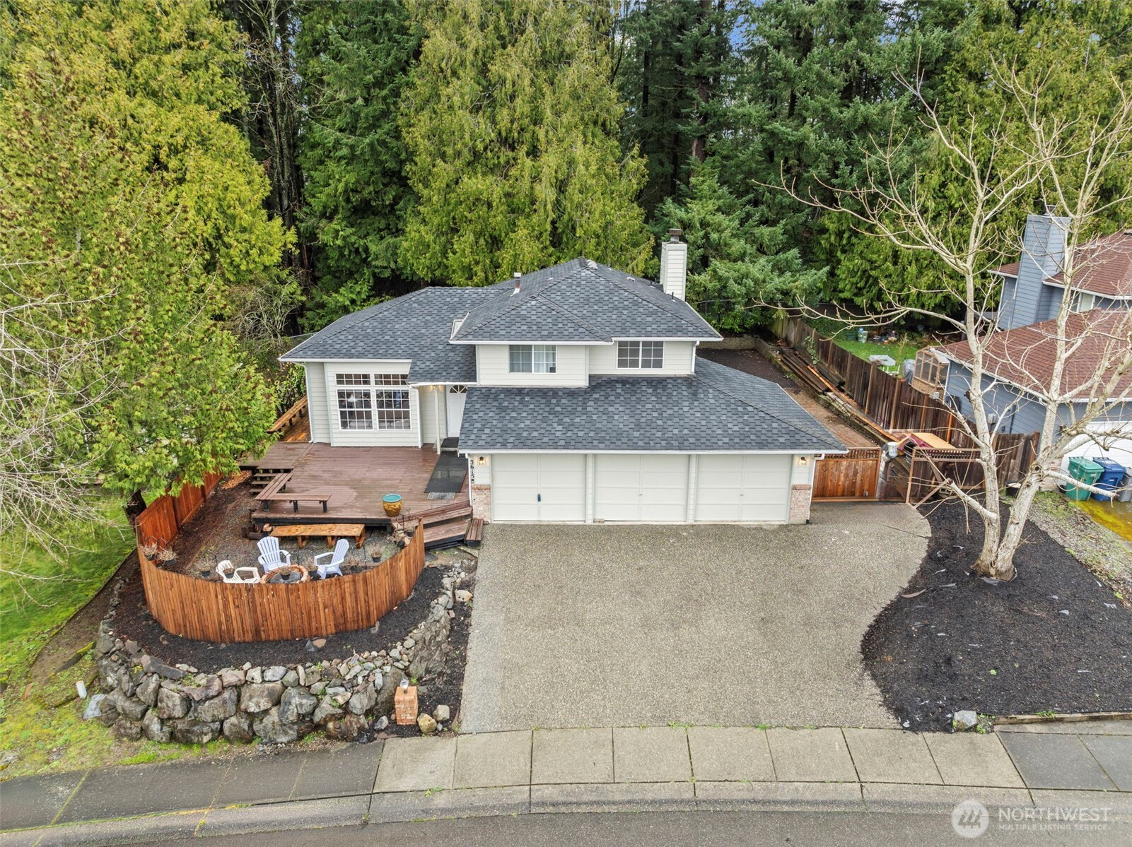 (650)533-3259Welcome to this NW Contemporary tri-level tucked into a quiet cul-de-sac and move-in ready from day one. Fresh paint, new LVP flooring, skylights, and stainless steel appliances create a clean, updated feel, while vaulted ceilings and a spacious living area make the home feel open and inviting. The lower level is designed as an additional living and entertainment space, not a typical basement—ideal for movie nights, gatherings, a game room, or a separate retreat that adds real day-to-day functionality. A standout feature is the 3-car garage, providing generous space for parking, storage, hobbies, or a dedicated workspace. Step outside and you’ll find where this home really shines—an expansive deck plus a custom dance/entertainment deck, perfect for hosting, relaxing, or creating your own outdoor experience. The fully fenced backyard backs directly to Spruce Park, offering a private, natural setting with no homes behind. There’s also a built-in playhouse and covered, hidden exterior storage that adds both function and fun. With no HOA, you have the freedom to personalize and enhance the home over time. While it’s ready to enjoy today, there’s still meaningful opportunity to update and add value in a way that fits your vision. Conveniently located near I-5, I-405, Alderwood Mall, and major commuter routes, this home offers a strong blend of comfort, flexibility, and future upside.