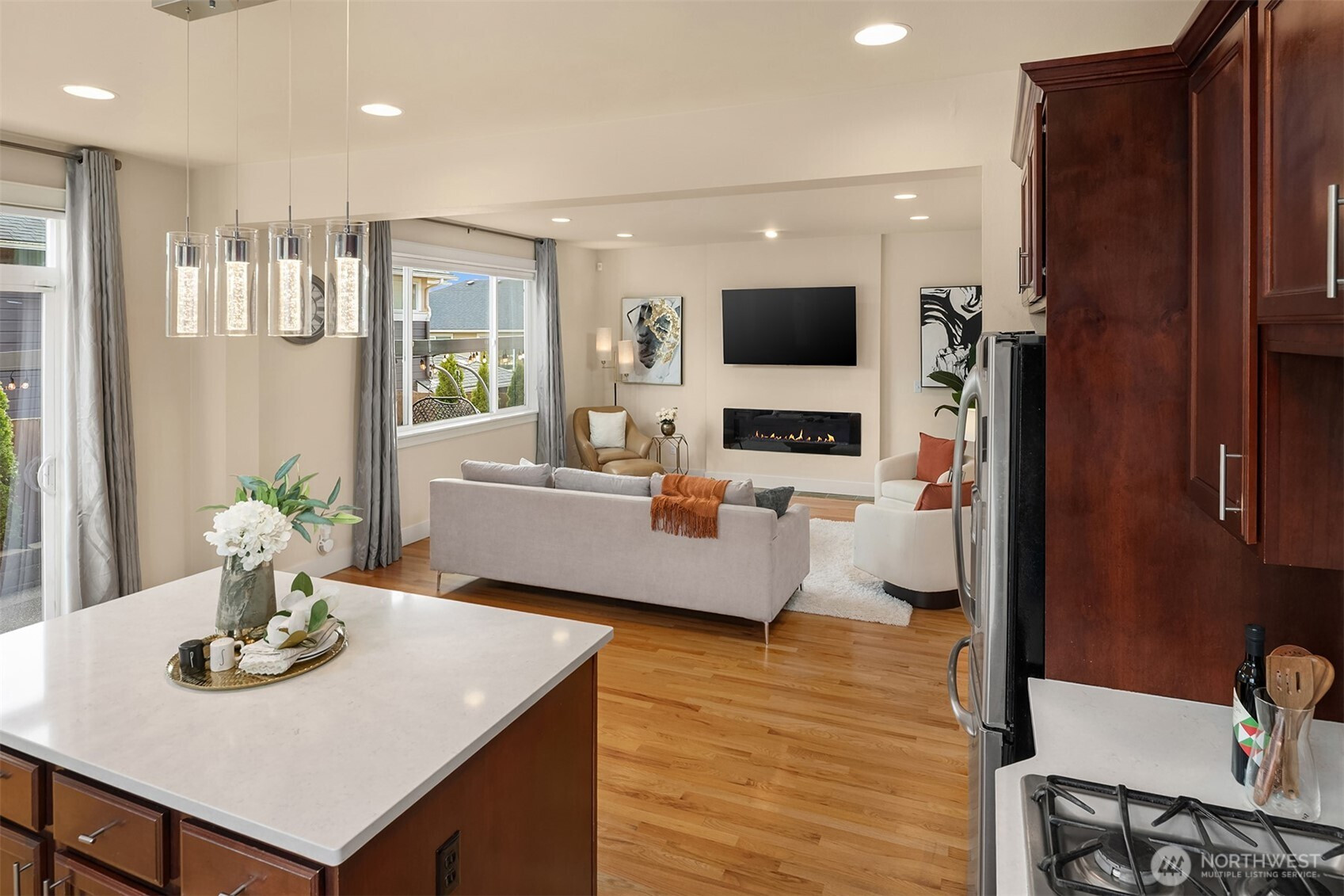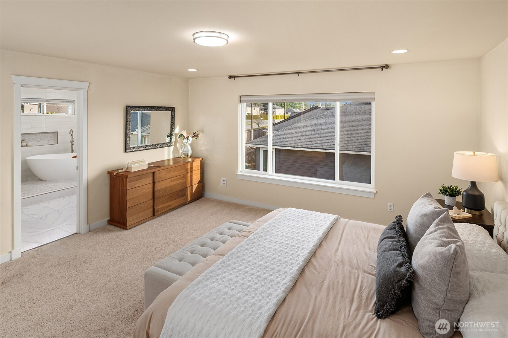 (650)533-3259Extensively remodeled, this spacious 5-bedroom, Murray Franklyn-built home, resides in the sought-after Carriage Park neighborhood. A grand entry welcomes you with soaring ceilings, beautiful hardwoods and expansive picture windows that elevate the formal living & dining spaces. Designed for entertaining, the updated kitchen features a large quartz island, premium SS appliances, a gas range & seamless flow into the inviting family room with a sleek fireplace. A coveted main-level bedroom or office with a ¾ bath offers flexibility for guests, multigenerational living, or work-from-home needs. Upstairs, a generous bonus room provides the perfect space for game day or play. The primary suite is a true retreat, offering a spacious bedroom and a luxurious bathroom you may never want to leave. The huge shower with dual showerheads is accentuated by designer tile and a fabulous soaking tub. 3 additional bedrooms, another beautifully updated full bathroom, and a conveniently located utility room complete the upper level. Outside, a gazebo sits on the expansive patio for year-round outdoor entertaining. The yard is fully fenced, with low-maintenance turf and an integrated sprinkler system to maintain a lush landscape surround. Recent updates include central A/C, a new roof, smart home technology for app-controlled lighting and heat, along with a newer water heater. Surrounded by parks and scenic walking trails, you are just minutes to the Mill Creek Town Center and excellent schools.