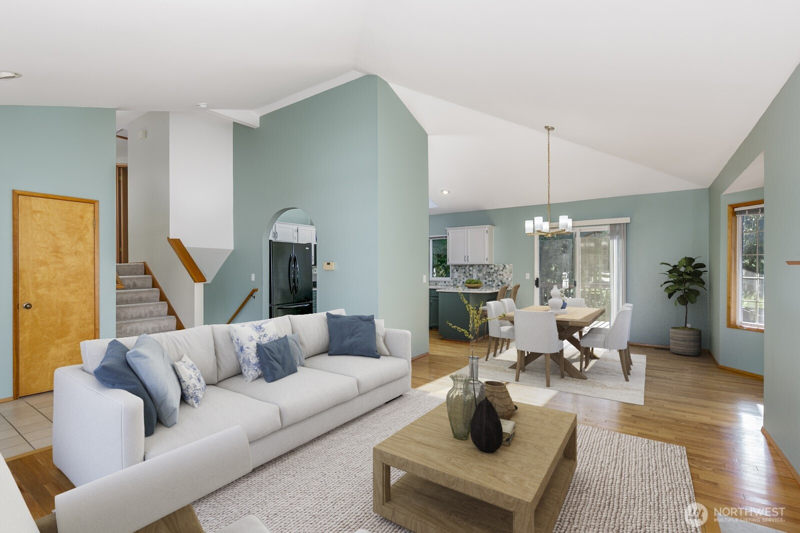 (650)533-3259Step inside and be greeted by hardwood floors, vaulted ceilings and living room equipped with a gas fireplace and bay window. Dining room is open to kitchen with eating bar. The heart of the home is the updated kitchen, featuring luxurious quartz countertops including a premium gas range. Whether you're a culinary enthusiast or simply love gathering with friends and family, the open kitchen, dining and living room promises to be a hub for gatherings. Primary bedroom is complete with full bath and walk in closet. Updates include new carpet, lighting, fresh interior and exterior paint. Enjoy your morning coffee or have a BBQ on the Trex deck overlooking the level backyard perfect for play or gardening and backs up to a picturesque park.