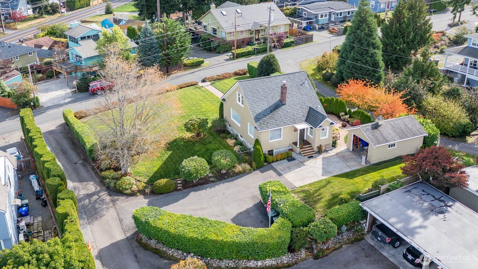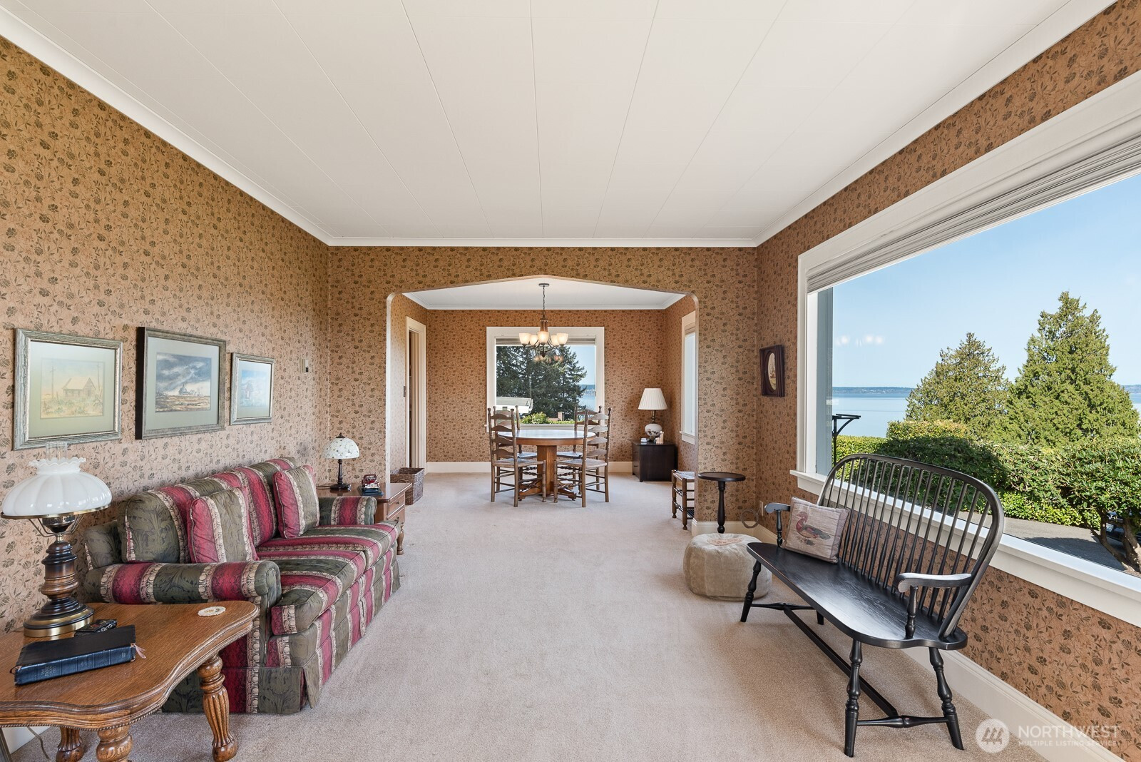 (650)533-3259Welcome a Seahurst gem, where timeless charm meets breathtaking Puget Sound & mountain views both inside and out. This well-preserved 1925 home sits on a rare, large level lot surrounded by beautifully manicured, mature landscaping that offers exceptional privacy, along with a serene patio—perfect for relaxing or entertaining. Inside, you’ll find designer wallpaper thoughtfully curated throughout, adding character and warmth to every space. The main level features a bright kitchen with a cozy breakfast nook and charming Dutch door, a spacious dining room, and an inviting living area—all positioned to capture stunning water and mountain views. A main-level bedroom with pine floors and a bathroom with a stylishly tiled shower provide flexibility and convenience. Upstairs, two additional bedrooms offer comfortable retreats with extra storage, while the unfinished basement—with its own exterior entrance, built-in storage, and roughed-in shower—presents endless potential for customization. Enjoy sweeping vistas of the Sound & mountains, watch Clinton ferry, and take in unforgettable sunsets from your own home. Complete with a detached one-car garage and ample off-street parking, this property combines classic appeal with everyday functionality. Ideally located just minutes from parks, waterfront amenities & Boeing Field, this is a rare opportunity to own a truly special home in an unbeatable setting. Don’t miss this classic treasure—location truly is everything!