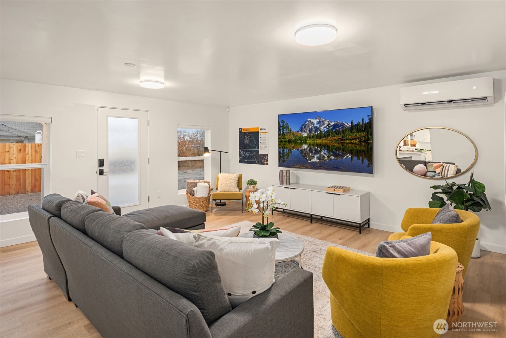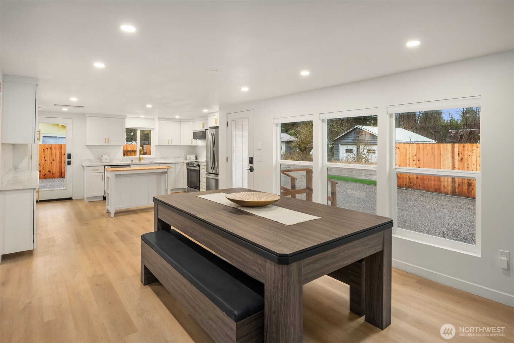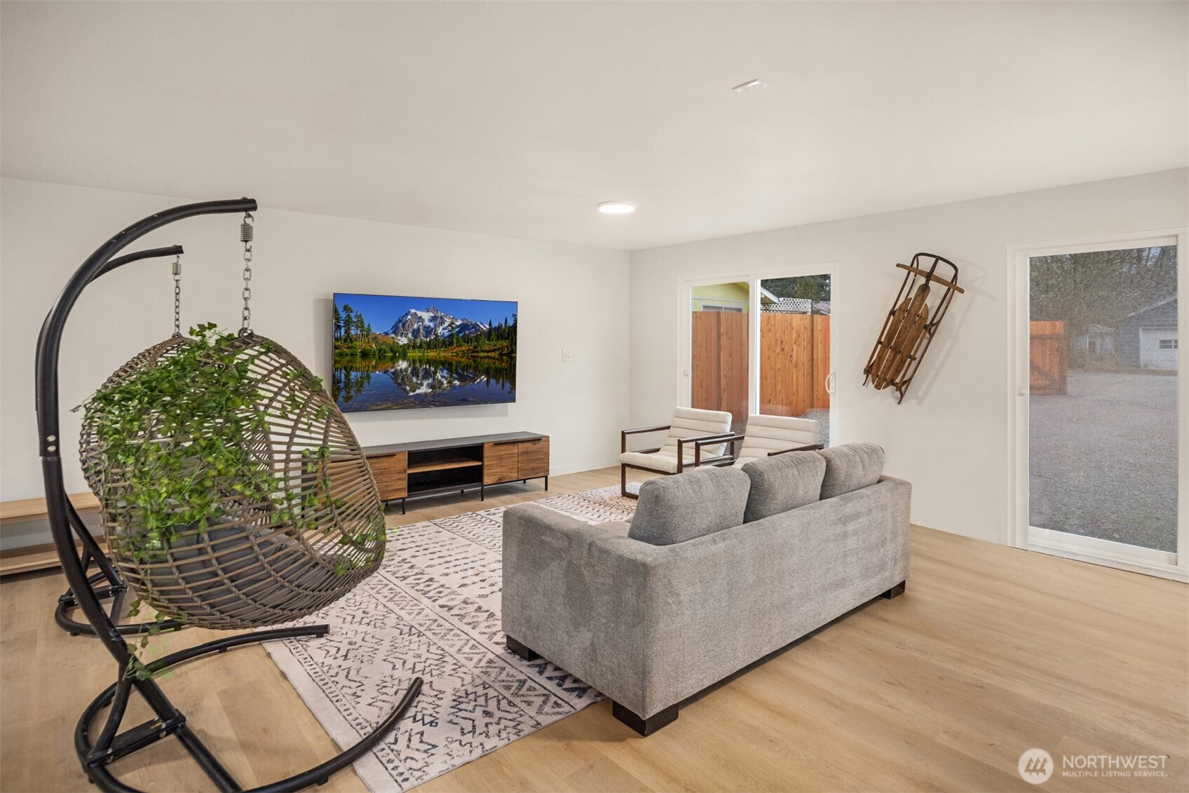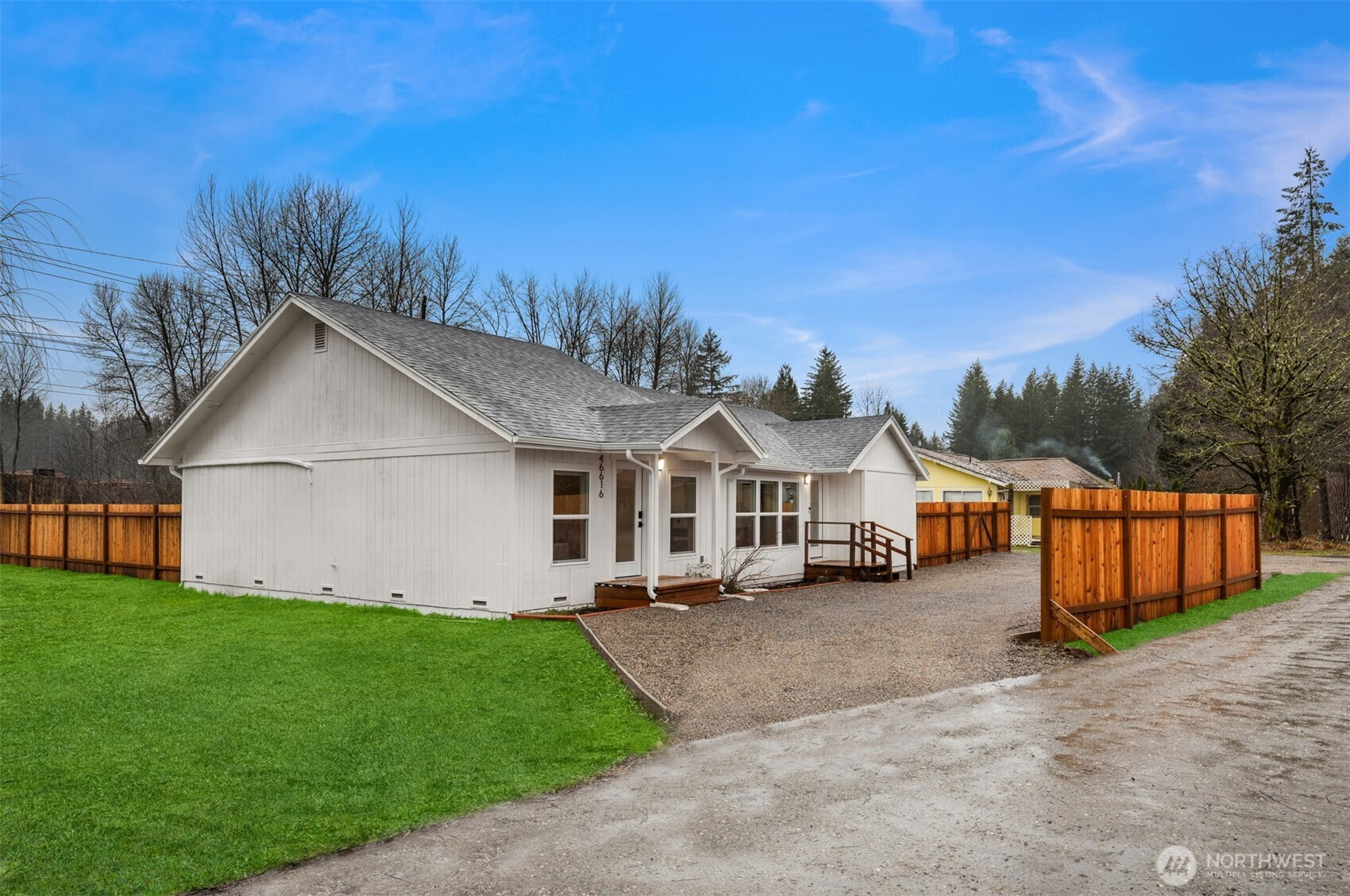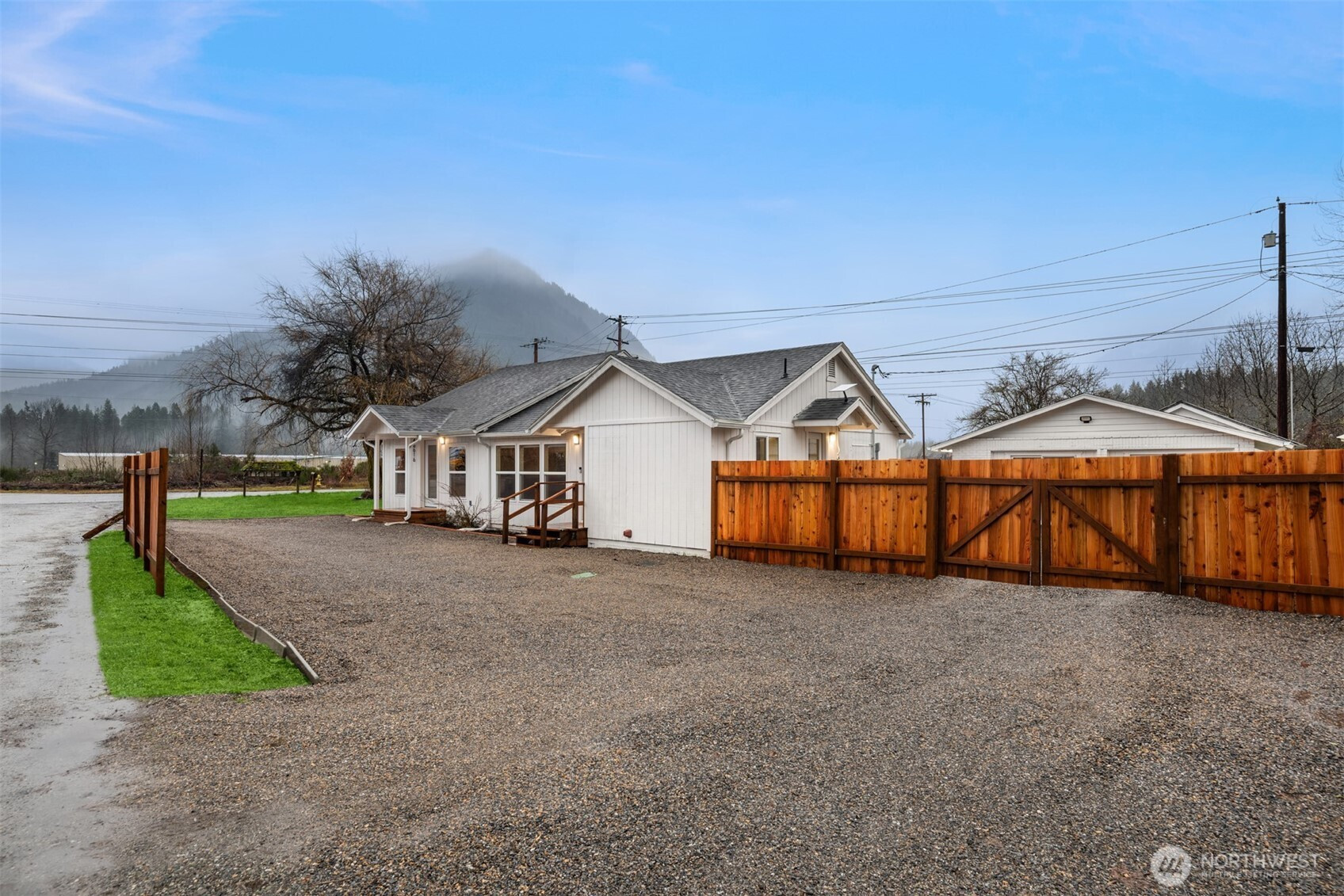 (650)533-3259Beautifully remodeled 3 bed/1.75 bath home in Darrington with mountain views, near the North Cascades with endless hiking opportunities. Features include LVP flooring throughout, a spacious primary suite with double vanity, quartz counters, tile shower and floors. Two large bedrooms share a stylish full bath. The kitchen boasts shaker cabinets, quartz counters, and stainless appliances. Finished 672sf garage with LVP and glass sliders makes a perfect rec room. Mini splits for year-round comfort. Studs-out remodel includes new windows, doors, insulation, and roof, as well as new plumbing and electrical throughout. Fully fenced yard, detached carport with RV hookups. Offered furnished or unfurnished.