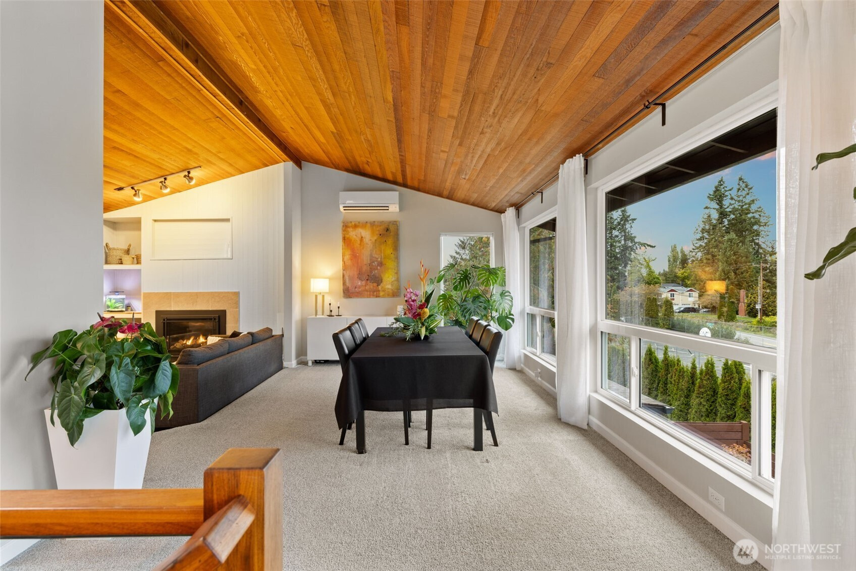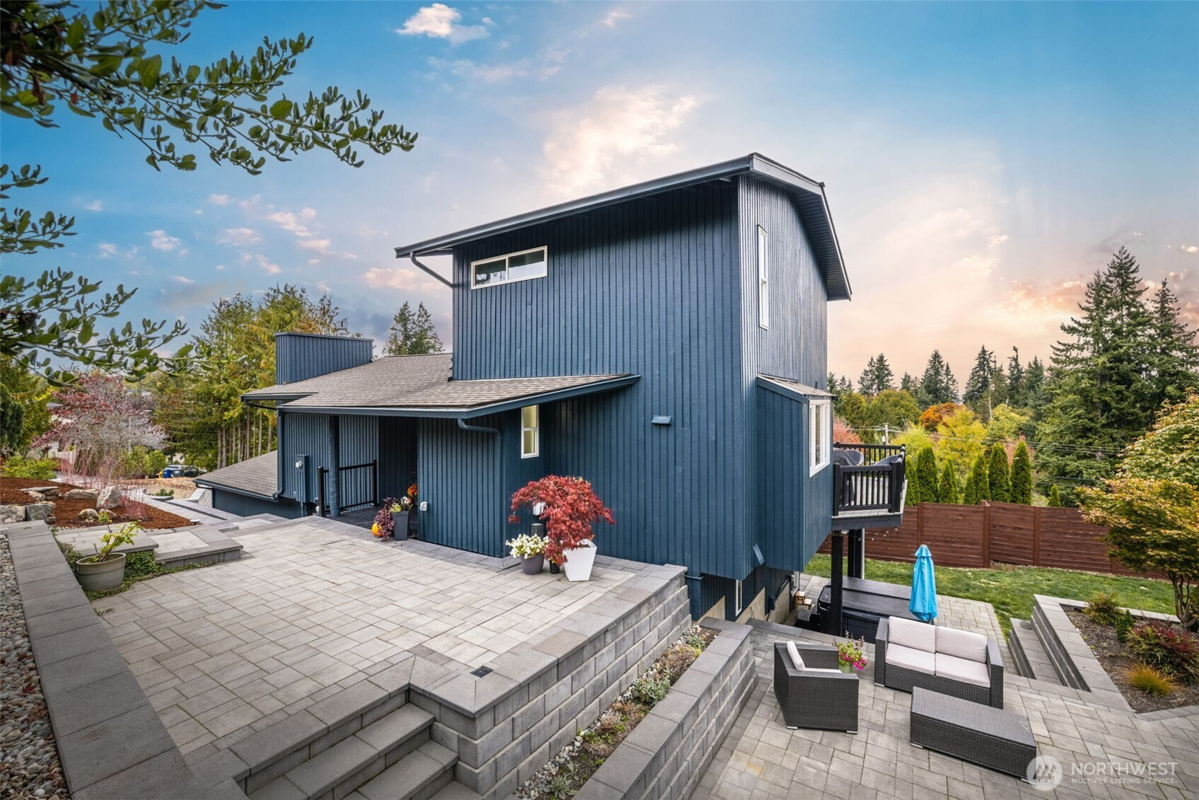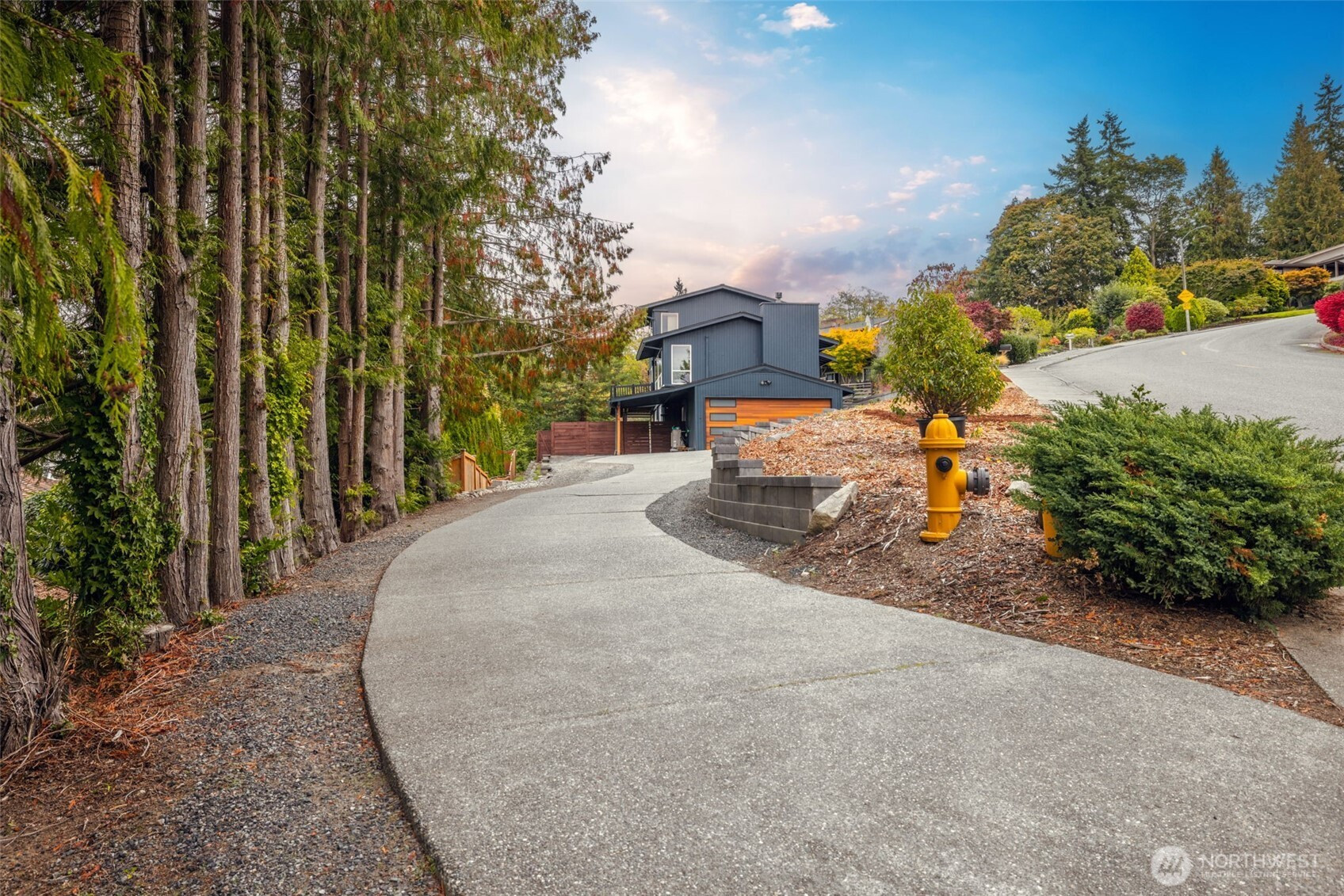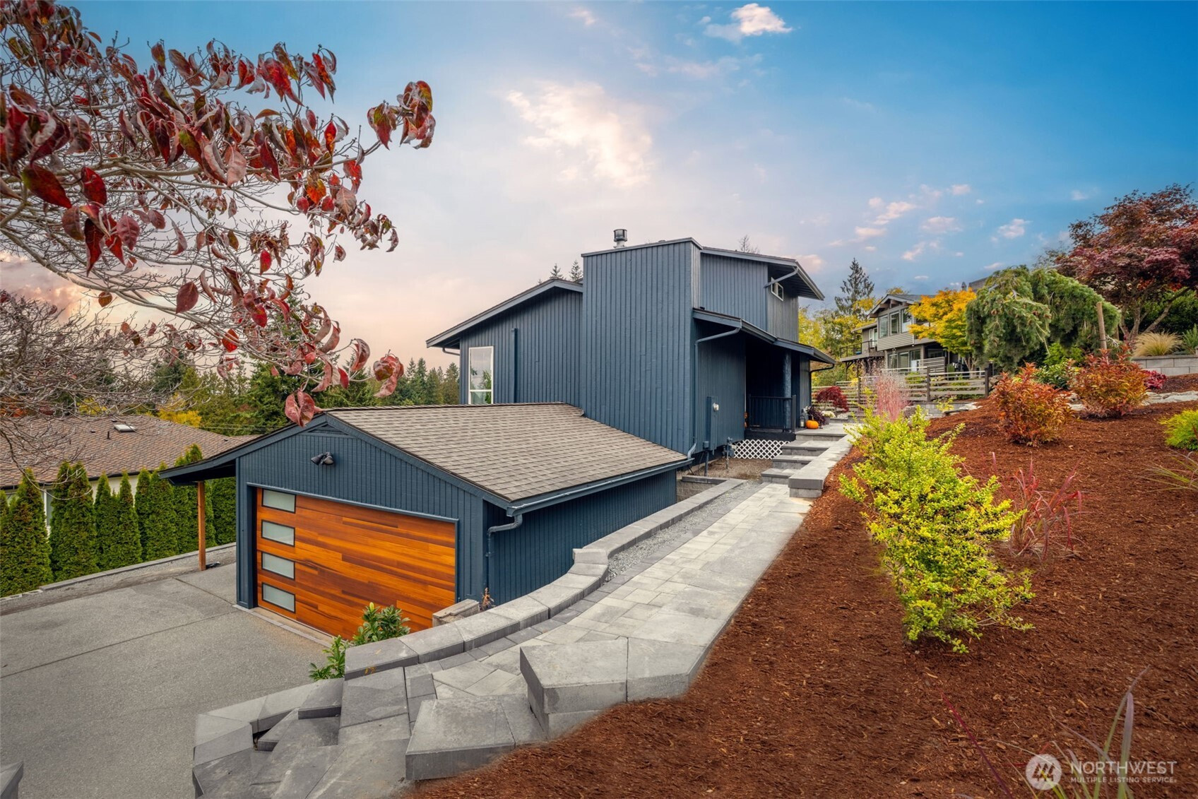 (650)533-3259Awash with natural light and framed by oversized windows, this freshly painted Northwest Contemporary home captures peek-a-boo Sound views and a kaleidoscope of autumn color. The atrium-like kitchen glows, inviting morning coffee amid the trees. Cozy up by the gas fireplace under vaulted cedar ceilings, the perfect place to entertain guests or enjoy a quiet moment. Retreat upstairs to a private primary suite perched above it all. Outside, custom lit hardscaping and lush yard spaces unfold for gatherings under open skies. With modern comforts—tankless hot water, HP mini-split climate control—this home marries warmth, wit, and wonder in one inspired sanctuary. All in the desirable Boulevard Bluffs neighborhood.