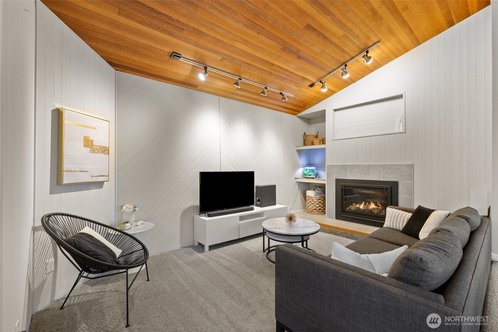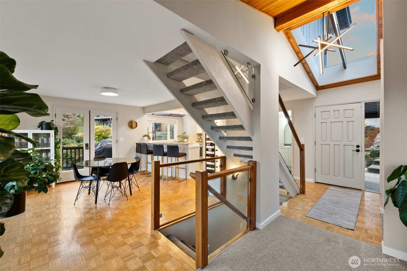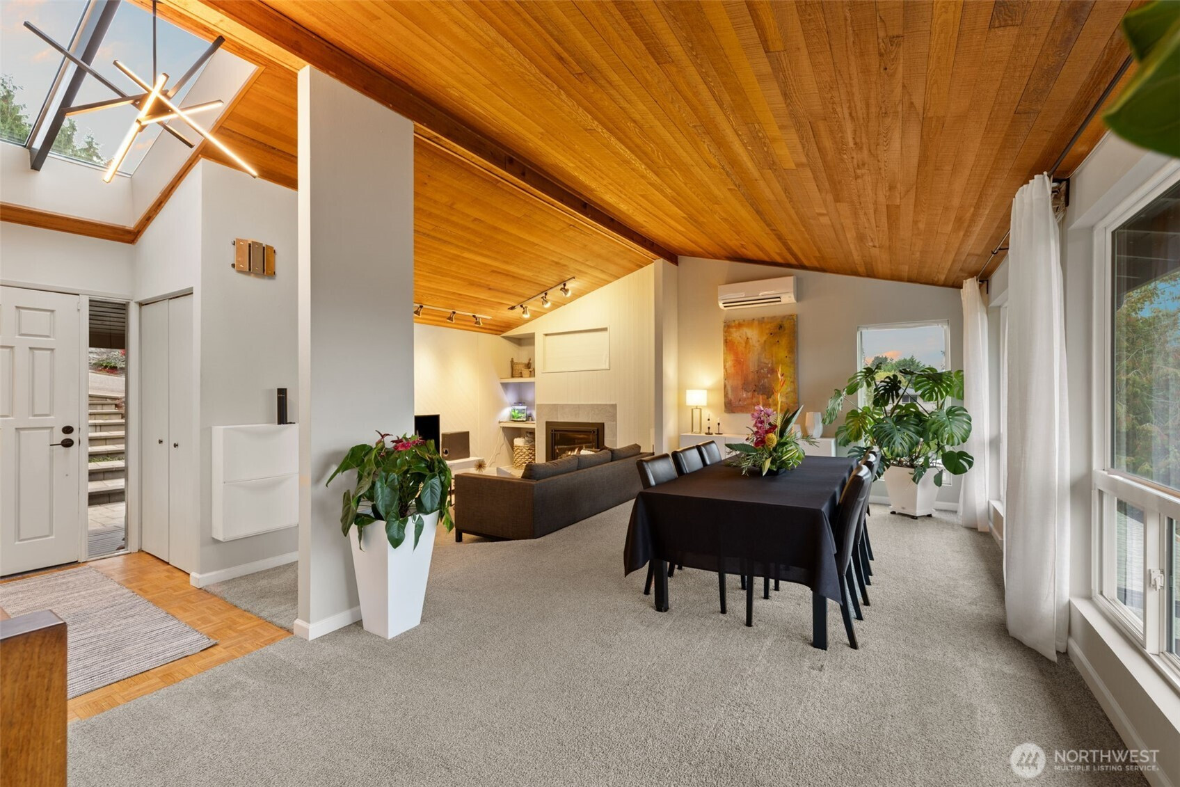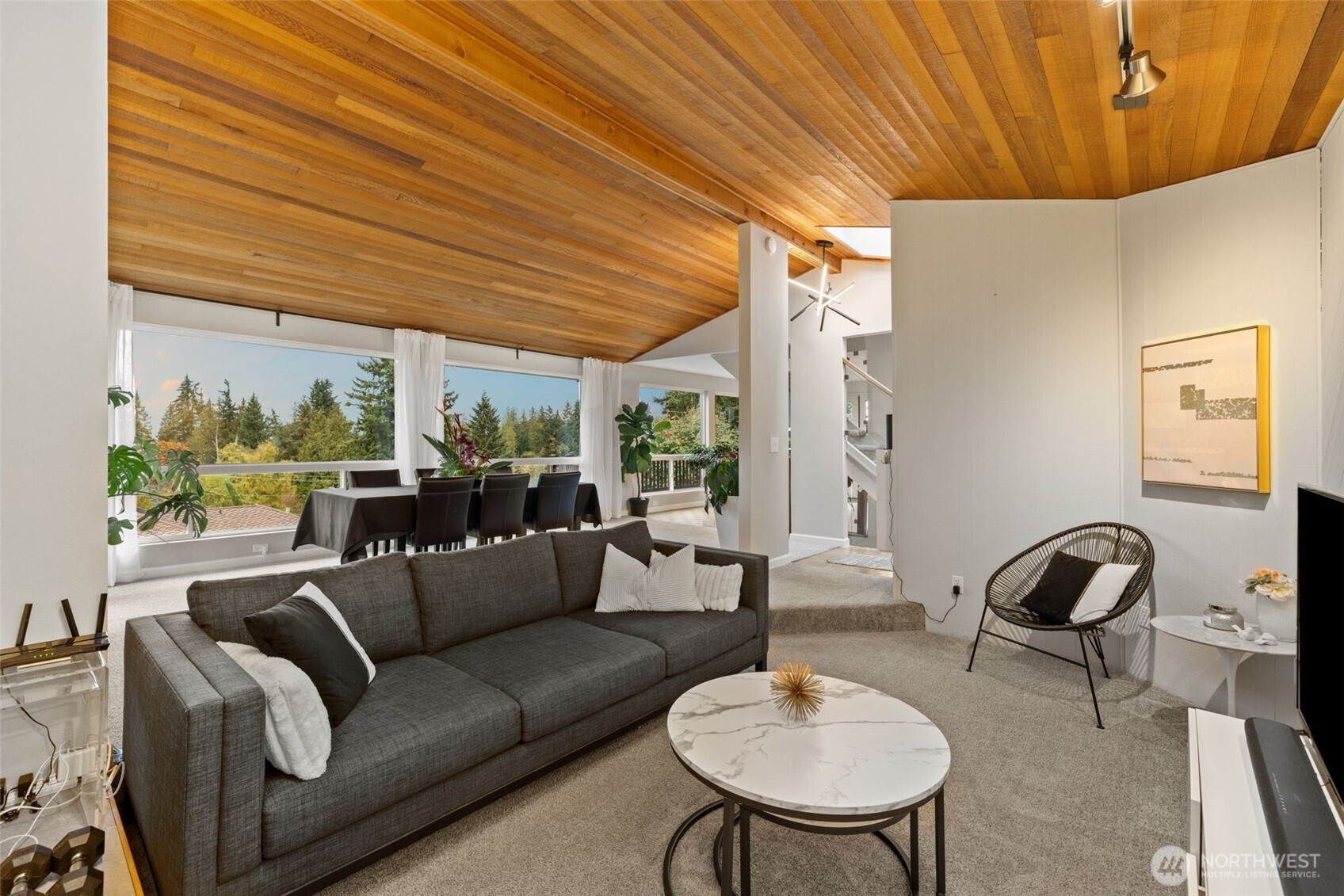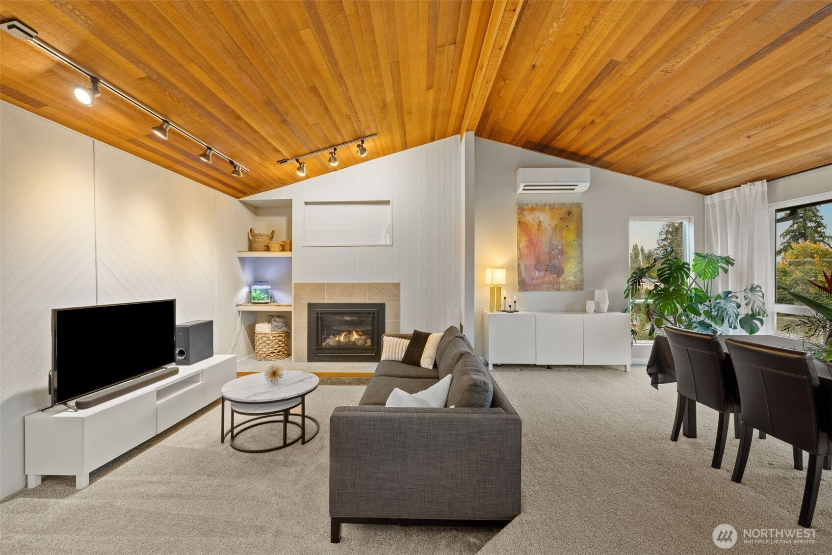 (650)533-3259Awash with natural light and framed by oversized windows, this freshly painted Northwest Contemporary home captures peek-a-boo Sound views and a kaleidoscope of autumn color. The atrium-like kitchen glows, inviting morning coffee amid the trees. Cozy up by the gas fireplace under vaulted cedar ceilings, the perfect place to entertain guests or enjoy a quiet moment. Retreat upstairs to a private primary suite perched above it all. Outside, custom lit hardscaping and lush yard spaces unfold for gatherings under open skies. With modern comforts—tankless hot water, HP mini-split climate control—this home marries warmth, wit, and wonder in one inspired sanctuary. All in the desirable Boulevard Bluffs neighborhood.