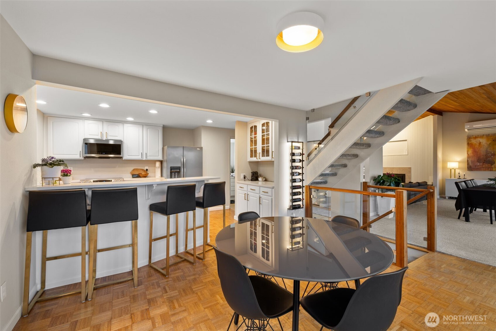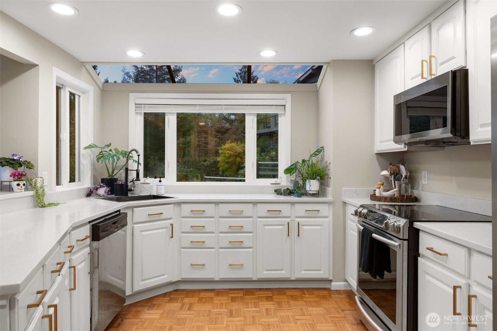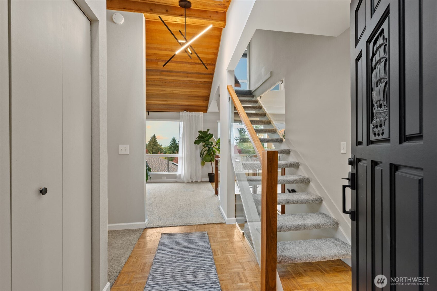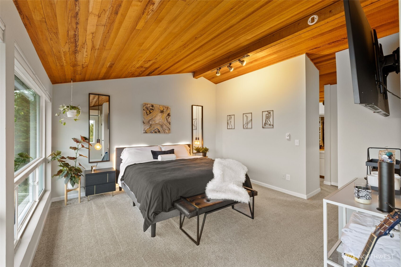(650)533-3259Awash with natural light and framed by oversized windows, this freshly painted Northwest Contemporary home captures peek-a-boo Sound views and a kaleidoscope of autumn color. The atrium-like kitchen glows, inviting morning coffee amid the trees. Cozy up by the gas fireplace under vaulted cedar ceilings, the perfect place to entertain guests or enjoy a quiet moment. Retreat upstairs to a private primary suite perched above it all. Outside, custom lit hardscaping and lush yard spaces unfold for gatherings under open skies. With modern comforts—tankless hot water, HP mini-split climate control—this home marries warmth, wit, and wonder in one inspired sanctuary. All in the desirable Boulevard Bluffs neighborhood.