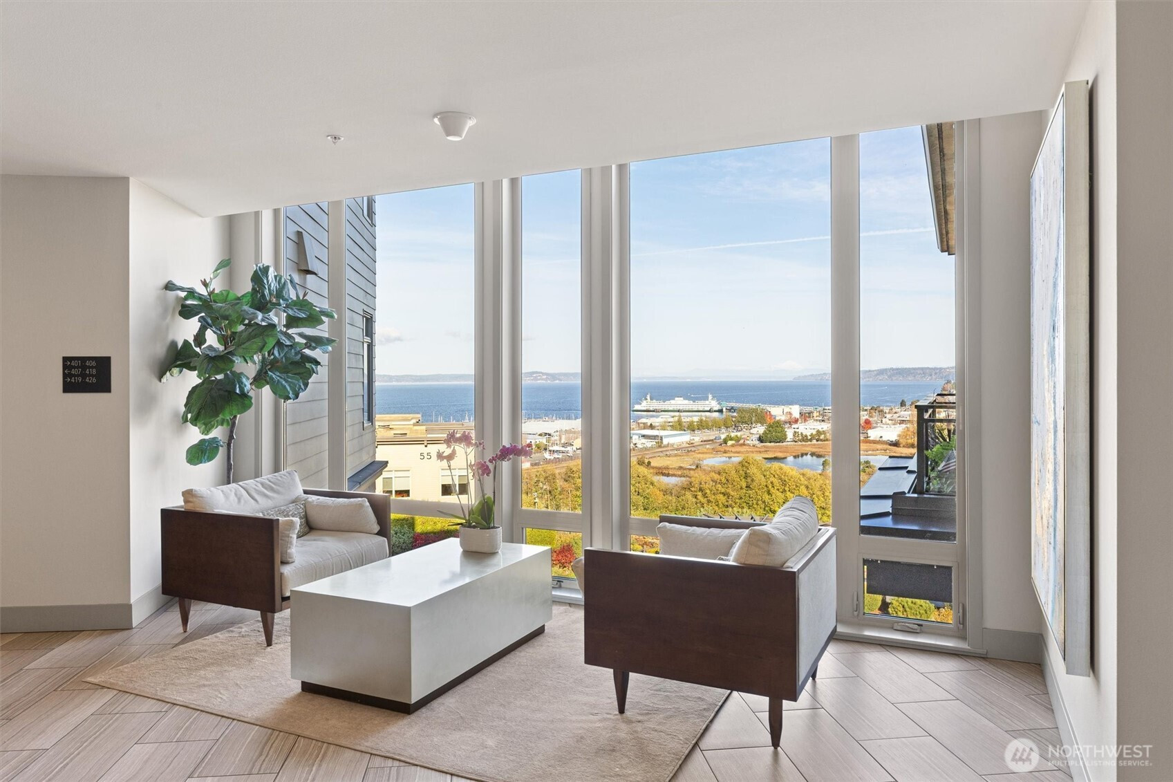 (650)533-3259Experience elevated coastal living in this stunning one-level condo showcasing Puget Sound and mountain views. Thoughtfully designed with modern elegance, with tastefully done updates—wide-plank hardwoods, quartz counters, euro cabinetry, stainless appliances, and electronic blinds. The chef’s kitchen and eating bar and open layout creates effortless flow for entertaining. Retreat to the luxurious primary suite with a gorgeous bathroom and walk-in closet. Beautiful 2nd bedroom with a walk-in closet. Additional modern style full bath. Enjoy upscale amenities—rooftop terrace featuring panoramic views, BBQ, owners’ lounge, gym, and two parking spaces and storage unit. Minutes to charming downtown Edmonds, the waterfront, ferries and much more!