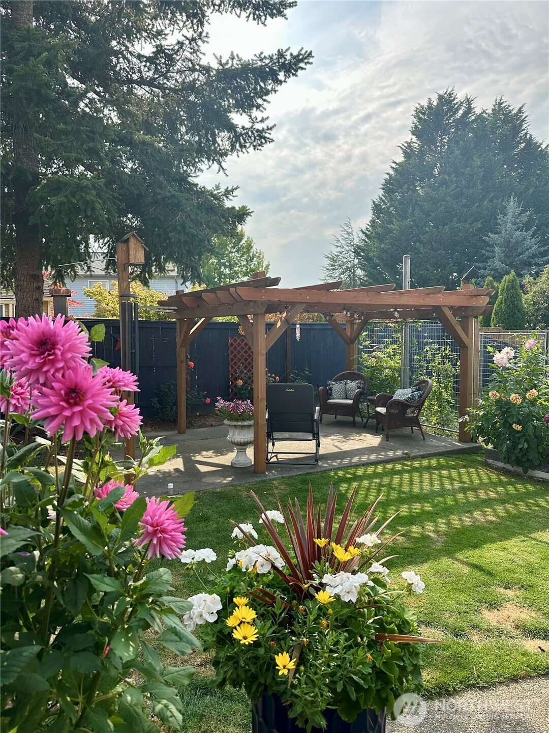 (650)533-3259Nestled in the highly desirable Parkview Estates, this elegant and well maintained home offers exceptional versatility with not one, but two spacious primary suites. The main level primary suite features its own living room or office space and a separate entrance ideal for multi-generational living or potential rental income. New carpet on main. Upstairs, you’ll find a second expansive primary suite complete with a beautiful sitting area and a well appointed bathroom, along with two additional generously sized bedrooms. The updated eat-in kitchen showcases new stainless steel Fridge movable kitchen island that stays. Kitchen flows seamlessly into the formal dining and living rooms, highlighted by soaring high ceilings that create an open and inviting atmosphere with beautiful hardwood floors. AC for your comfort. Outside, enjoy mature landscaping, a large patio perfect for entertaining, a beautiful custom lighted pergola, a sizable storage shed, English style garden with flowers galore, a greenhouse and convenient RV parking. The property also features a three car garage with 220 single phase wiring abundant storage and ample additional parking. Wired for Generator. Fresh Sod in Front welcomes you! This home truly combines comfort, functionality, and flexibility in a convenient location close to Boeing, dining, shopping and all Marysville has to offer.