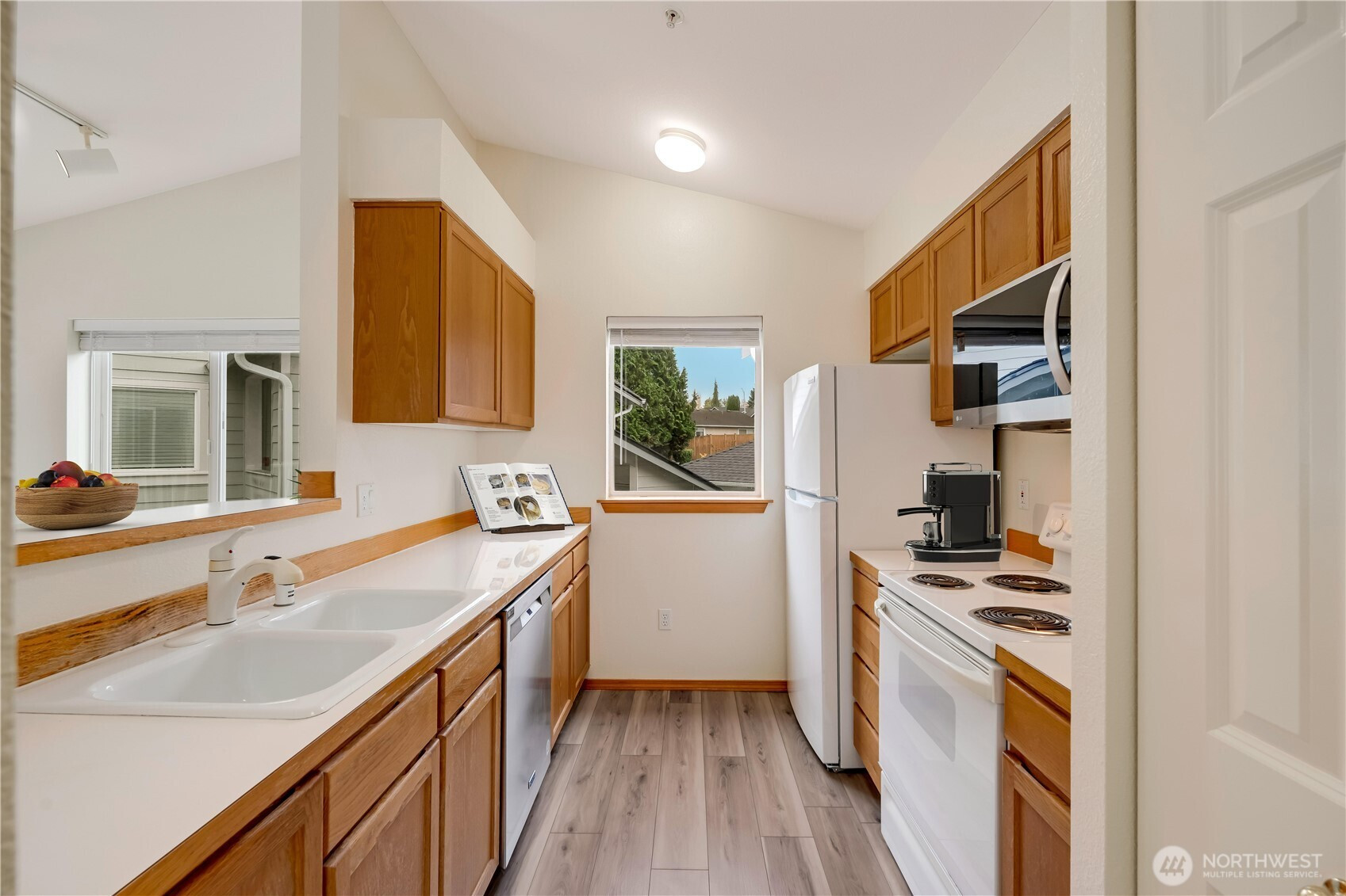 (650)533-3259Top-floor living meets everyday convenience in this freshly updated 2-bed, 2-bath condo with a private garage—a rare find in this price range. Tucked inside a quiet, tree-lined community surrounded by single-family homes, it feels more like a neighborhood than a complex. Vaulted ceilings and an open floor plan create a bright, spacious feel, anchored by a cozy gas fireplace and a kitchen built for connection. Step onto your large private deck overlooking a peaceful greenbelt and exhale. The HOA covers W/S/G and maintains the park, basketball court, and newly replaced roof—so you can simply live. Minutes to Boeing, Mukilteo, and Edmonds, this is where comfort, safety, and location finally align. The one you’ve been waiting for!