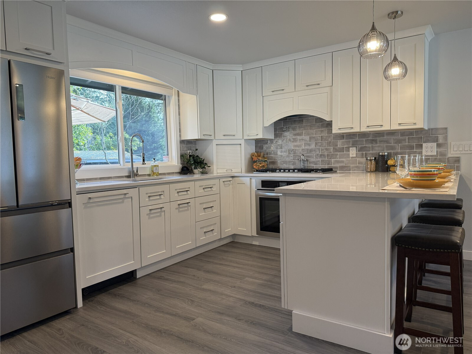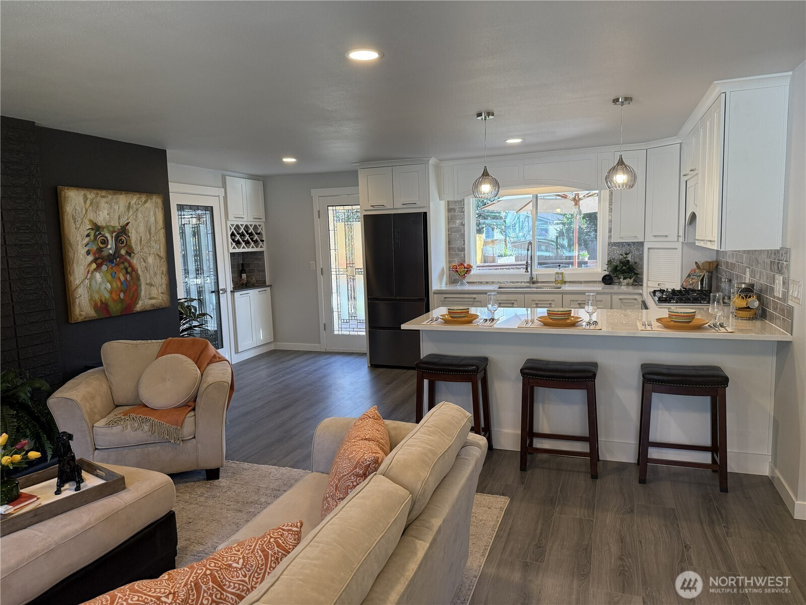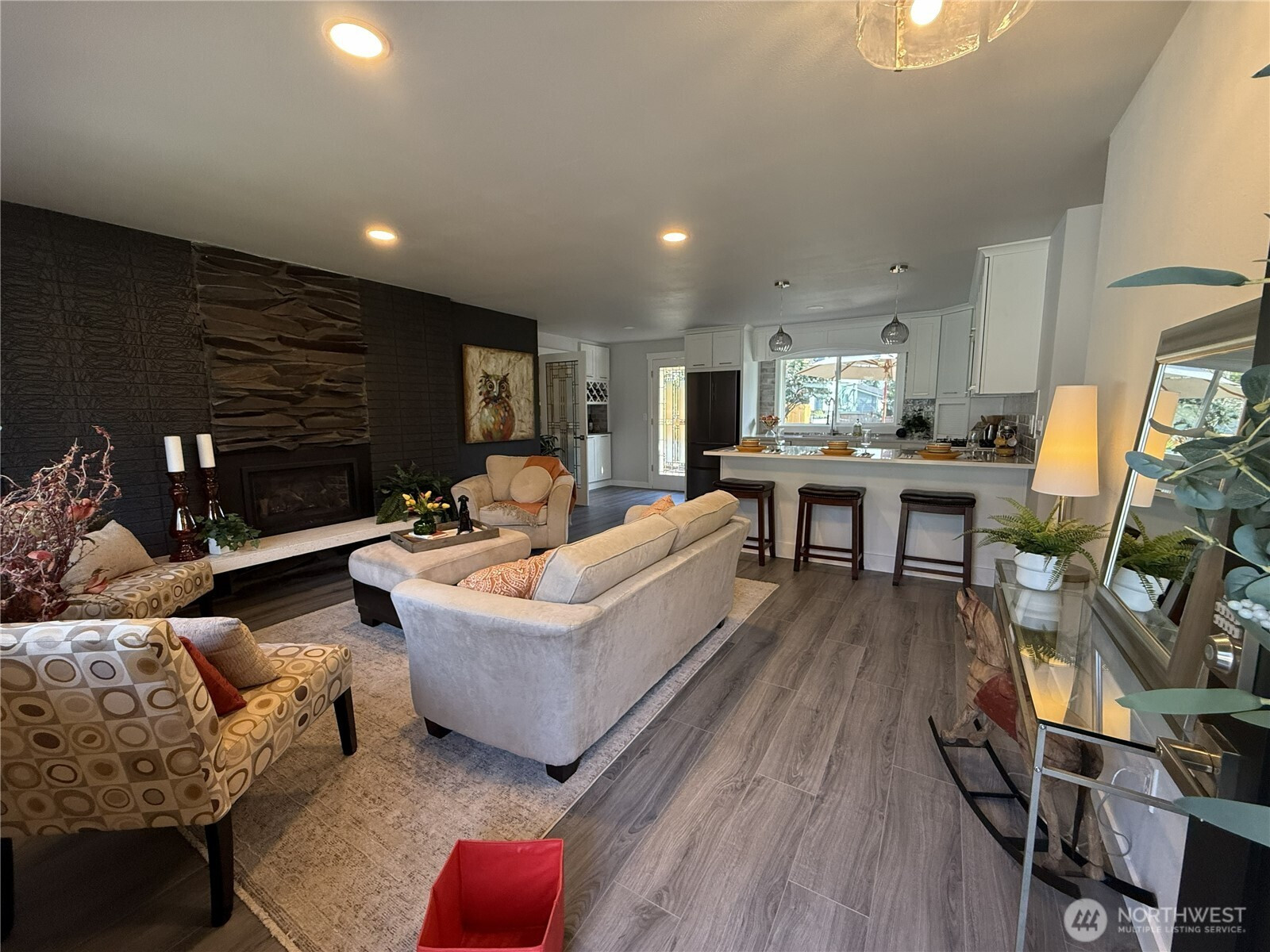 (650)533-3259Located in Bothell’s desirable Hilltop neighborhood, this fully remodeled rambler combines modern style with everyday comfort. The updated kitchen features sleek cabinetry, quartz countertops, and high-end appliances, creating a space that’s both functional and stylish. The bright, spacious family room features a cozy gas fireplace, abundant natural light, and a glass door that opens to a large deck—perfect for entertaining. Situated on a generous lot, the fully fenced backyard offers privacy and ample space, with the potential to add a DADU. The beautifully maintained landscaping enhances the home’s inviting curb appeal. Inside, you’ll find durable hardwood-style flooring throughout, a primary bedroom with a three-quarter bath, and an additional full bathroom—both thoughtfully renovated. The family room’s gas fireplace is highlighted by a custom basalt rock-and-brick accent wall, adding warmth and character. Additional features include a fully drywalled one-car garage, offering flexibility for conversion into a home office, gym, or creative space. Ideally located near I-405, Canyon Park, and Lynnwood, this home provides convenient access to shopping, dining, and commuting routes. Whether you're a first-time buyer, looking to downsize, or in need of a flexible living space, this Bothell home is ready to meet your needs. Schedule a visit and see it for yourself!