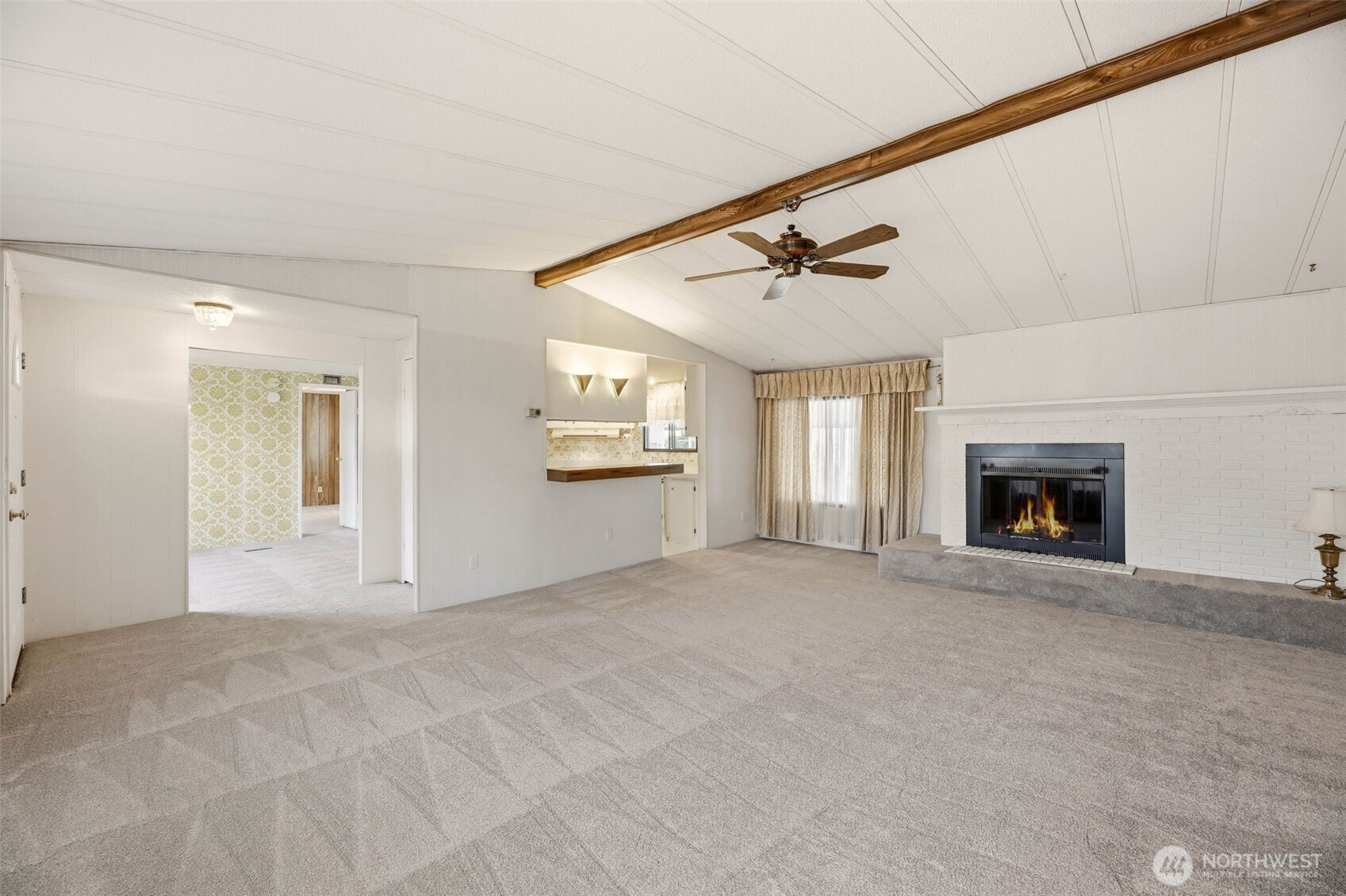 (650)533-3259Welcome to this desirable 55+ community offering a relaxed, low-maintenance lifestyle. This spacious home features 2 beds plus an office, 2 full baths, dining room, and a large family room with a cozy fireplace—perfect for gatherings or quiet evenings at home. The home blends charming vintage details with thoughtful updates, including new carpet and vinyl flooring throughout.Step outside to a covered front deck, ideal for enjoying your morning coffee or chatting with neighbors. There’s also extra storage off the carport for added convenience. Enjoy great amenities, including a clubhouse and pool, while living close to public transit, grocery stores, and everyday conveniences. Bring your design ideas and make this charming home yours today!