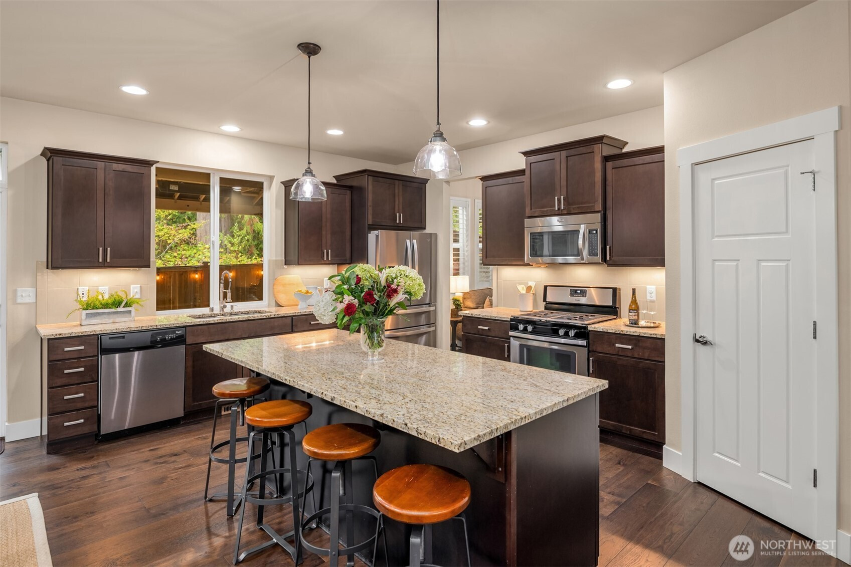 (650)533-3259This spacious 3-BR, 2.5-BA turnkey property in Timberwood Ridge offers classic charm w/ modern comfort. The open-concept main floor features an inviting family room with cozy fireplace, a well-appointed kitchen, & dining area — perfect for entertaining. You'll also find a large den ideal for WFH & an add'l flex room off the kitchen that can be used as a formal dining room, living room, or playroom. Enjoy the private fenced back patio complete w/ gas fire pit or relax on the front balcony w/ scenic territorial views. Upstairs 3 generously sized bedrooms, incl an expansive primary suite w/ fireplace, a luxurious 5-piece bath, & a versatile flex space. Other highlights incl. a 3-car garage w/ ample space for storage, & home gym. Mukilteo SD.
