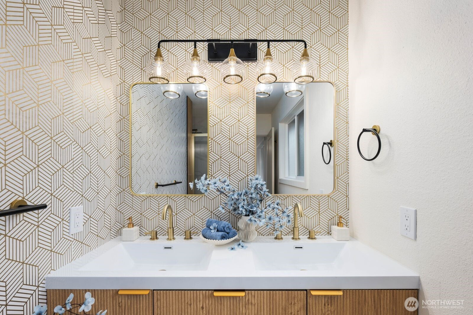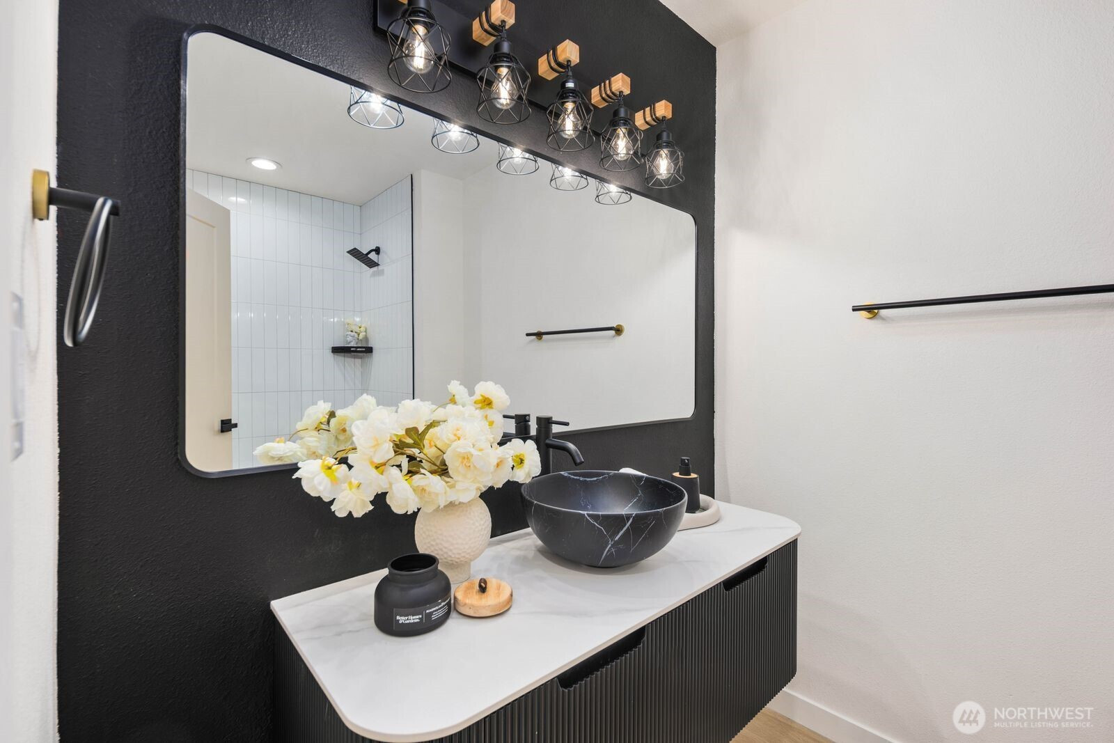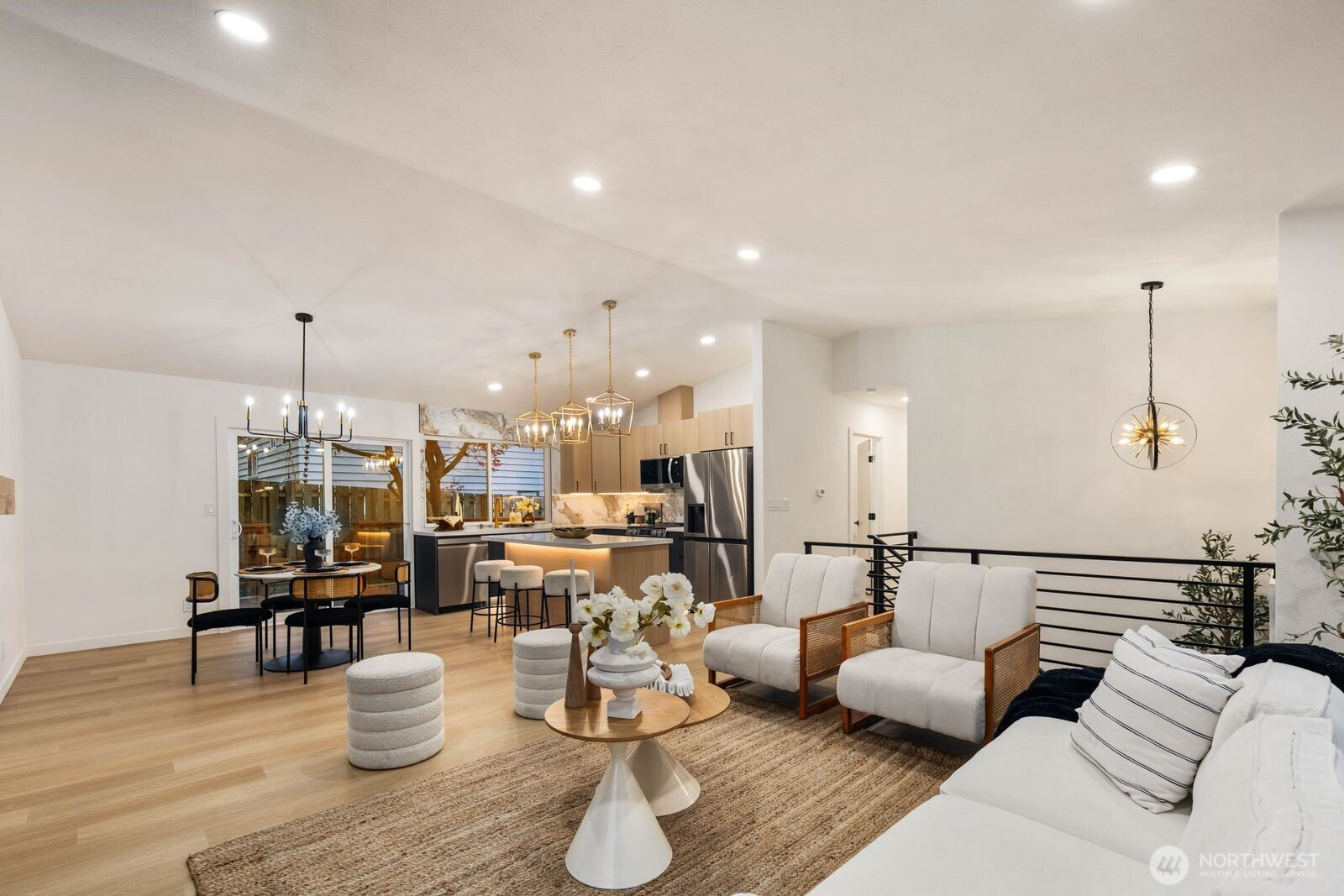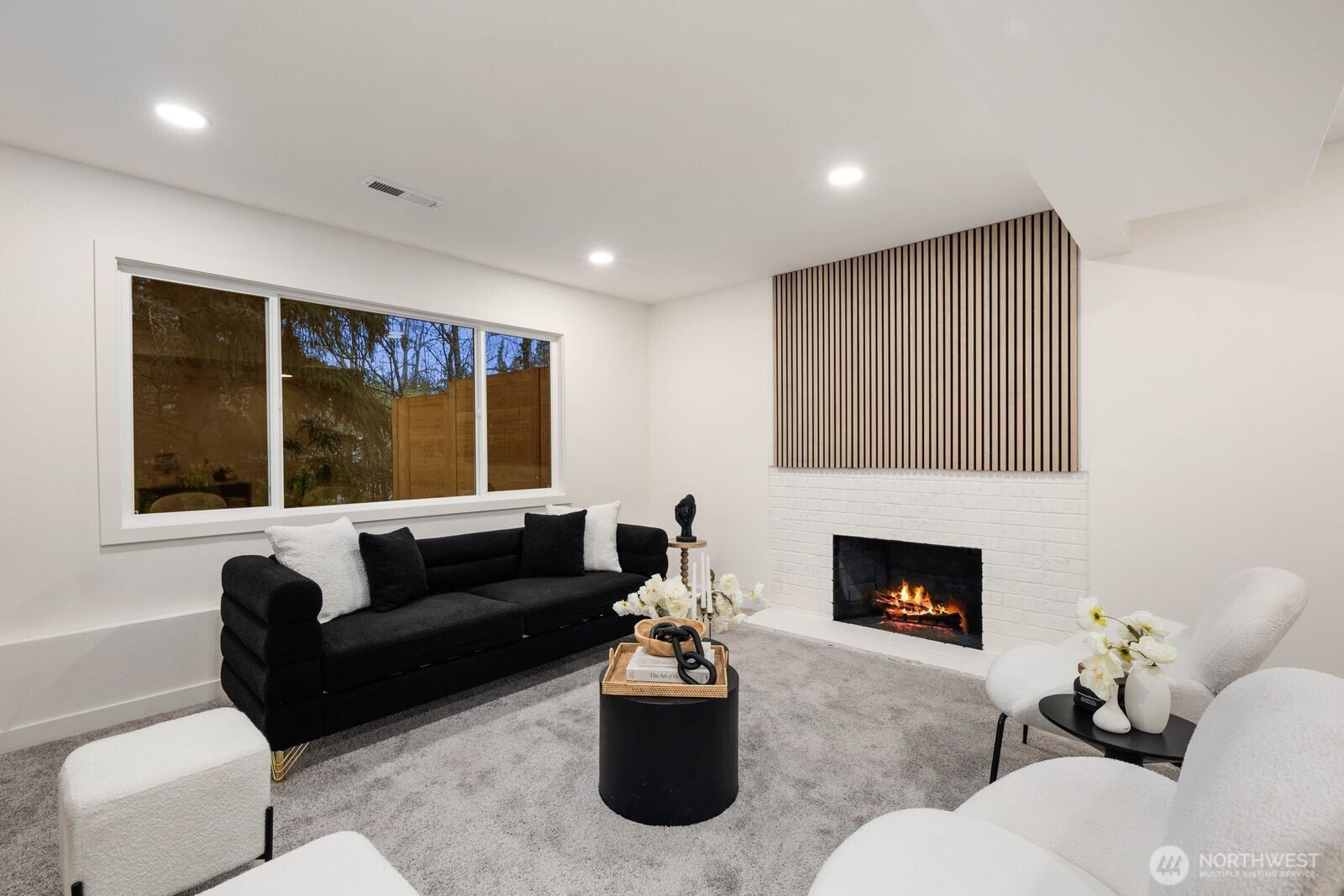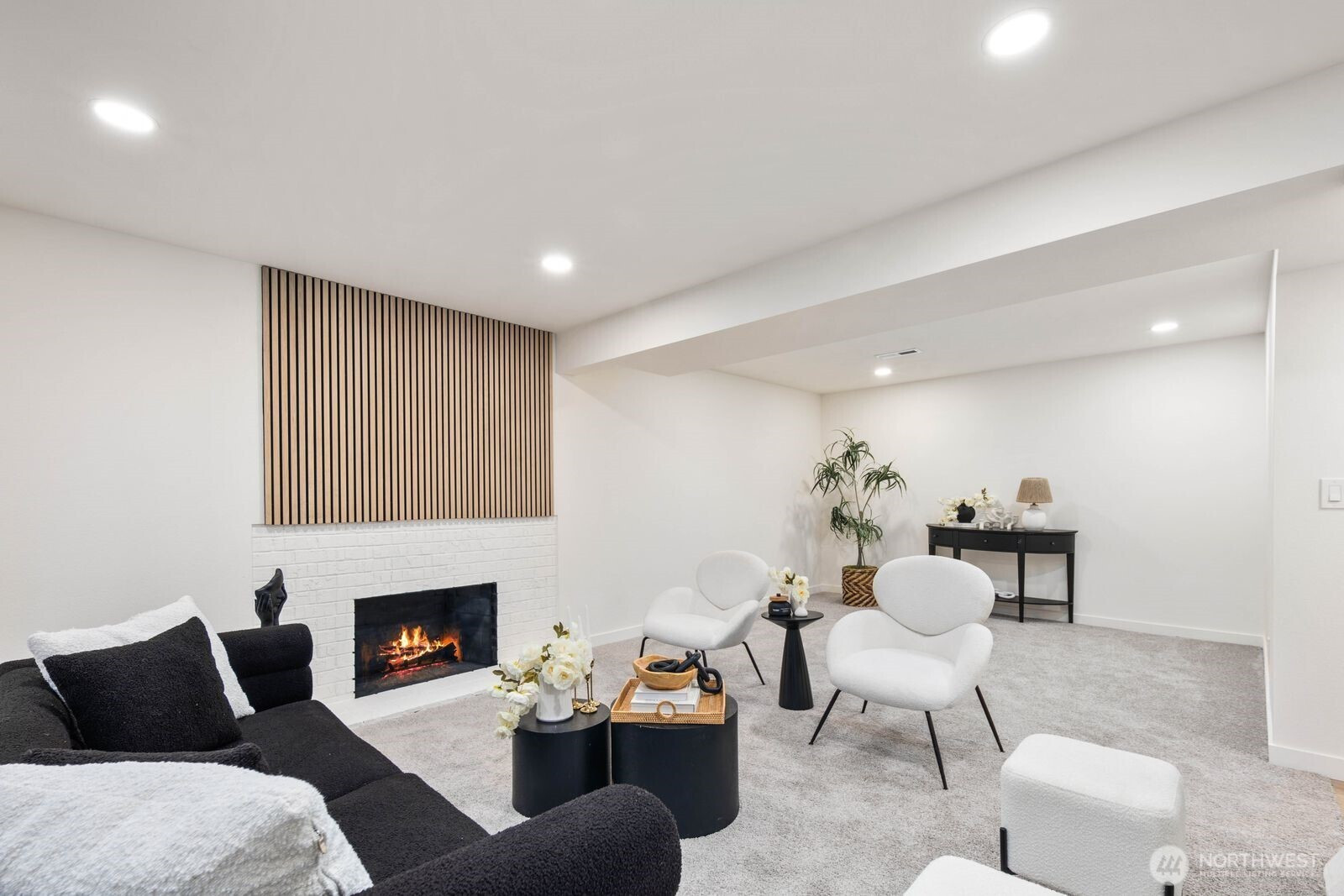 (650)533-3259Fully reimagined from top to bottom, this Edmonds home is a study in modern design and quality craftsmanship. A striking charcoal exterior with warm wood accents and fresh landscaping sets the tone from the moment you arrive, situated on a quiet street with mature tree coverage. Inside, the open concept main level unfolds with intention. Vaulted ceilings frame a dramatic fireplace with a black brick surround and warm wood accent detail, while the remodeled kitchen delivers marble backsplash, gold pendant lighting, stainless appliances, and a statement island built for gathering. The dining area flows naturally from the kitchen, completing a main floor designed for both everyday living and entertaining. The lower level adds a second living space anchored by its own fireplace and a slatted wood accent wall, offering flexibility for a media room, guest suite, or lounge. The primary suite is a true standout, and every updated bathroom throughout reflects a designer touch, from geometric wallpaper and gold fixtures to floating vanities and glass-enclosed showers. An epoxy-coated two-car garage, entertainer's deck, and fully fenced yard complete the picture. Minutes from downtown Edmonds, the waterfront, and everyday conveniences — this is the one that stands out.