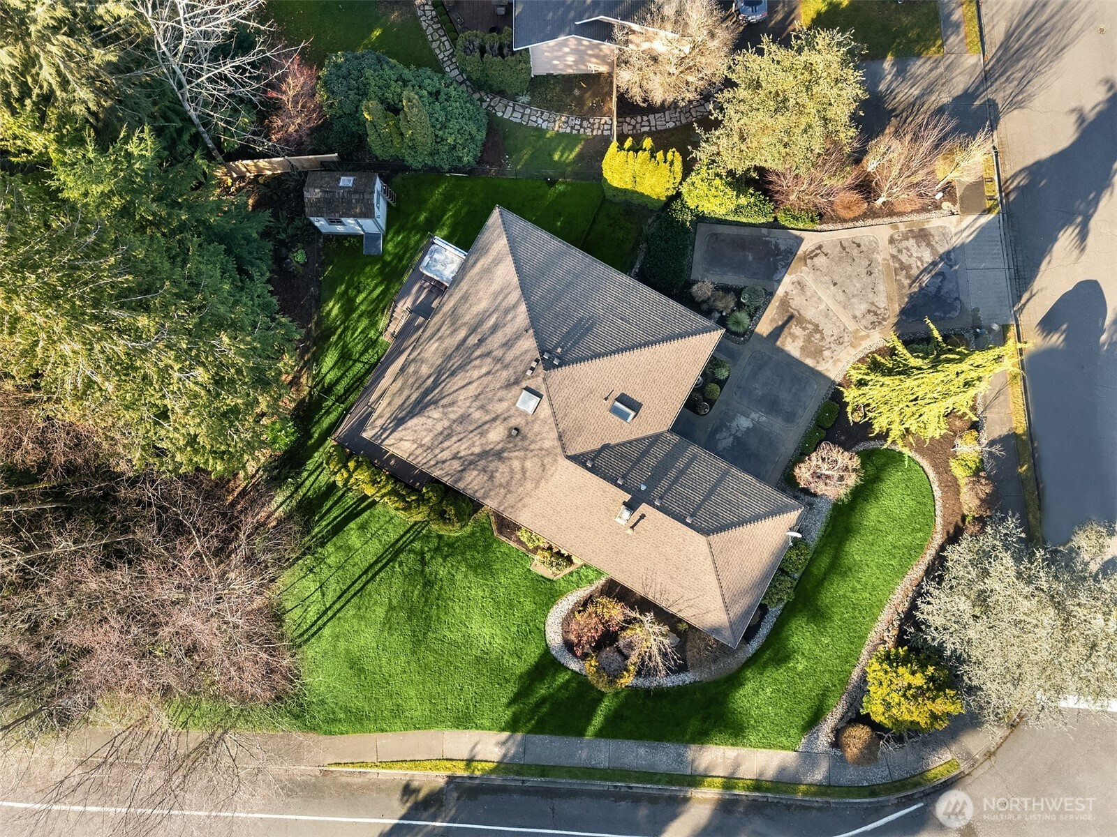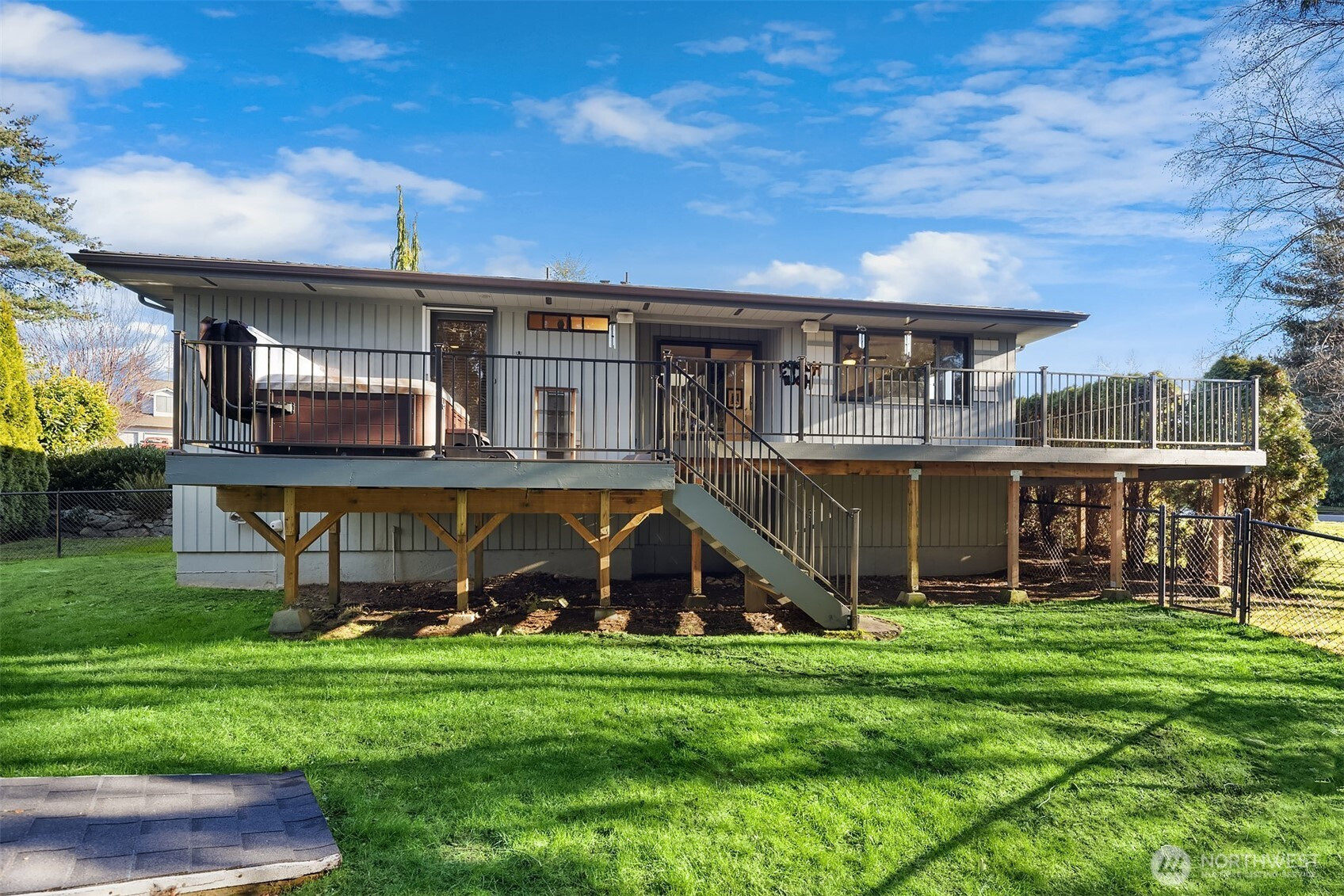 (650)533-3259Lovely corner lot, 3 bed/2 bath rm rambler in Bayview Ridge that boasts a huge lot with a seasonal creek running behind it giving a very private and serene setting. The living space is open and bright, with beautiful wood framed windows and skylights letting in the natural light. Lighted wrap around deck, perfect for entertaining, that looks onto the private, fenced back yard. The home is tastefully decorated with a neutral paint pallet that brings warmth and invitation to comfort. Enjoy a soak in the hot tub that is just off the Primary Bed rm. that has its own door for privacy. Soaking tub and full sized shower in the primary Bd Rm. Tons of parking on the newer driveway for friends and gatherings . Brand new carpet in the 3 bed rms. This neighborhood has nice sidewalks and a wonderful paved walking trail called The Bayview Trail just 3 houses up the hill. Kitchen has a huge skylight and one in the entry. There are pull outs in the lower kit cabinets, SS appliances and cork backed flooring throughout the kitchen and living space. Newer in the last 10 yrs., roof, decking, flooring, lighted deck rails, driveway, AC unit, furnace, hot water tank, carpet and granite eating bar with hutch. Large shed in the backyard and easy to maintain landscaping. Side door to the huge stand up crawl space for great storage. This home has a wonderful vibe of warmth and comfort, we think you will like it. GREAT place to live , experience the enjoyment + lifestyle this home can have for you.