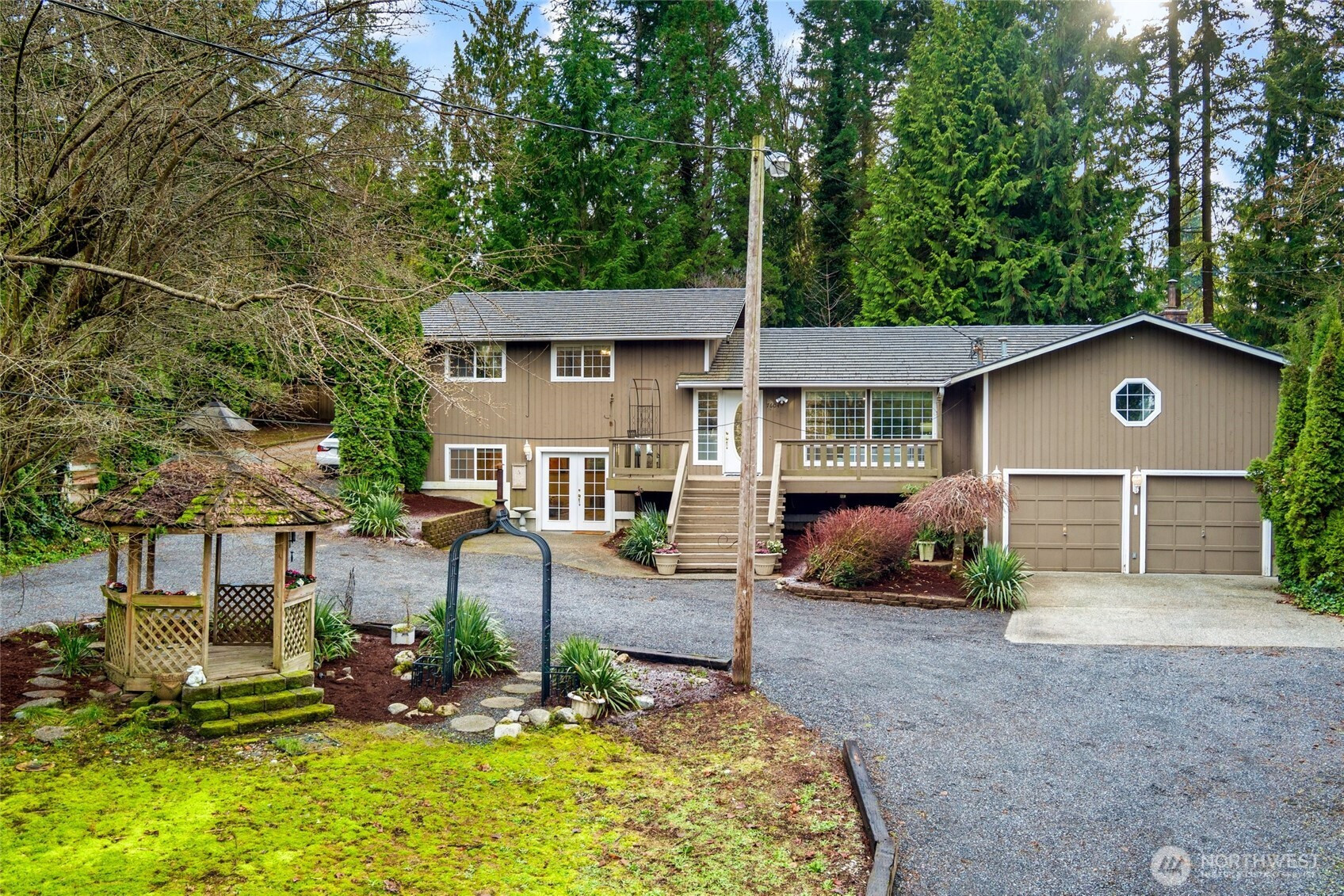 (650)533-3259Welcome to your private retreat in the desirable Maltby area of South Snohomish. Set on a peaceful 1.20+ acre lot, this home offers the ideal blend of space, privacy, and convenience—perfect for those seeking a larger lot without sacrificing proximity to town. Inside, enjoy a traditional and functional floor plan with a seamless flow throughout. The spacious living room is ideal for entertaining or relaxing evenings at home. The nicely updated kitchen features newer cabinetry, quartz countertops, and an industrial-style gas range, opening to the family room for easy everyday living. French doors lead to an expansive entertainment deck, creating a perfect indoor-outdoor connection for gatherings, summer barbecues, or quiet enjoyment of the surrounding natural setting. The upper level offers three generously sized bedrooms and two full bathrooms, including a primary suite with a private ensuite bath. The lower-level rec room provides excellent flexibility for game nights, movie nights, a home office, or guest suite, complete with a full five-piece bathroom for added comfort and privacy. The large garage includes an overhead storage platform for easy access to seasonal or recreational gear, plus an additional storage room behind the garage—ideal for tools, hobbies, or extra workspace. Located just minutes from Historic Downtown Snohomish, a short drive to Woodinville, and with quick access to Hwy 9 and I-405, this home offers peaceful living with everyday convenience.