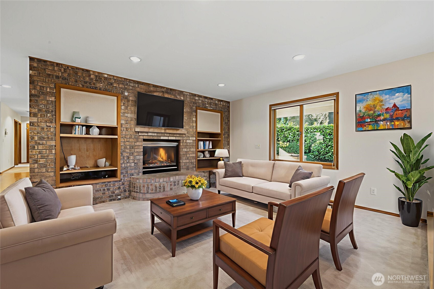 (650)533-3259Stately and timeless brick upscale rambler design with more to offer! Enjoy over 1/4 acre of manicured grounds surrounded by nature on a quiet cul-de-sac just moments from everything! East-facing windows draw in soft morning sun & fantastic natural light while trees all around provide dappled shade in the summertime. Life flows easily through the functional, open layout w/ maple hardwood floors, Andersen windows, efficient cellular shades & a cozy gas fireplace surrounded by built-ins & a custom brick mantle. Hosting & entertaining is a breeze between the formal dining room & the roomy kitchen, equipped w/ gas cooking, maple cabinetry, an island w/ bar seats & a spacious eating nook w/ a peekaboo Puget Sound view. Versatile layout w/ 4 large bedrooms, including a king-sized primary boasting dual closets & an en suite w/ heated floors & a jetted tub. Upstairs, a large & light-filled bonus room offers endless possibility: a home office, theater, 5th bedroom, play area, or whatever else you can imagine! The covered patio overlooks the lush, private backyard, mature fruit trees & ample space for pets, play & addl gardens (kept happily watered by a 7-zone sprinkler system). Attached 2-car garage w/ custom redwood doors includes a shop space & storage room for all your projects, gear & hobbies. Quiet & private, yet you're just moments away from well-rated schools, beaches, dining & all the amenities of both Lynnwood & Edmonds.