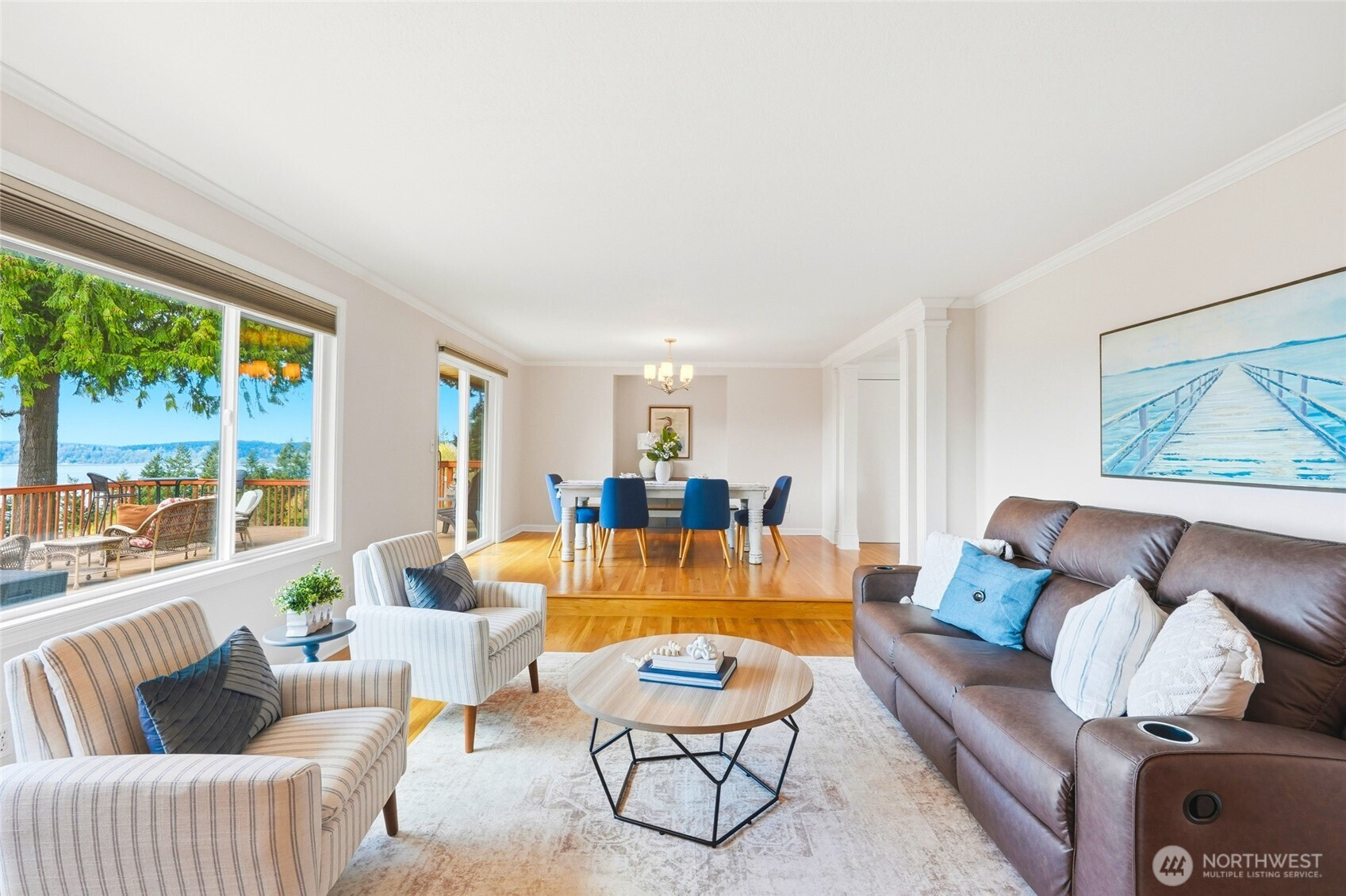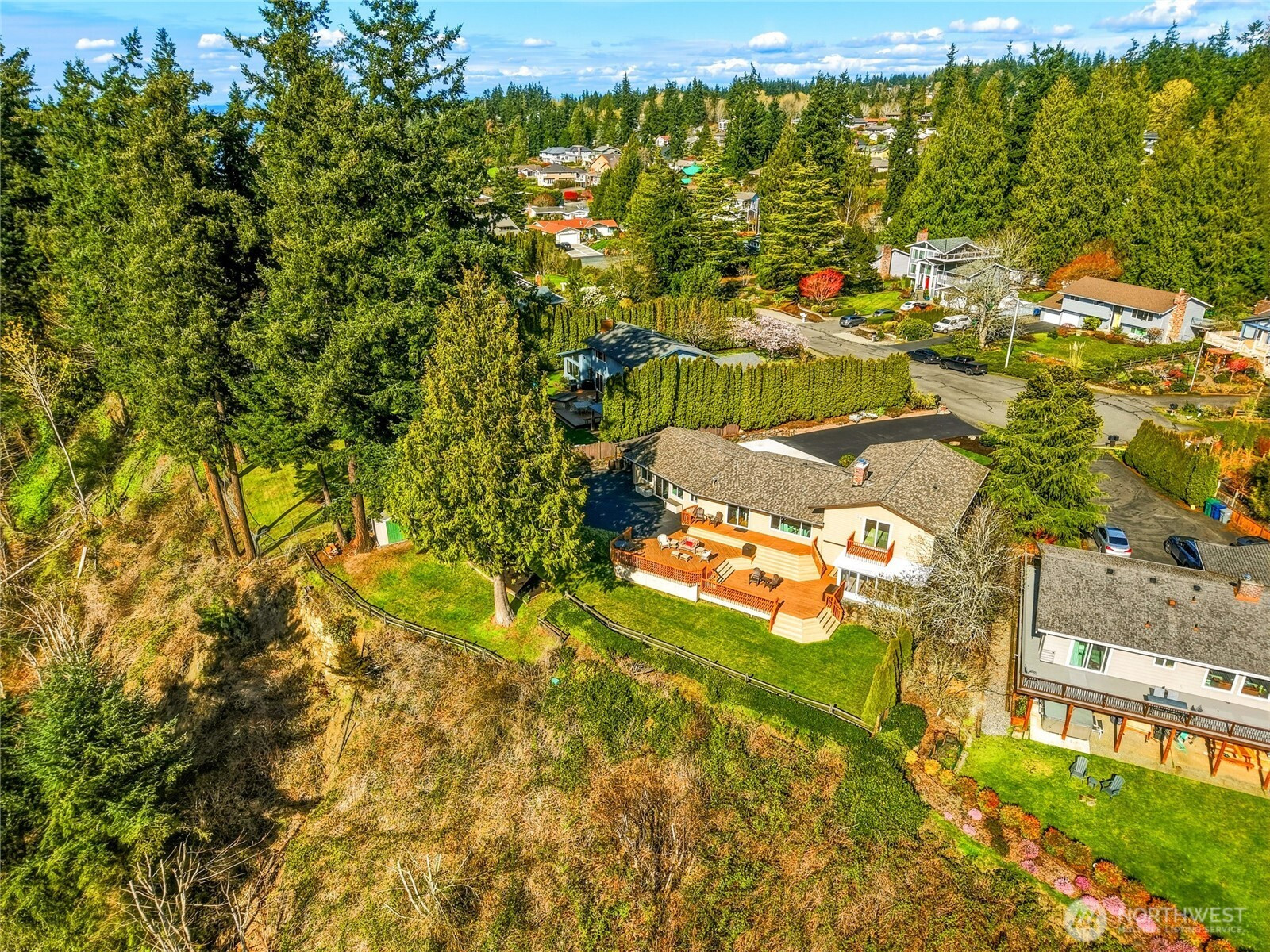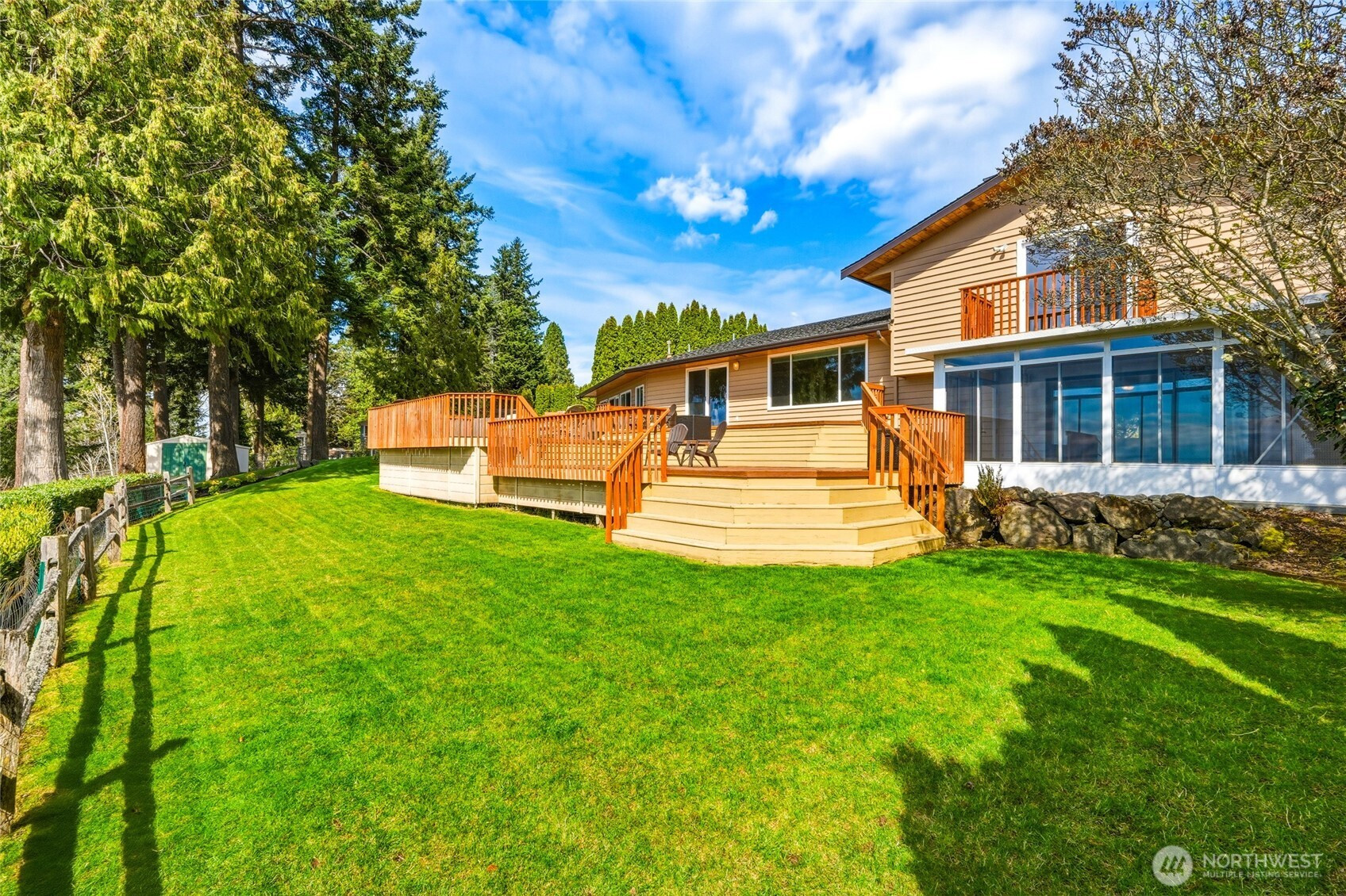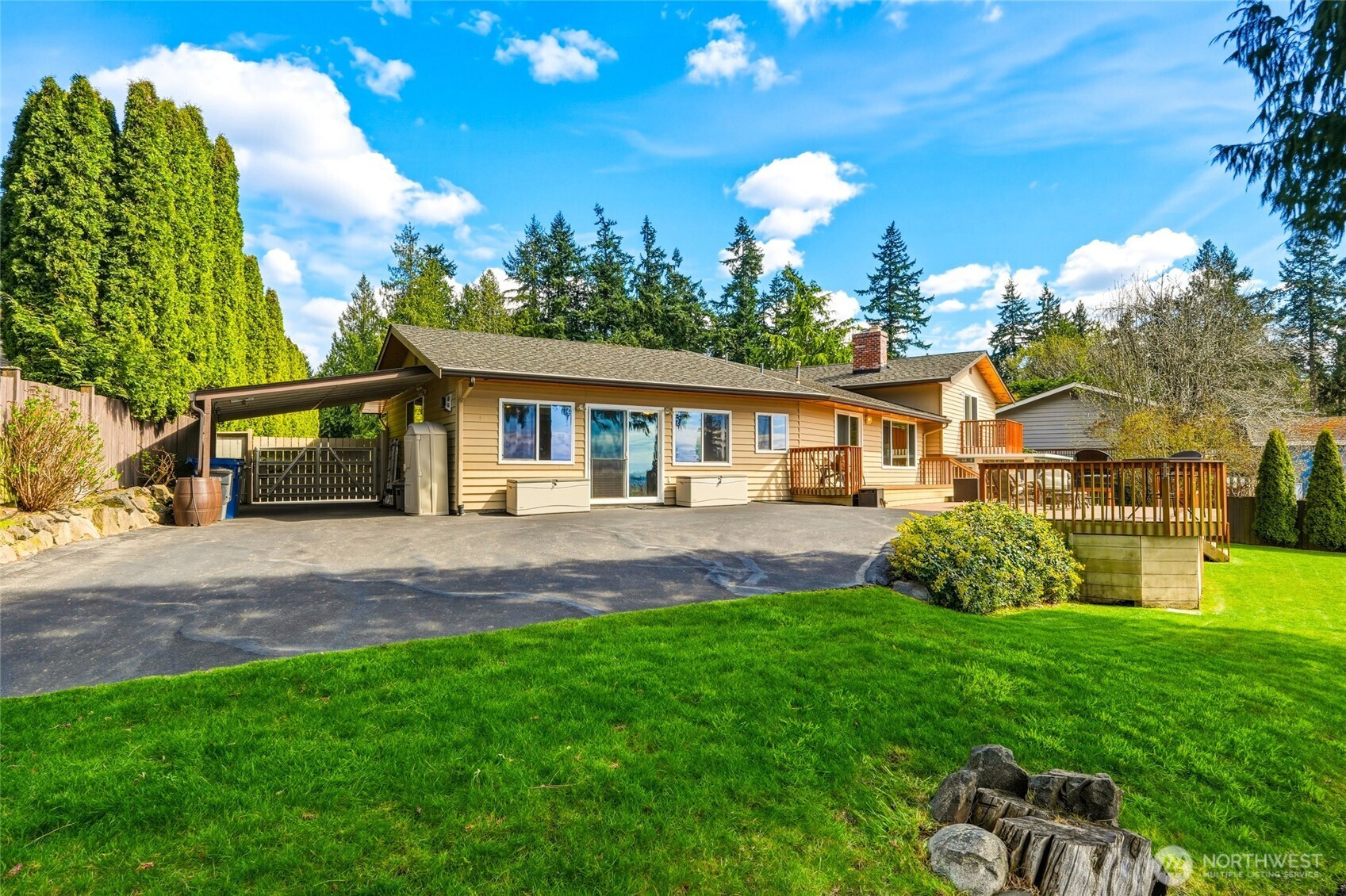 (650)533-3259Discover a rare blend of luxury, privacy, and unforgettable Northwest beauty in this exceptional 4 bedroom, 3 bath view home set on a sprawling .76 acre lot. Tucked away on a quiet dead-end cul-de-sac in the highly sought-after Mukilteo School District, this remarkable property offers 2,356 square feet of thoughtfully designed living space framed by sweeping views of the Sound, the Olympic Mountains, and the southern tip of Whidbey Island. The beautifully updated kitchen is both stylish and functional, featuring newer cabinetry, quartz countertops, tiled backsplash, stainless appliances, gas cooktop, undermount stainless steel apron sink, and a moveable island ready for everyday living or effortless entertaining. The primary suite is a true retreat with a private bath and its own veranda deck where the views steal the show. Downstairs, a spacious second primary suite offers ideal flexibility for guests or multi-generational living, alongside a bathroom with laundry and a generous bonus room with gas fireplace and access to the attached sun room. Outdoor living shines with a multi-tiered entertainment deck, fully fenced grounds for your furry friends, large level driveway, and RV parking. A fully finished 575 sq ft garage, Presidential 50-year roof, gas furnace, gas fireplaces, gas hot water tank, pre-inspection already completed, and an incredible setting combine to create a home that is as impressive as it is inviting.