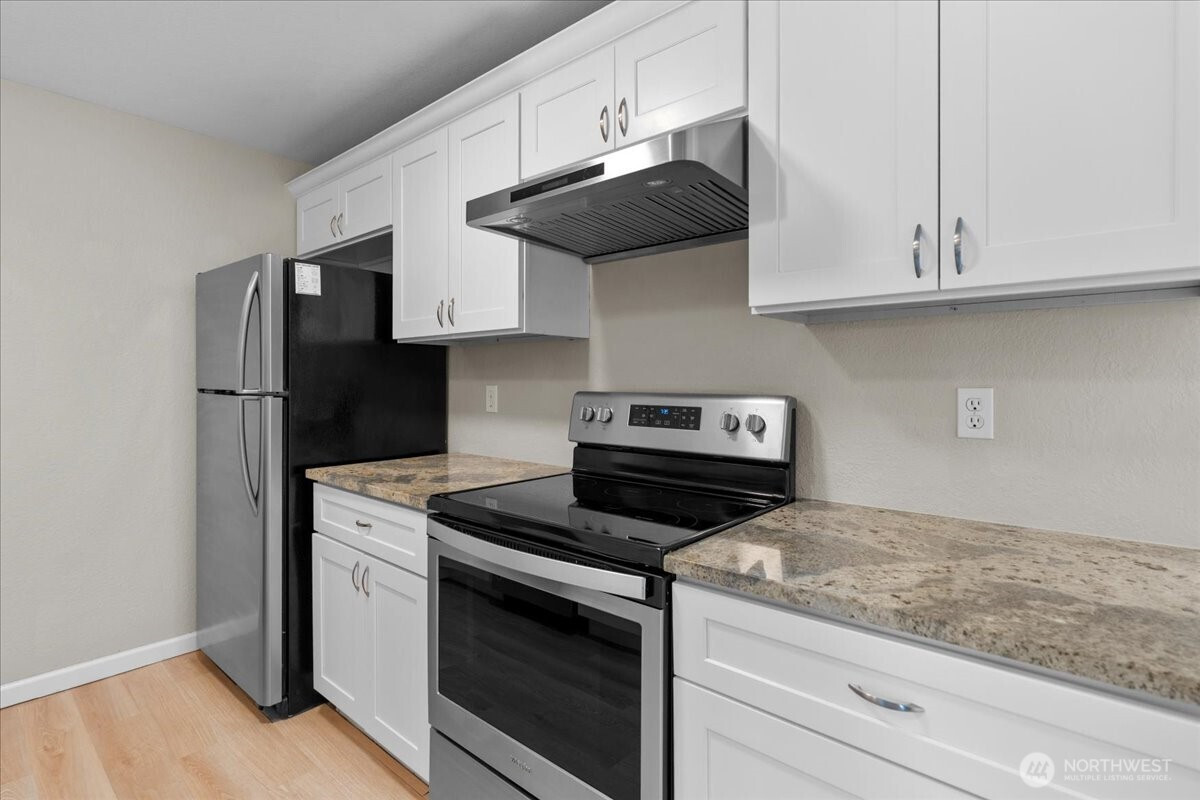 (650)533-32592/1 INTEREST RATE BUY-DOWN OR CLOSING COST CREDIT W/PREFERRED LENDER. Step into this stunning top-floor beautifully renovated condo in the gated Holly 100 community! Enjoy a light-filled, open layout with 2 spacious bedrooms, each connected to its own full bath. The refreshed kitchen showcases crisp white cabinetry, granite countertops, stainless steel appliances, and a dedicated stove vent hood. Unwind on your private patio, ideal for outdoor seating and a convenient extra storage closet. In-unit laundry room with washer and dryer included. Lots of interior storage in this condo! Brand new roof installed in 2025. Enjoy the peace of mind of a gated entrance, covered parking, plenty of guest parking, and a beautifully maintained community green space. HOA dues cover water, sewer, garbage, and exterior maintenance -- no special assessments. Perfectly positioned just minutes from Boeing, Paine Field, I-5, local shopping, and nearby schools, this one truly has it all. A move-in-ready gem you won't want to pass up!