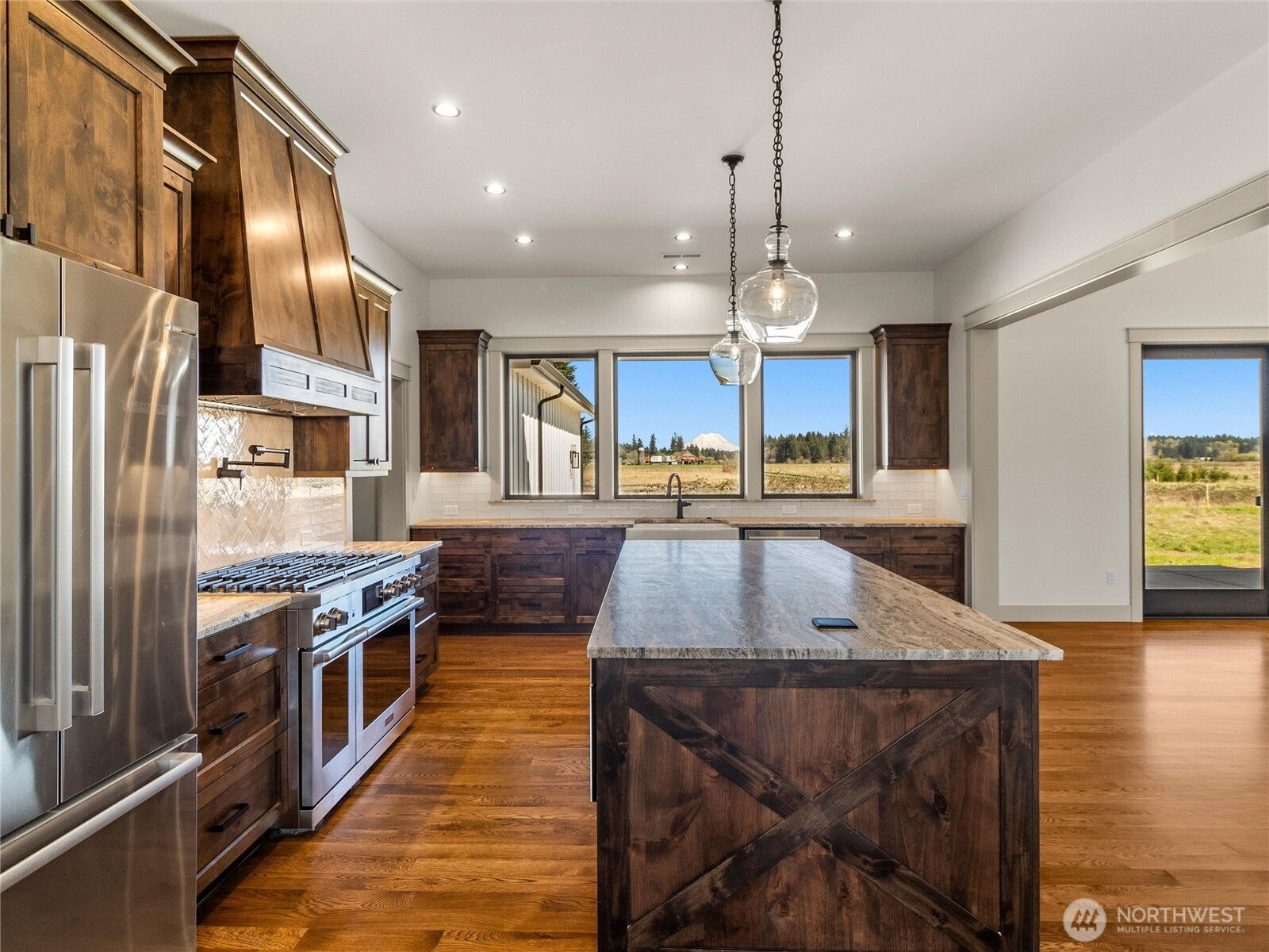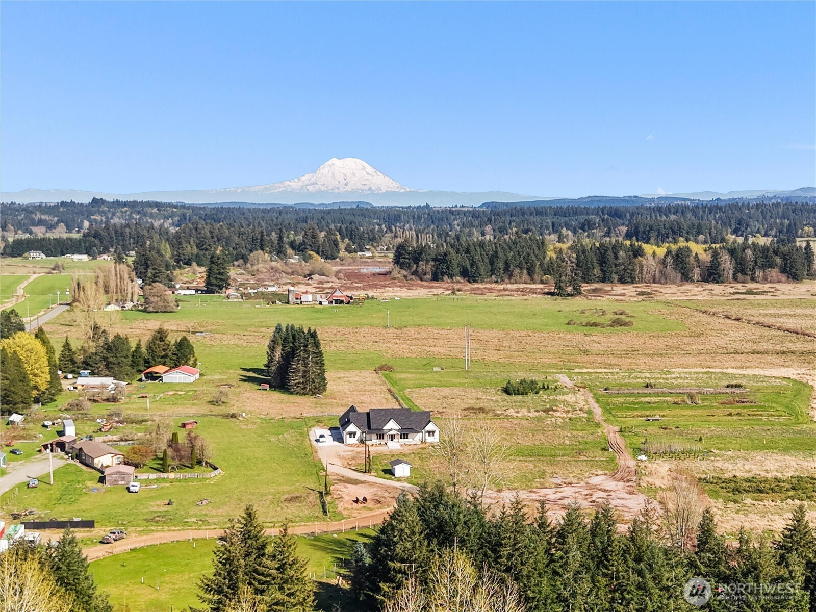 (650)533-3259GORGEOUS NEW NW CONTEMPORARY MT RAINIER VIEW HOME ON 19+ ACRES...!!! Long Private Driveway onto a quiet and private Estate-Like setting!!! Luxury High End Finishes throughout! Expansive Great Room with Wood Beam Trussing, Stone Fireplace, Vaulted Ceilings, Dual Sliders to huge Covered Patio! Hardwood flooring, Gourmet Kitchen, Office/Den with French Doors (obscured glazing), Primary Master with Vaulted Ceilings, Master Bath with Dual Entry Stone Showers, Sculpted Soaker Tub, huge Walk-In Closet ("California Closet"), Stacked Washer/Dryer. On-Demand Hot Water! 3 Bedrooms. Kitchen with Granite Slabs (Leather finish...), Farmer's Porcelain Sink, Under Counter Lighting, HUGE Walk-In Pantry, Second Laundry Room. Large Pump House for additional Storage! LANDSCAPING CREDIT: To Buyer $25,000!