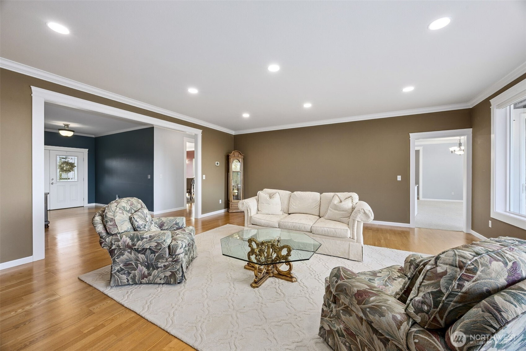 (650)533-3259Located in the highly desirable Field of Dreams neighborhood, this exceptional corner-lot home captures stunning views of Mt. Rainier and offers an impressive blend of comfort, elegance, and functionality. Inside, the home showcases 9-foot ceilings, rich hardwood flooring wood-wrapped windows, and crown molding. Bright, open living spaces are filled with natural light, complemented by a formal dining room with custom finishes and detailed wainscoting, plus a private office with French doors. The well-appointed kitchen is a chef’s dream, featuring granite countertops, custom cabinetry with custom crown molding, under-cabinet lighting, full-height tile backsplash, peninsula with beadboard accents, pantry, gas stove, stainless range hood, and wine fridge- All appliances convey. Retreat to the luxurious primary suite offering a walk-in closet with California-style built-ins and a spa-inspired 5-piece bath complete with ceramic tile flooring, tile shower surround, soaking tub, bidet & TV that stays. Two spacious guest bedrooms plus two guest bathrooms with tile flooring, and a spacious laundry room with washer & dryer, utility sink included. Enjoy the expansive TimberTech Reserve wraparound deck and covered porch, along with a fully fenced backyard with garden beds ft. Concord grapes and yellow plums- plus RainBird sprinkler system in front and back yards. Extra-large, deep crawl space for additional storage & wired for generator. 3 car garage & AC complete this home!