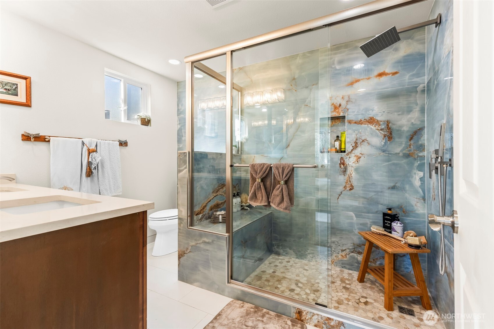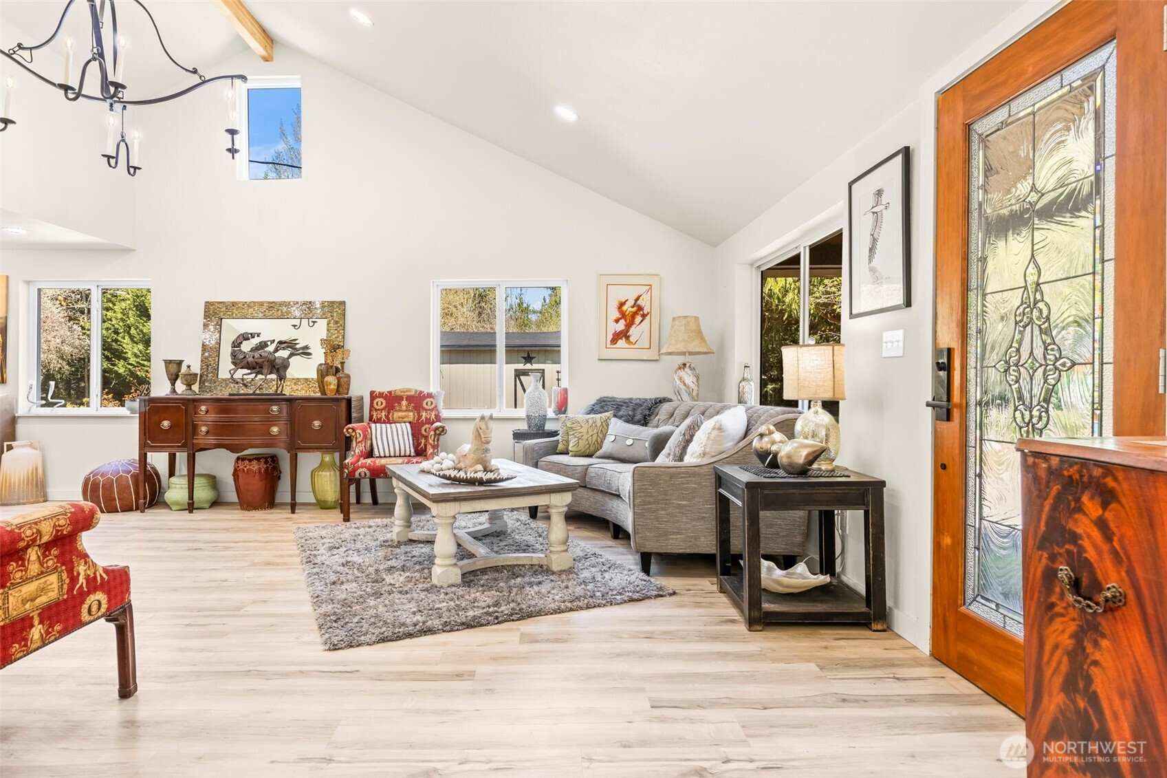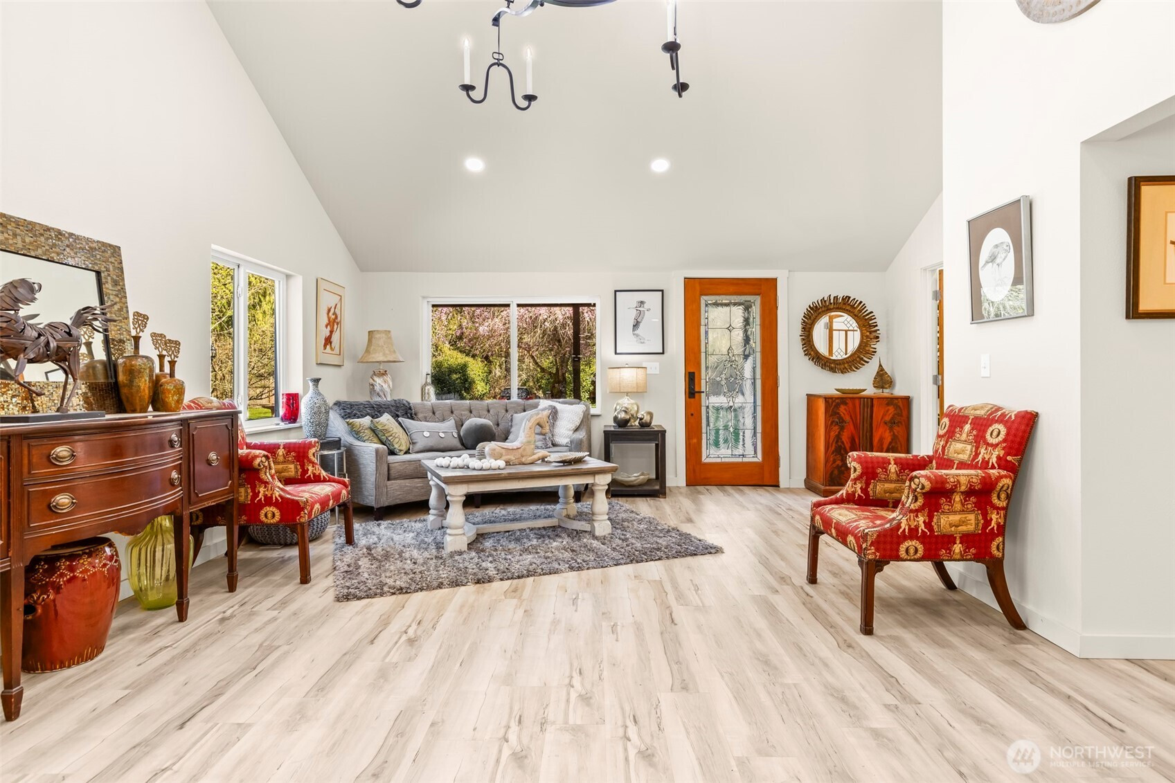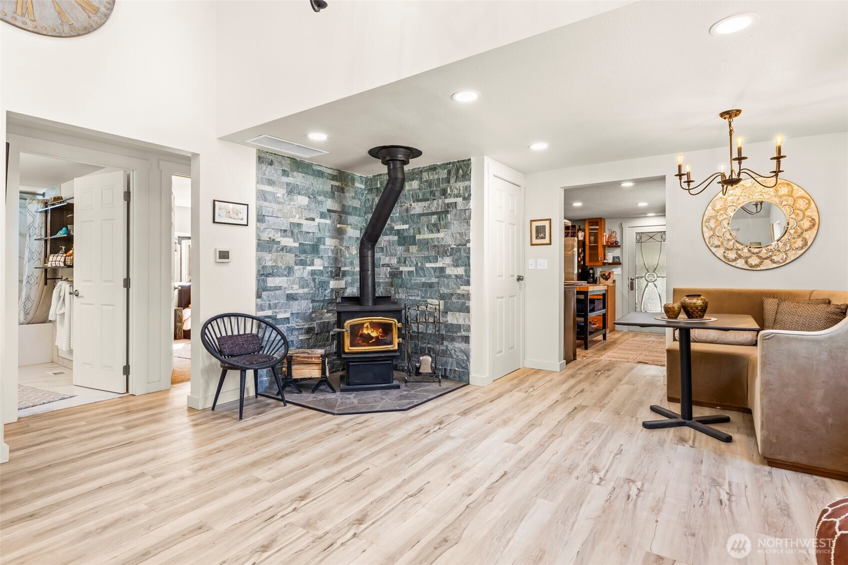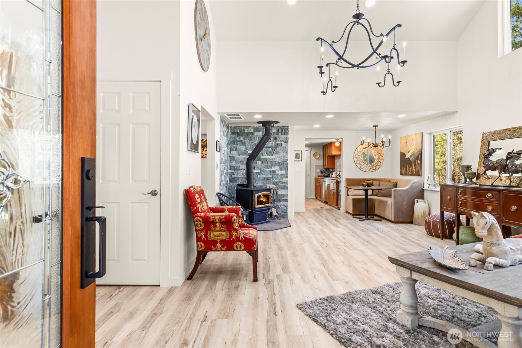 (650)533-3259Private Gated Nature Retreat in Yelm, shy of 5 acres! This 1750 sq ft 3 BD + Office/Den & 1.75 Bath Home blends modern comfort w/ refined farmstead living designed for self-sufficiency & off grid lifestyle flexibility! Vaulted interiors feature a striking stone backdrop w/ wood stove & beam, designer lighting & seamless flow to a wraparound deck immersed in nature. Spa-inspired primary bth with custom walk-in shower w/artisan tile. Property includes 1125 sq ft shop, finished barn with loft & ADU potential for 600 sq ft+ living space with pre-septic installed! Abundant pear, apple, Italian plum, cherry & kiwi fruit with black walnut/hazelnut trees! Back area cleared for pasture or ATV trails! Concrete tanks installed for future septic & 12,000-gallon water reserve tank, 5k gallon propane tank & new systems throughout. Set up for homesteading & back acreage is fenced for farm animals! If horse minded ~ an impressive finished barn w/ loft, built in hen house, and private fenced setting. This property is filled with opportunity, abundant fruit/nut trees, open spaces for animals and newly cleared areas for pasture. Gated lush surroundings & exceptional privacy create a rare legacy property!