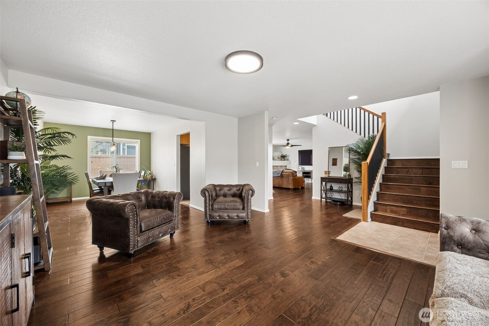 (650)533-3259Welcome to this beautifully upgraded former model home in the sought-after Meridian Campus at Hawks Prairie! Four spacious bedrooms with 2220 Square feet of space. Enjoy stunning engineered hardwood flooring throughout both levels, adding warmth and elegance to every room. The vaulted stairway with open rail accents creates a spacious feel. The main floor offers a versatile formal living space alongside a dining area or home office—perfect for today’s lifestyle. The kitchen is both stylish and functional, featuring tile flooring, rich cherry cabinetry, stainless steel appliances, and a breakfast bar that opens to a cozy family room with a gas fireplace. Upstairs, all four bedrooms provide comfort and privacy, including a spacious primary suite with vaulted ceilings, a luxurious 5-piece bath with soaking tub, and a walk-in closet. Step outside to a fully fenced backyard with a patio for relaxing or entertaining. An irrigation system covers your front and back yard space for convenience with two raised garden beds. Stay cool all summer with central A/C. 2-car attached garage with laundry/mud room. Conveniently located near I-5, Tolmie State Park, Hawks Prairie shopping and dining, pickleball courts, and just 15 minutes to JBLM’s main gate. This home truly has it all!