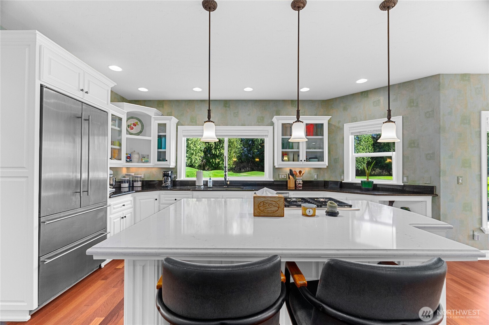 (650)533-3259Welcome to this exceptional custom home located on the 17th Green of private Indian Summer Golf & Country Club community, boasting scenic views of the golf course and nature preserve. Situated on a 1/3-acre lot with 3,437 square feet of living space, this home features newly refinished hardwood floors in the library, dining room, and living room, complemented by a striking wrought iron staircase. The gourmet kitchen offers golf course views, premium appliances, a Butler’s Pantry, wine cooler, granite and quartz countertops, and a walk-in pantry. The covered patio includes a stone water feature and professionally designed landscaping. The main floor provides a spacious primary suite, formal dining room, large den, marble-accented powder room, and library. Upstairs are two additional bedrooms and a loft TV area. Modern amenities such as integrated sound and security systems, central vacuum, a Kohler standby natural gas generator, extensive trim, and an oversized three-car garage complete this refined and comfortable residence.