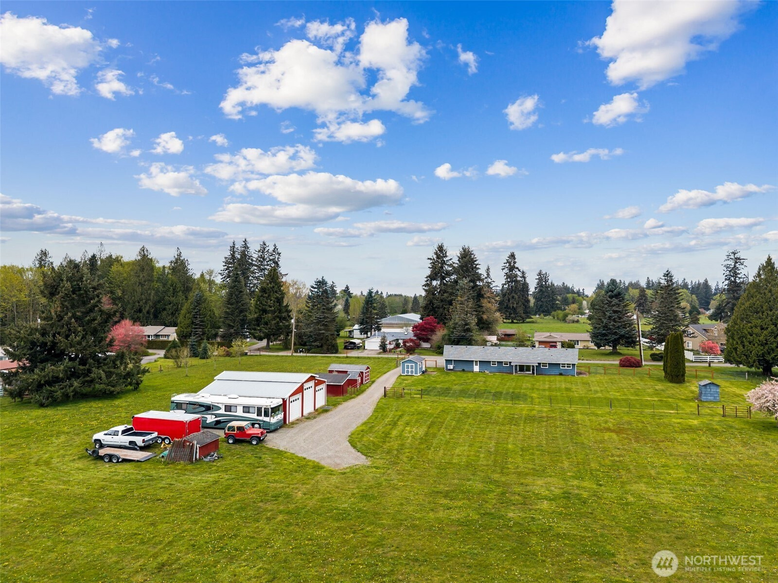 (650)533-3259Mid-century Rambler Soul with Mini-Estate Energy & $200k Upgrades! East-Olympia 1-story home on 4.81 acres blends warmth, function & a little bit of swagger, with gorgeous oak hardwoods, fresh bright interiors & a vintage stone fireplace with hearth spanning the full width of the living room. A $70,000 kitchen remodel brings serious upgrades & better floorplan flow, with Café and Bosch stainless appliance suite, white shaker cabinetry, counter-to-cabinet backsplash, pantry pull-outs, luxury vinyl tile floors & efficient galley design all overlooking pasture views. Newer heat pump with A/C & water heater, wired for generator & a roof just 5 yrs old add peace of mind while charming cedar siding keeps classic character intact. Covered back patio faces lush fenced lawn next to new gravel drive with parking leading to 6 animal-ready outbuildings including a 36x36 shop 3-bay barn with 9’ & 13’ insulated doors, new roof & floor, subpanel, 110V RV plug & room for storage, projects & more! Matching finished shed with covered porch & dog run may be the cutest workspace or potting retreat you’ve seen in a while. Gather at firepit under open skies & plan potential for future ADU options on the back of the lot surrounded by fruit & nut trees including apple, walnut, chestnut & others. Close to East Olympia Elementary School, near Chehalis Western Trail for biking or Lattin's Country Cider Mill for warm fritters & seasonal fun, with more shopping & services about 15 minutes away.