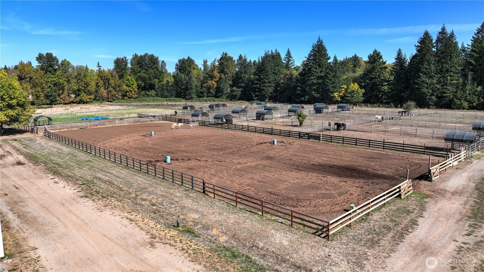 (650)533-3259Flying M Stables & Farm LLC! Olympia's legendary equestrian event & boarding facility conveniently located off I-5 between Portland & Seattle. This PNW icon is sited on 37+ level acres with a 220 X 100 indoor arena, 34 stalls total, 2 barns, 265 X 115 outdoor arena, 28 paddocks with shelters, 3 tack rooms, 1 feed room, hay storage, H&C wash rack vet/farrier bay combo, shavings bin, 1/2 mile track, cattle pens, round pen, hayfield, event office, 2 heated bathrooms, ample lighted parking for events, covered picnic area, 2-RV hook ups. The modest cozy home offers 3 beds, 1.5 baths, large deck with covered area, 1,088 sf detached garage with bonus upper level, lovely established grounds with fruit trees & loads of room for all the critters.