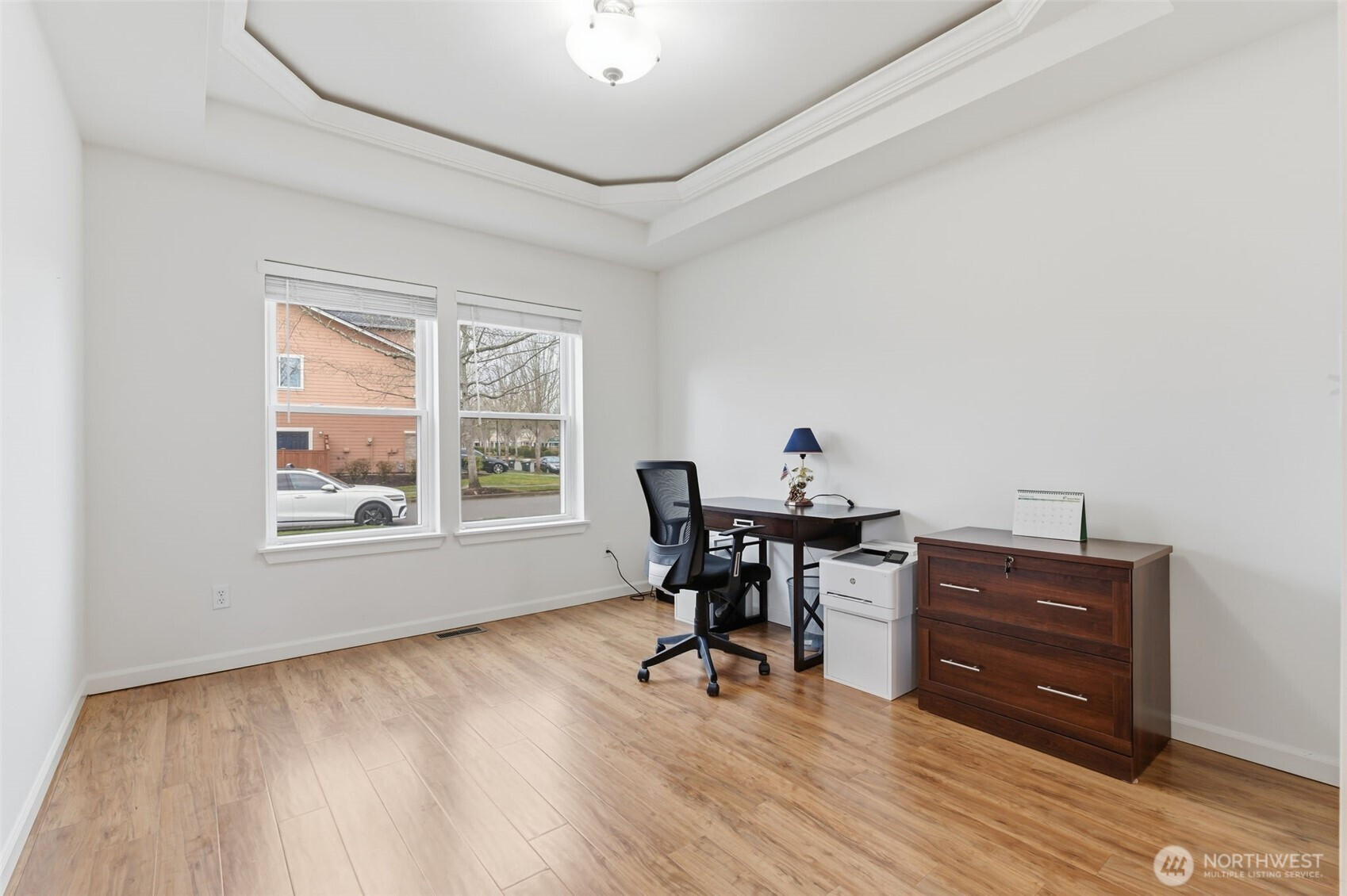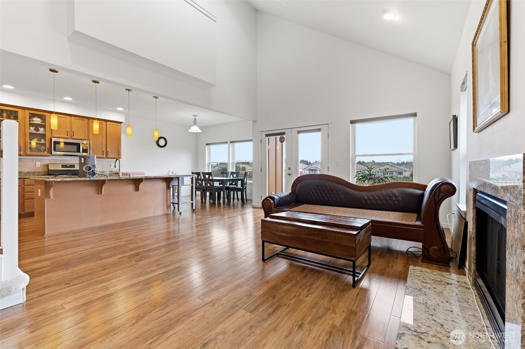 (650)533-3259Enjoy beautiful golf course views from this well appointed 3392 sq ft home. Three bedrooms + expansive loft and den. This elegant home has a grand foyer with high ceilings, white millwork and plenty of natural light. Fully fenced yard. Three car garage for parking and storage. The spacious main floor primary suite features a large custom-made walk-in closet and convenient access to the back yard. The primary bath has a granite countertop and a double vanity for added convenience. The main level showcases engineered hardwood flooring in most of the living areas, adding warmth and durability. The kitchen is designed for everyday living and entertaining, with granite countertops, a butler’s pantry with glass-front cabinets and newer stainless steel appliances. The kitchen opens to the family room where you can relax beside a granite-surround electric fireplace. All three bathrooms include heated tile floors for year-round comfort. Central air conditioning keeps the home comfortable during the summer months. Almost all windows are triple pane for energy efficiency. The front yard has a sprinkler system and the HOA maintains the front yard. This home offers the perfect blend of comfort and style in a prime location. Close to schools, parks, shopping, golf courses and JBLM. Don’t miss this opportunity!