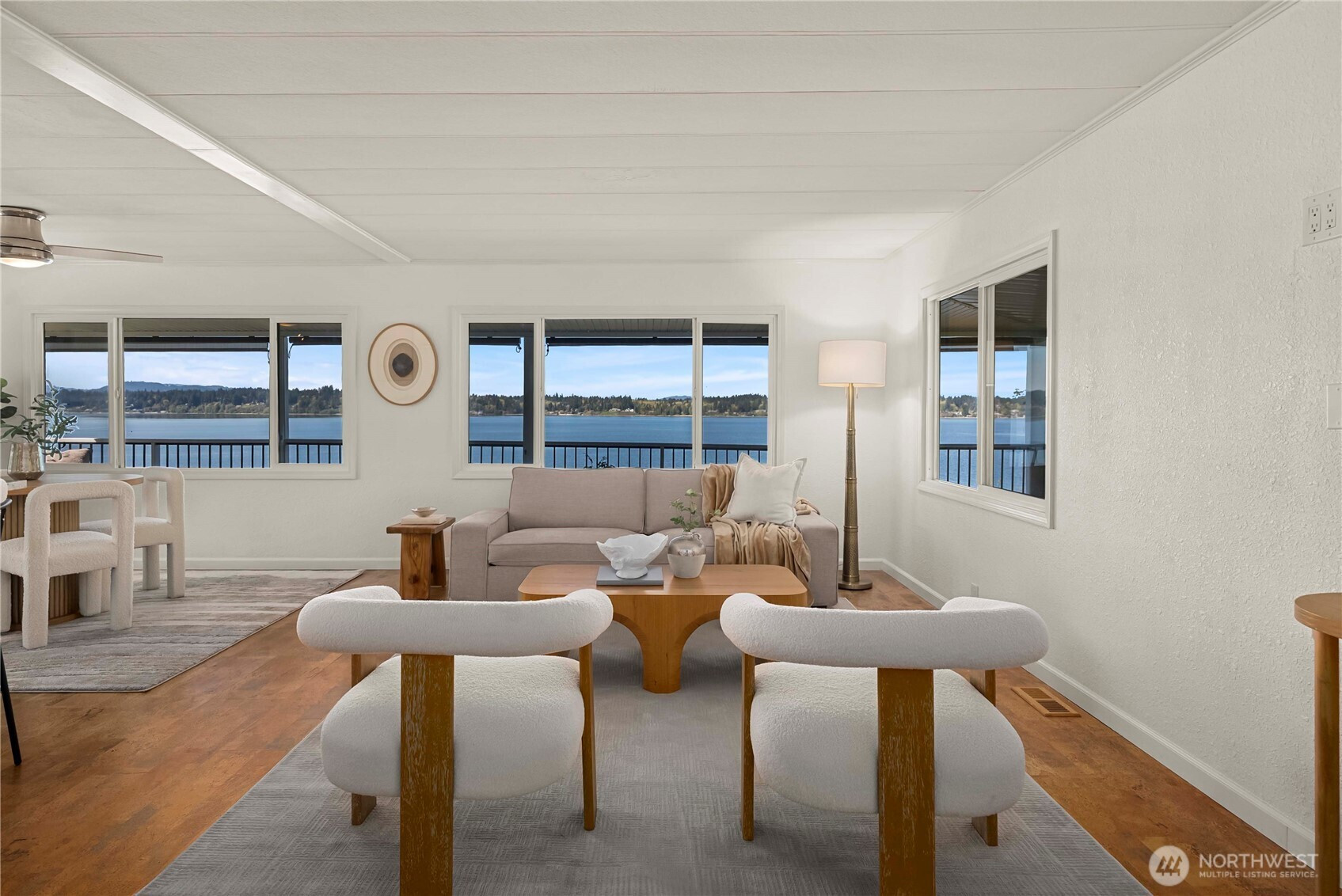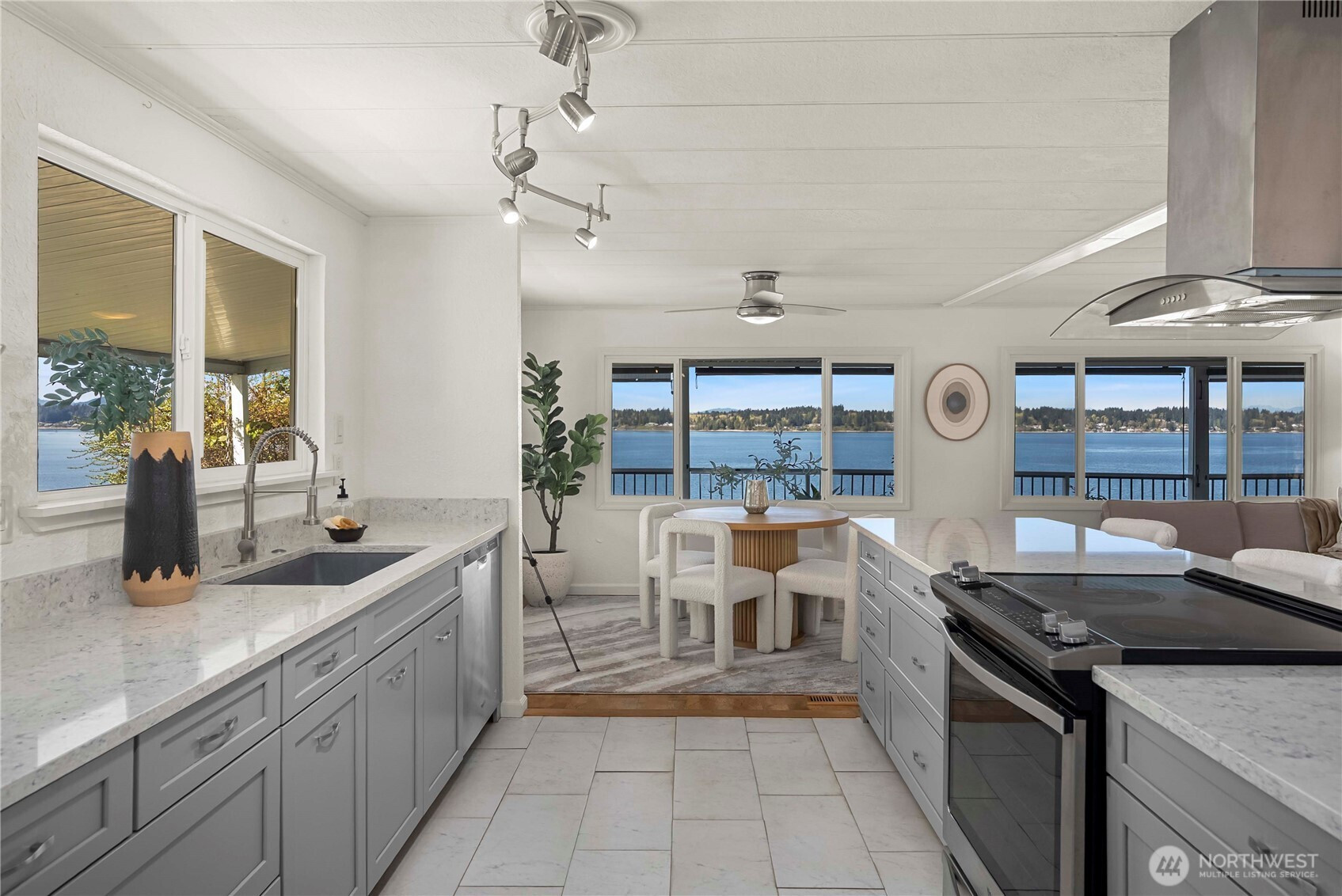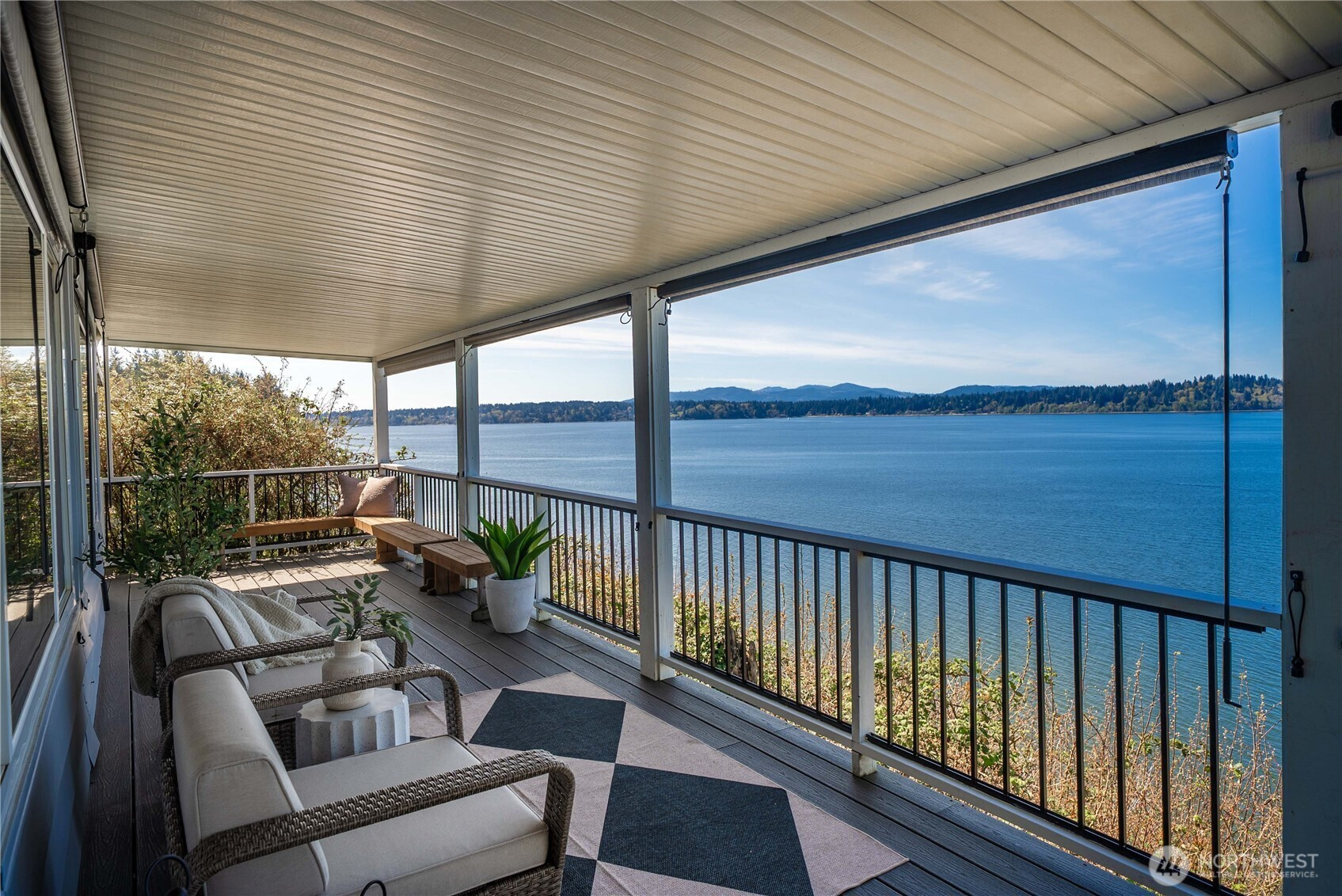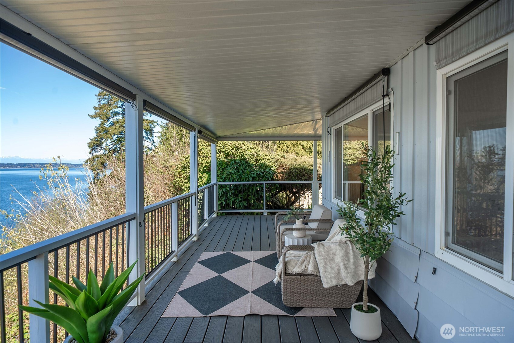 (650)533-3259Imagine waking up to sunrises over the water, spending your mornings on the wraparound deck, and ending your day with glowing sunsets from your living room. Inside, the open-concept layout is filled with natural light and designed to cook, dine, and relax—all with breathtaking Puget Sound & Olympic Mountain views as your backdrop. Custom remodeled kitchen features an oversized island with seating, granite countertops, stainless steel appliances, deep drawers, and a walk-in pantry. A flexible office/den also captures the view, while the spacious guest bedroom and full bath provide comfort for visitors. The primary suite offers dual closets, including a large walk-in, and a fully updated bath with a tile walk-in shower and elegant barn-style sliding glass doors. Step outside to the expansive wraparound deck or retreat to the incredibly private side yard with custom planting shelves—perfect for gardening or entertaining with water views. Additional highlights include 3-car covered parking and two storage sheds. Head down to the private beach for kayaking, beachcombing, or peaceful walks with your dog, and enjoy community amenities including a heated outdoor pool, clubhouse with activities, and walking trails. Located in the sought-after 55+ community of Seashore Villa—this is more than a home, it’s a lifestyle.