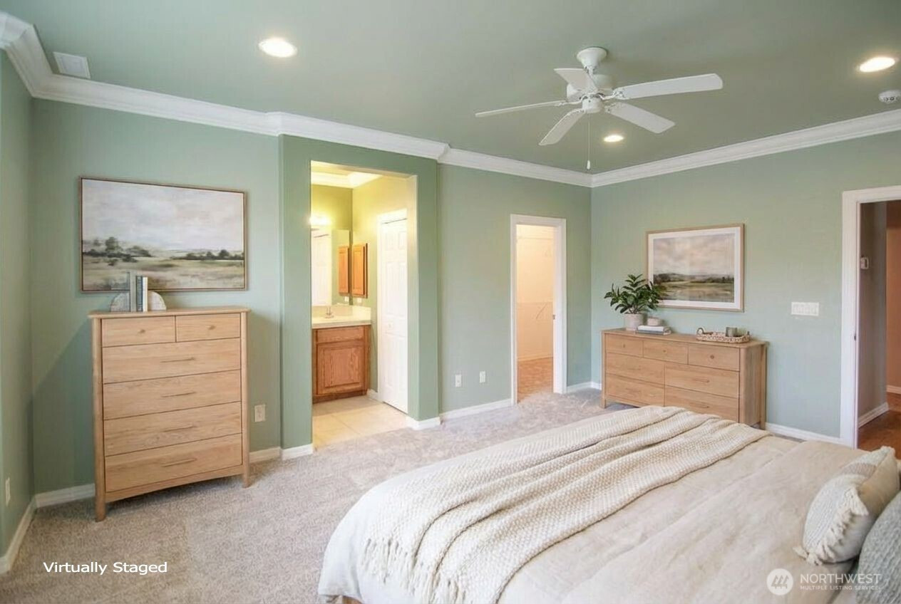 (650)533-3259Light-filled & impeccably maintained, this beautifully upgraded home blends comfort, quality, & effortless living. Rich solid hardwood floors flow through the main living spaces, enhancing the open dining & living rooms adorned with crown molding and a cozy gas fireplace—creating a warm & inviting atmosphere. The spacious kitchen is designed for both function & gathering, offering abundant cabinetry, generous counter space, & a sunny breakfast nook ideal for morning coffee or casual meals. French doors lead to a versatile den with custom built-in shelving—perfect for a home office, reading retreat, or hobby space. The generous primary suite overlooks the serene, fully fenced backyard and features a huge walk-in closet & a beautifully updated ensuite bath with an expanded shower, double vanities, & a private water closet. A comfortable secondary bedroom with a nearby full bath provides welcoming space for guests, & brand-new carpet in both bedrooms adds fresh appeal. A well-appointed utility room with additional built-in storage enhances everyday convenience. Step outside to enjoy the private backyard with established landscaping & an extended paved patio—ideal for relaxing or entertaining. Additional highlights include air conditioning for warm summer days & a newer roof for added peace of mind. Located just a short stroll from the community trail leading to the Sound, this home is nestled within Jubilee, a premier 55+ community offering resort-style living.