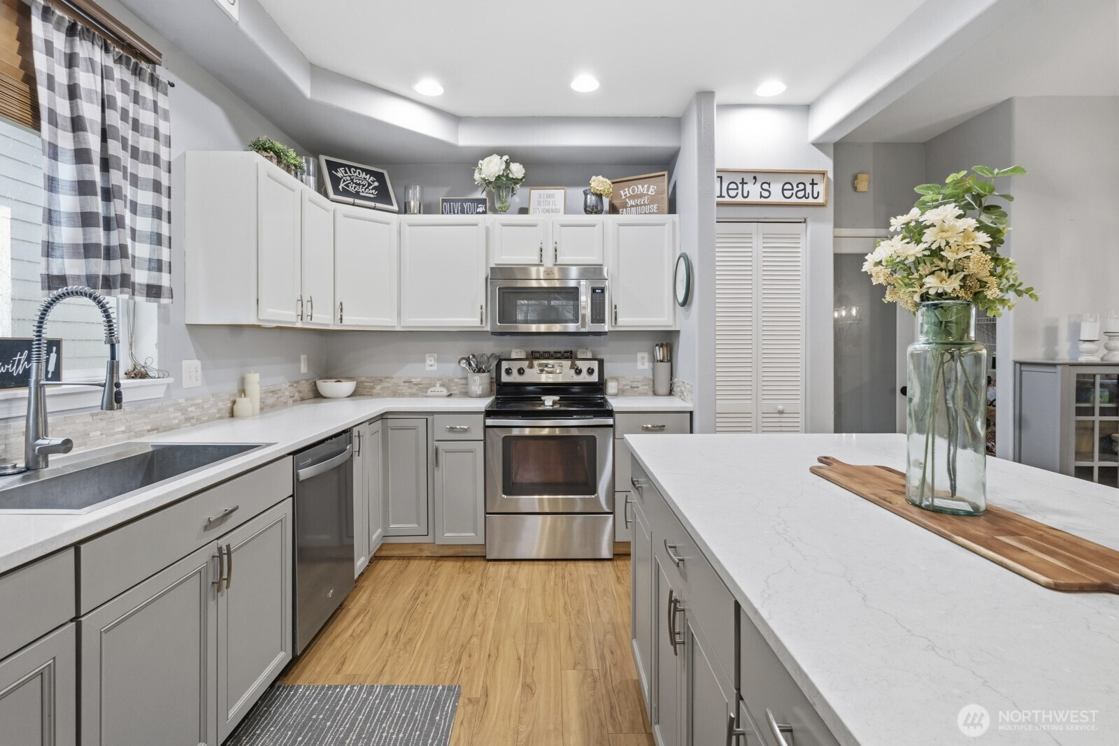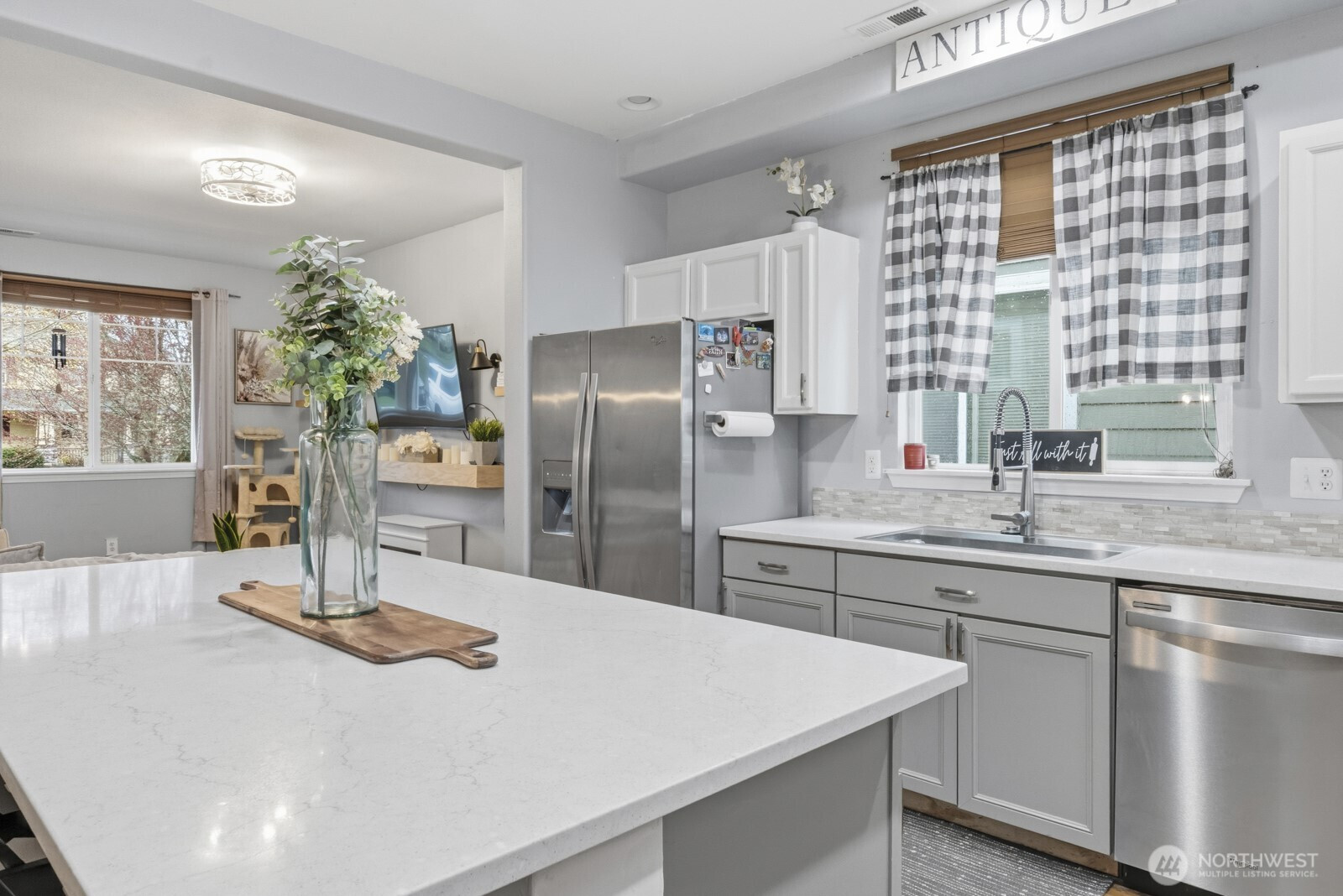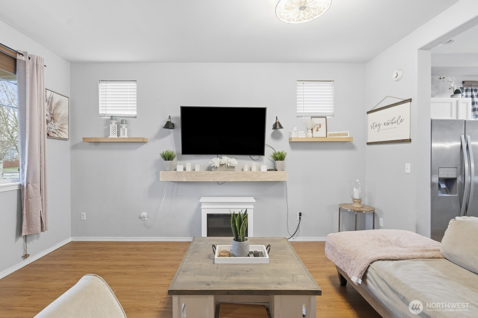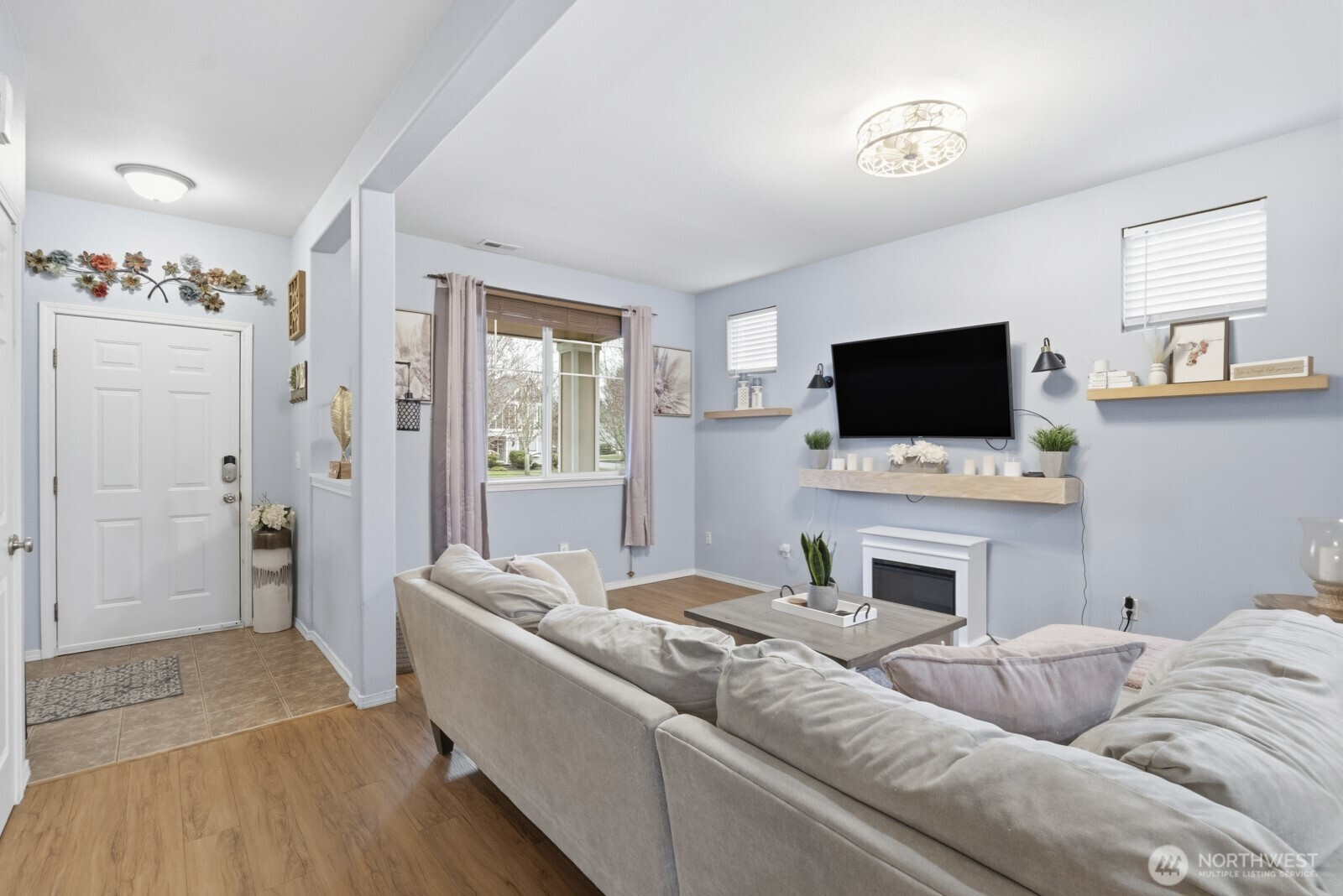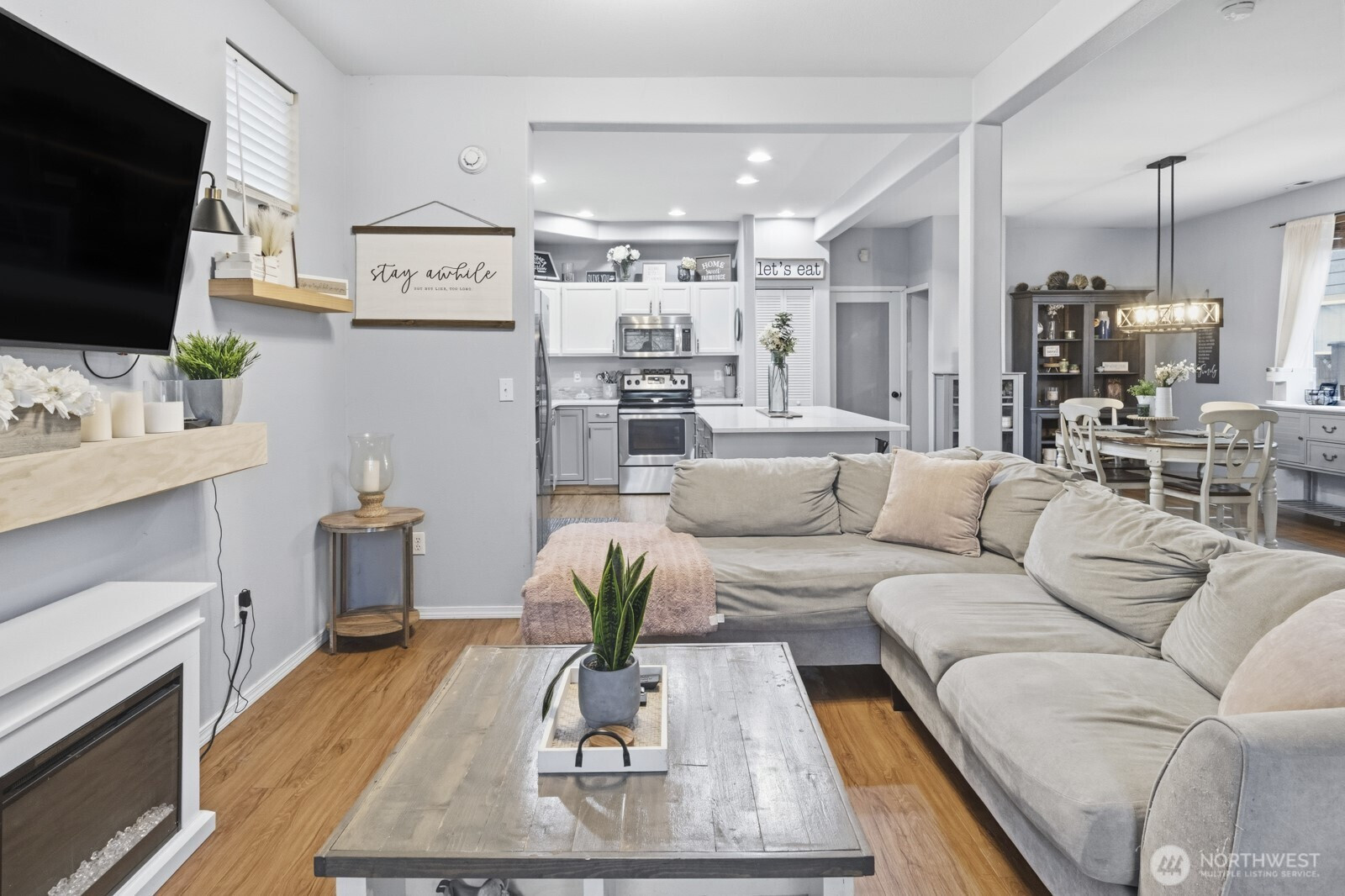 (650)533-3259Beautiful home in the desirable Horizon Pointe community! This 3-bedroom, 2.5-bath home offers an open-concept layout with a large, kitchen island, perfect for gathering and entertaining, flowing seamlessly into the living and dining areas. Updated vinyl plank flooring on the main level and a cozy fireplace add warmth and style. Upstairs, the primary suite includes a 5-piece bath and walk-in closet, along with convenient upper-level laundry and two additional bedrooms. Enjoy a fully fenced backyard with patio, alley access, and a 2-car garage. Community-maintained front landscaping and access to parks, trails, and golf nearby. Conveniently located near shopping, dining, and JBLM.