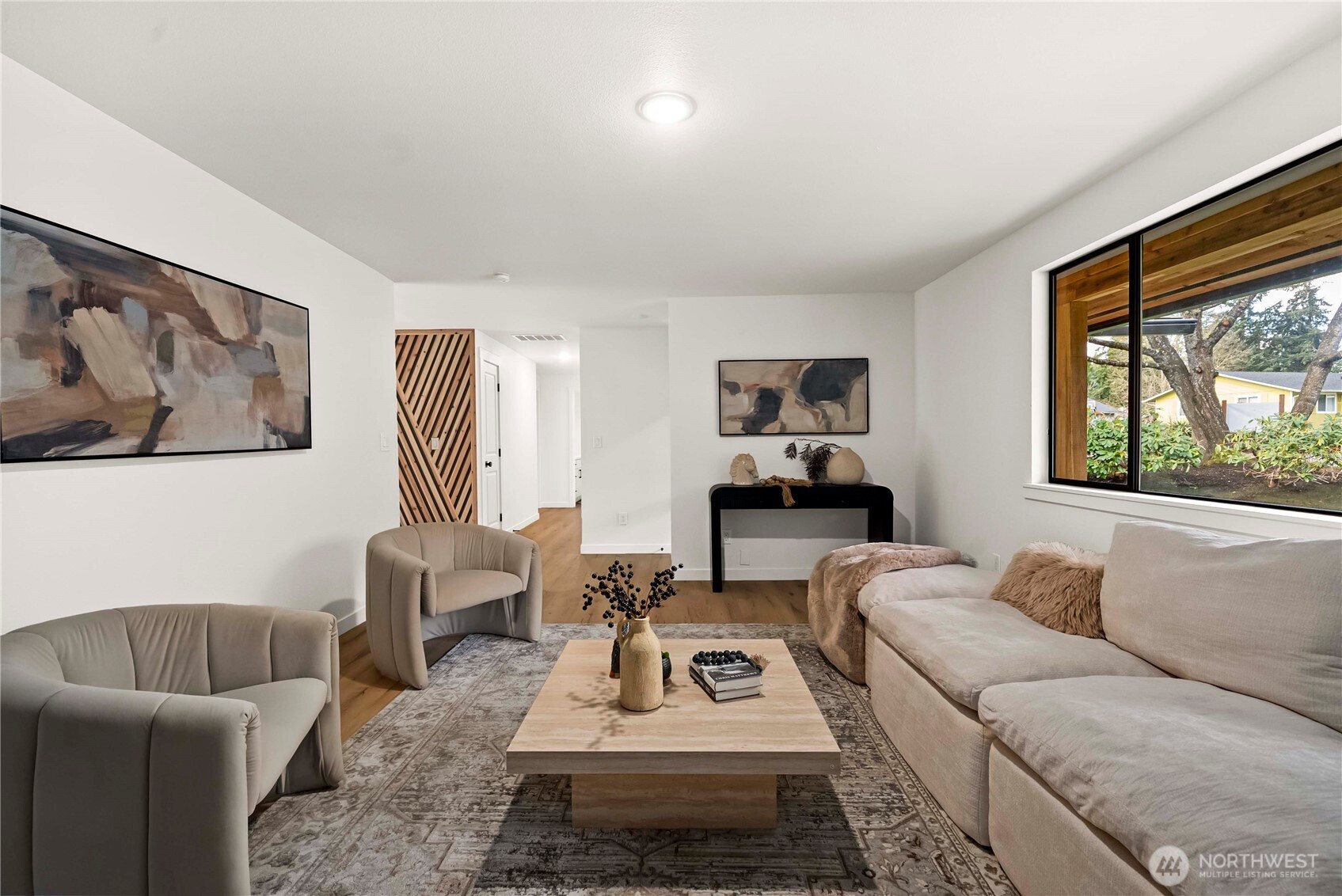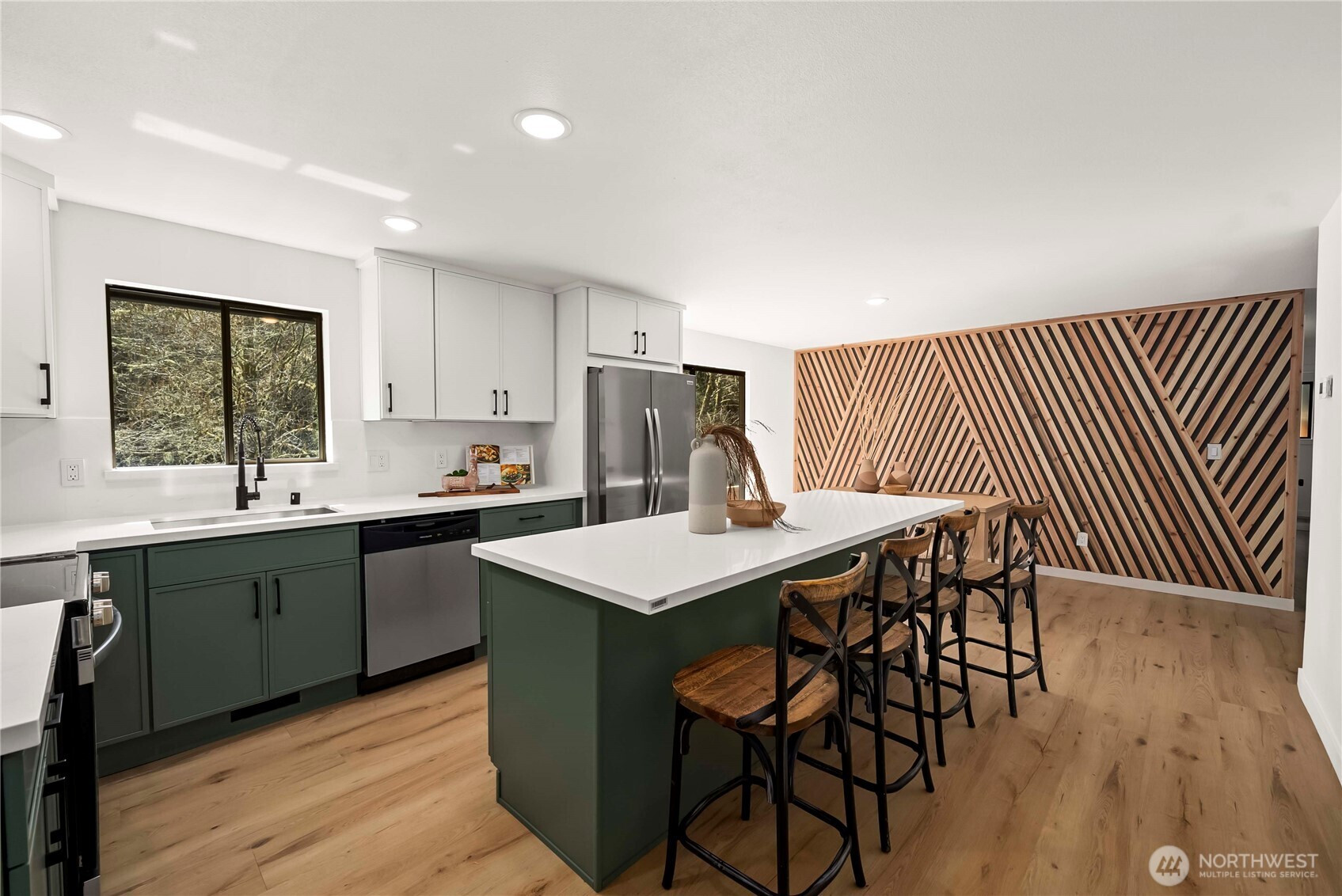 (650)533-3259Some homes just feel different the moment you walk in — and this Lacey gem delivers on every level. Completely remodeled from the ground up, this stunning 3-bedroom, 1.75-bath retreat in Lacey delivers 1,345 square feet of thoughtfully designed living space where contemporary style and natural beauty come together effortlessly. The heart of the home is a show-stopping kitchen featuring sage and white cabinetry, gleaming quartz countertops, stainless appliances, and a large island perfect for morning coffee, weekend entertaining, or everything in between. Luxury vinyl plank floors flow seamlessly throughout, while a custom wood-slat accent wall adds warmth and a designer touch that makes this space truly one of a kind. But step outside - that's where the magic happens. Your backyard opens directly to lush green space with a tranquil pond and creek just steps away. Gather around your fire pit and let the stress of the day quietly fade. This is the kind of backyard people dream about. Whether you're sipping coffee on a quiet morning or hosting friends around the fire on a cool Pacific Northwest evening, this home offers the lifestyle you've been waiting for. Once you see it, you'll want to stay.